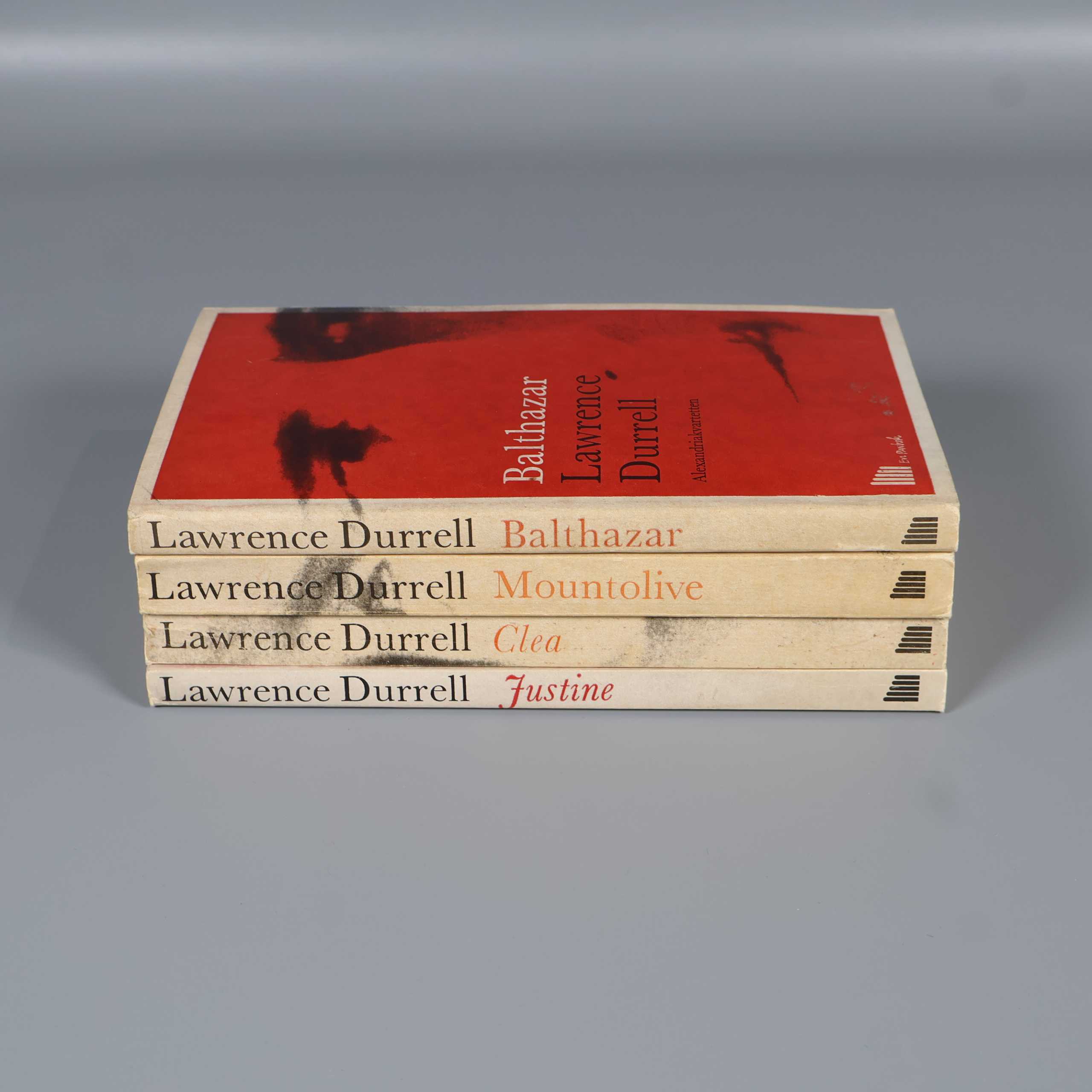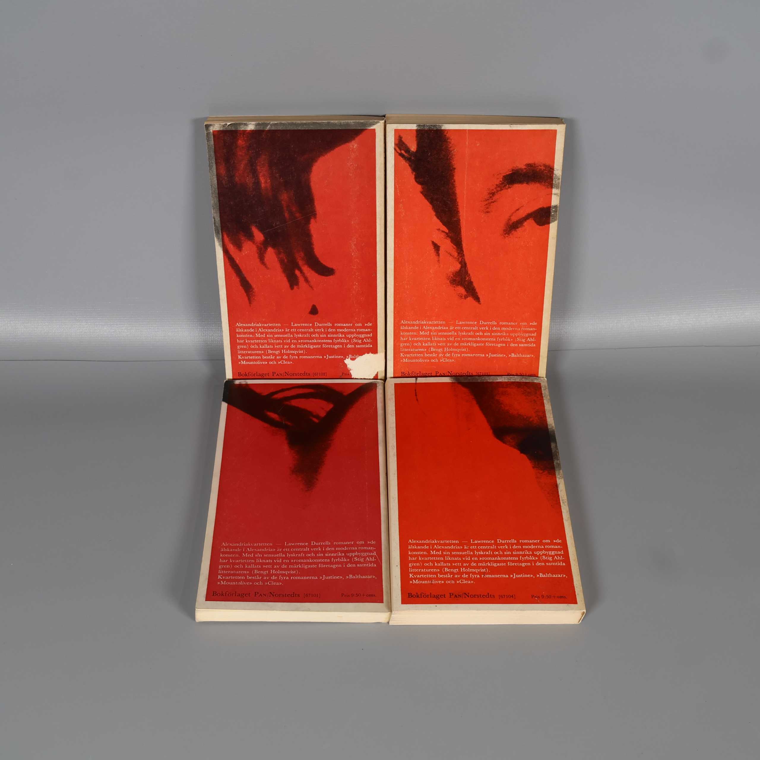 Bokpaket - Lawrence Durrell - Alexandriakvartetten - Del 1-4 149 kr Product variation Antal st Beskrivning Samling med fyra böcker från Lawrence Durrells Alexandriakvartetten.Skick: Bokrygg skadad på Balthazar, se bild 7. Visa all beskrivning Boktitel Balthazar, Mountolive, Clea, Justine Författare Lawrence Durrell Skick Gott skick Produkten har använts men är av fin kvalitet, det kan förekomma mindre förslitningar. Läs mer om hur vi bedömer
