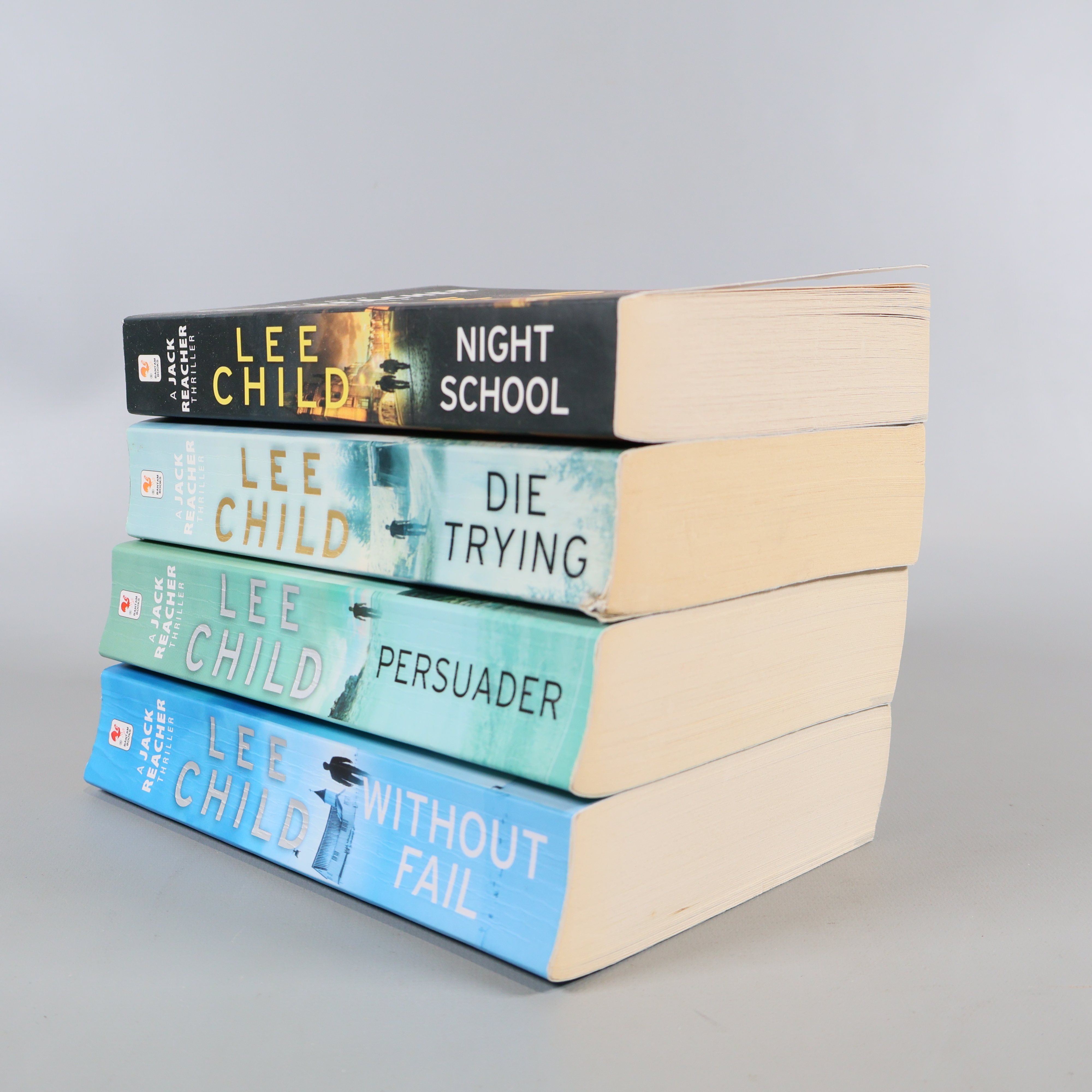 Fyra spännande Jack Reacher-thrillers av Lee Child i ett och samma paket. Några böcker har tecken på användning som böjda sidor eller slitage.