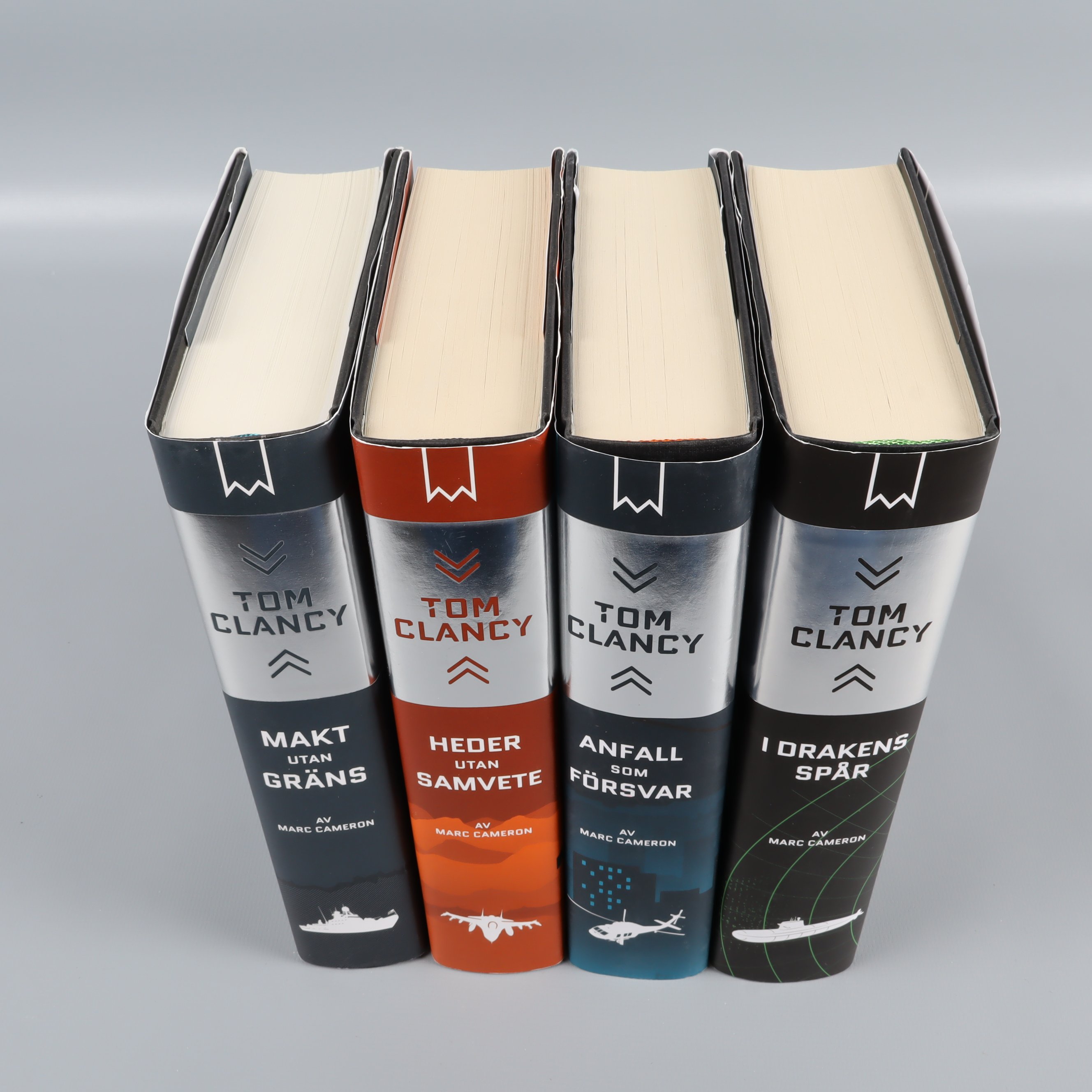 Fyra tjocka actionspäckade thrillers ur Tom Clancy-serien, skrivna av Marc Cameron. Omslagen har snygg, modern design med färgstarka illustrationer som direkt signalerar spänning och militärteman. Perfekt för dig som gillar strategiska äventyr, internationella intriger och välskrivna karaktärer. En härlig samling som ger en riktigt högkvalitativ och intensiv läsupplevelse.