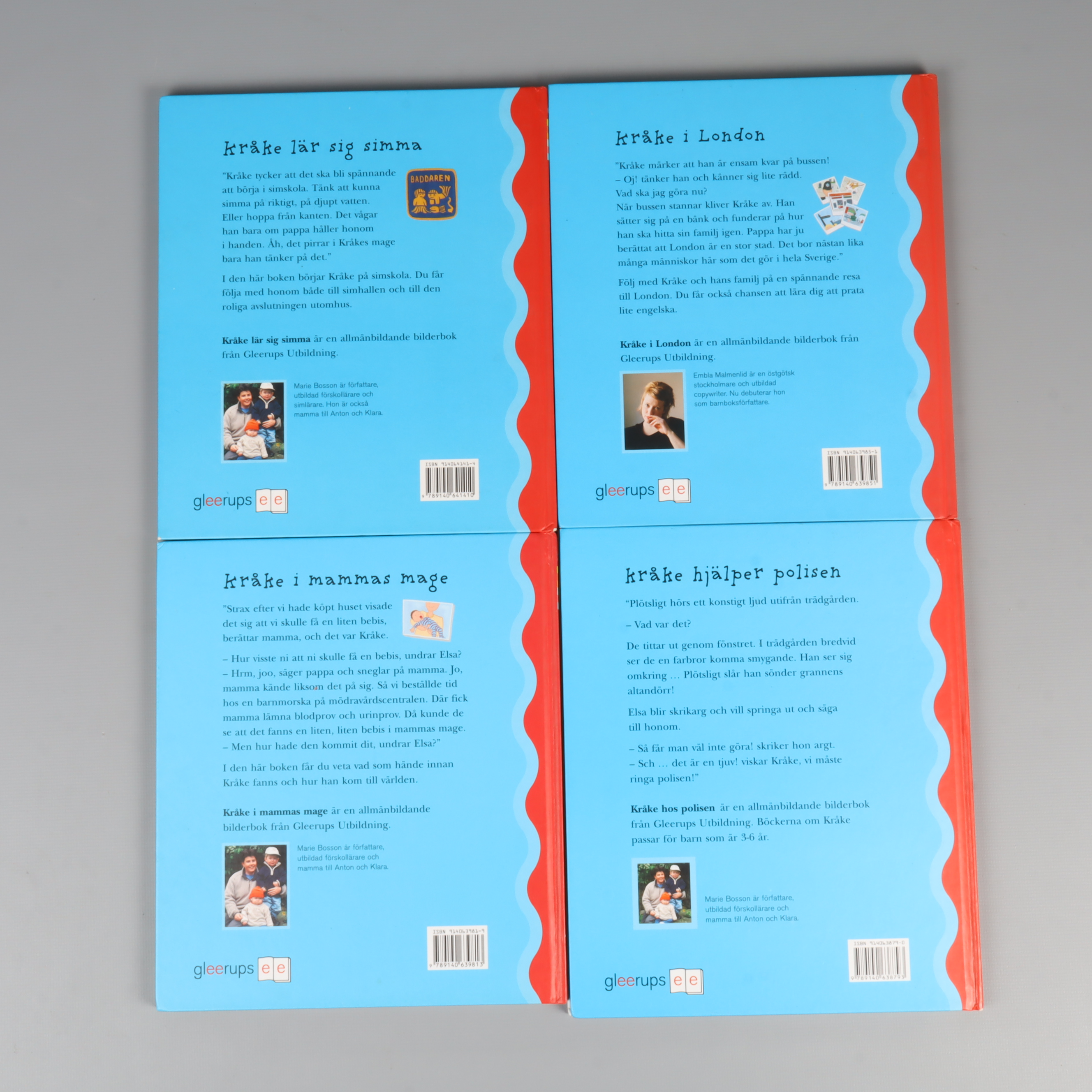 Bokpaket - Marie Bosson - Böcker om Kråke 4 st 159 kr Product variation Antal st Beskrivning Fyra charmiga Kråke-böcker med livfulla illustrationer. Perfekt för barn och unga som gillar berättelser om vardag och äventyr, med härliga färger och lättläst format. Visa all beskrivning Boktitel Kråke lär sig simma, Kråke i London, Kråke i mammas mage, Kråke hjälper polisen Författare Marie Bosson ISBN 914063879-0, 914063981-9, 914063985-1, 914064141-4 Skick Mycket gott skick Produkten är sparsamt använd, är av fin kvalitet och ska inte ha några skador eller förslitningar. Läs mer om hur vi bedömer