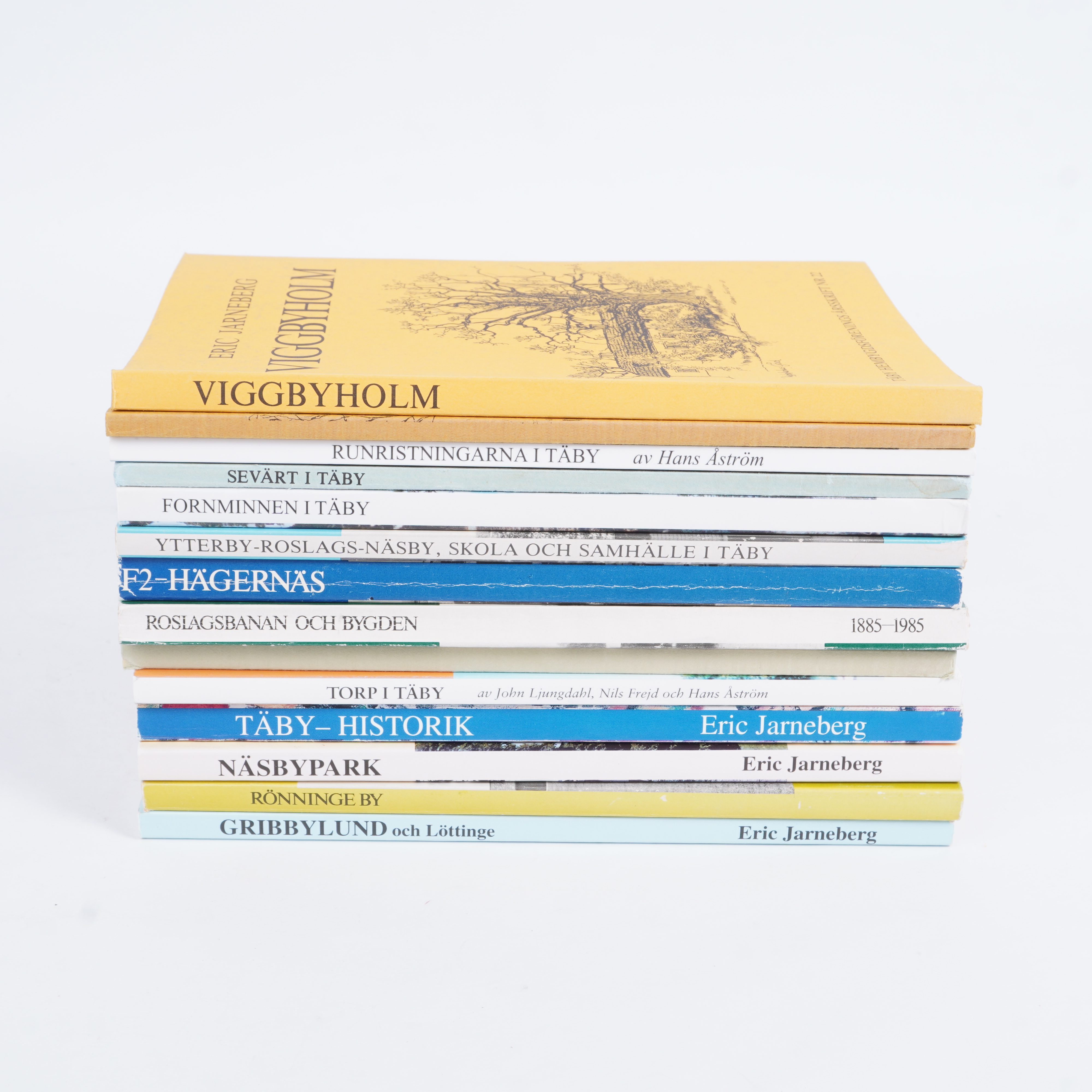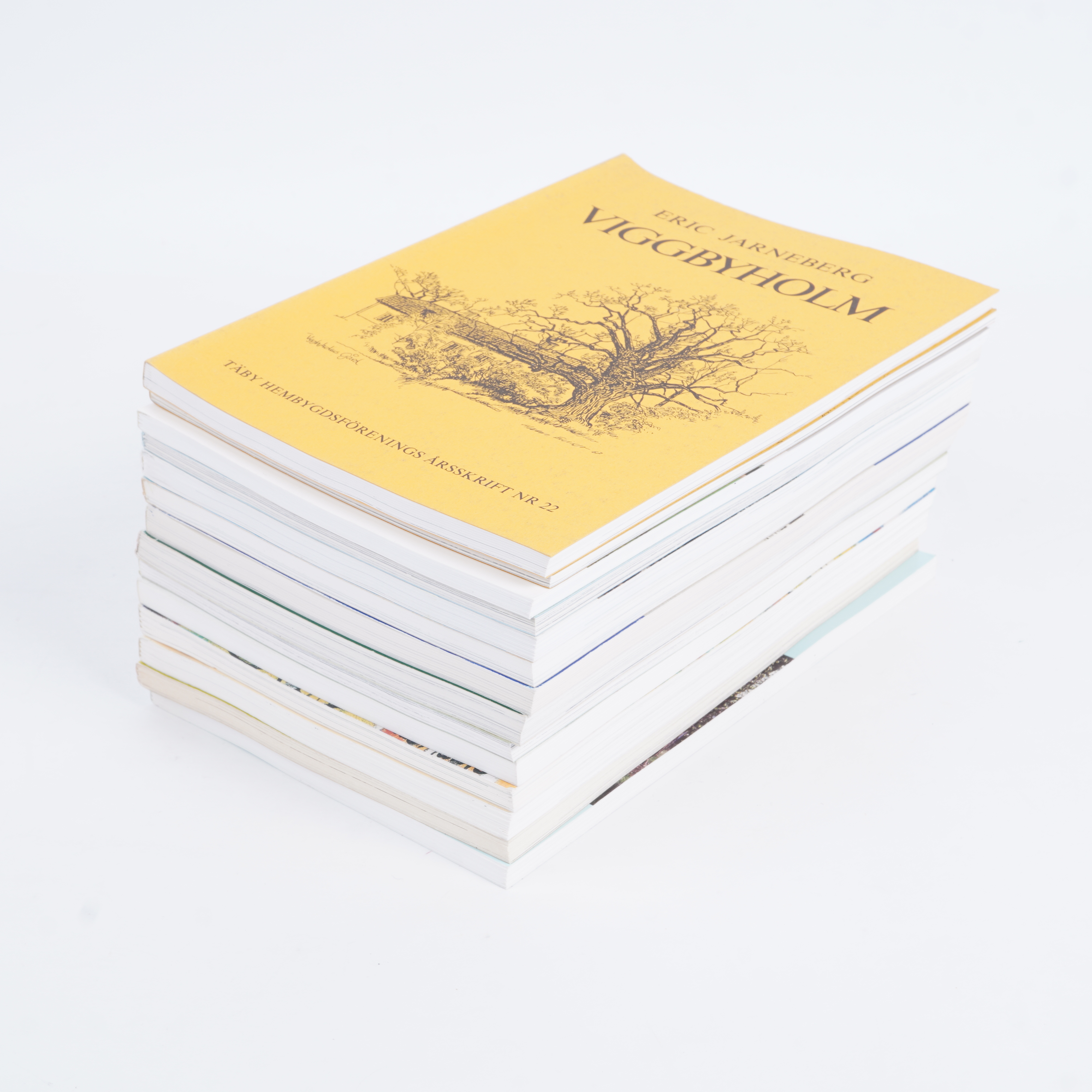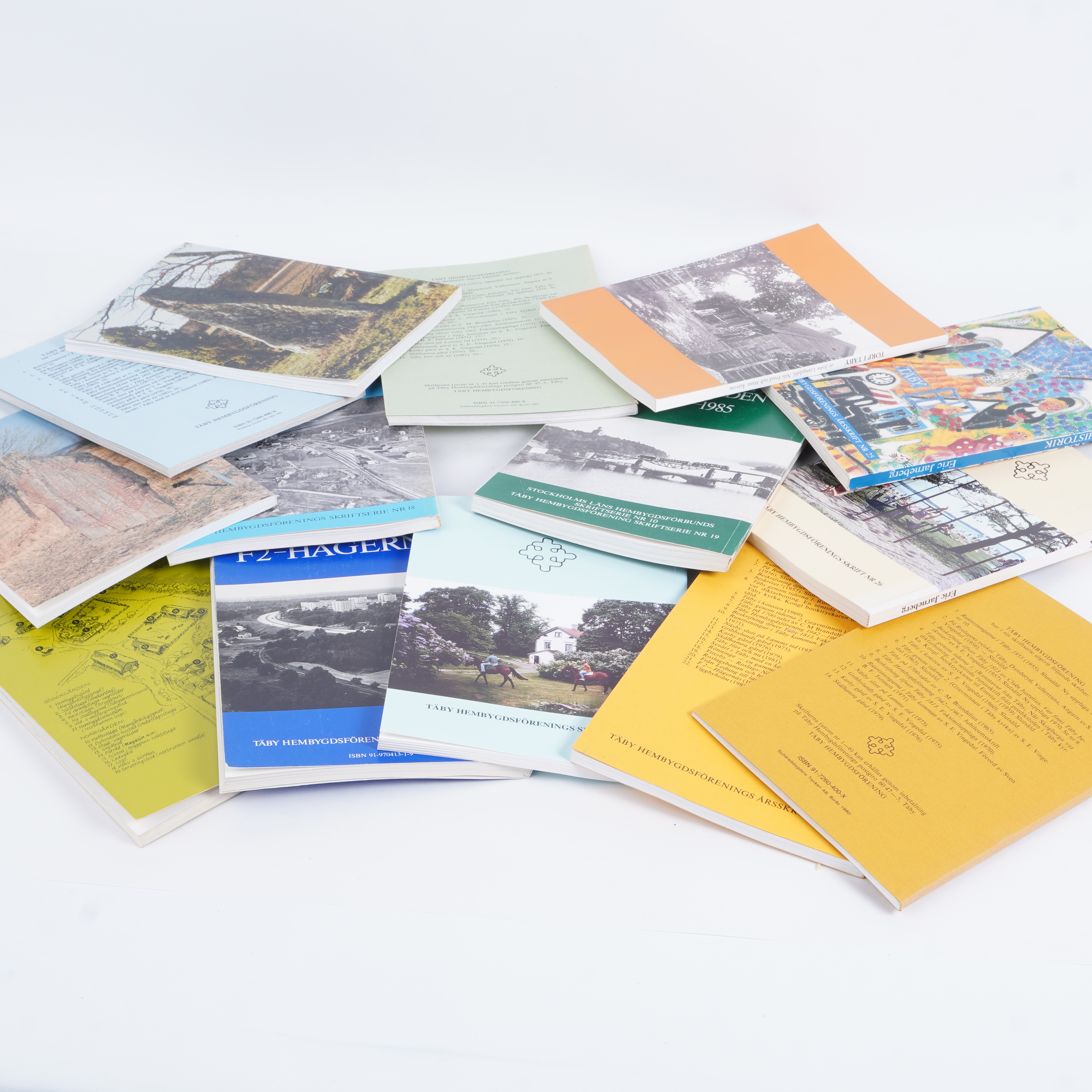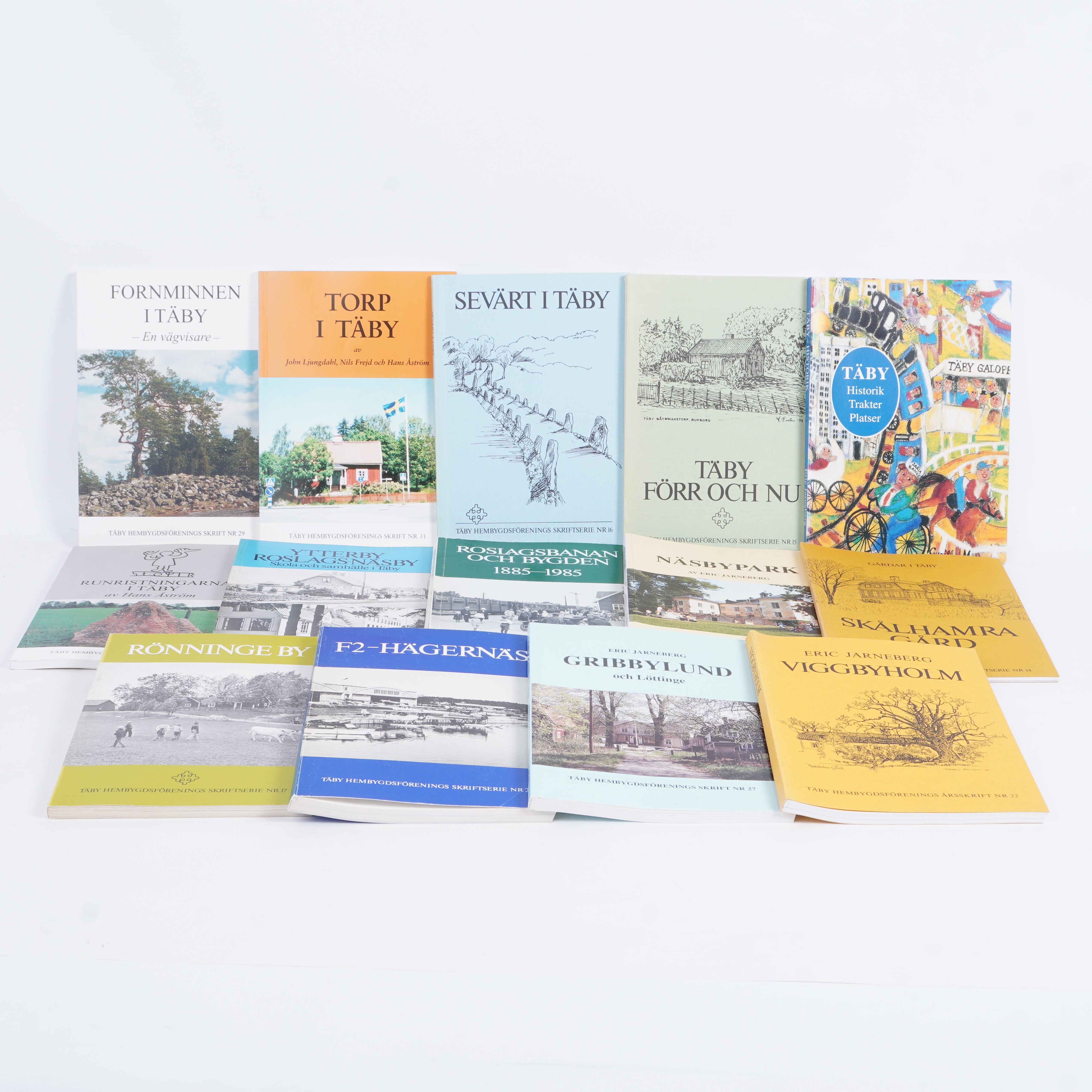 Upptäck Täbys historia med detta bokpaket som innehåller flera årsskrifter från Täby Hembygdsförening. Varje bok är rikt illustrerad och täcker olika områden, platser och händelser i Täbys utveckling. Perfekt för dig som är nyfiken på lokalhistoria eller vill utforska unika historier om trakter, gårdar och kulturmiljöer med en skön vintage vibe. Det är flera olika författare bland böckerna. Totalt 14st böcker i detta bokpaket.
