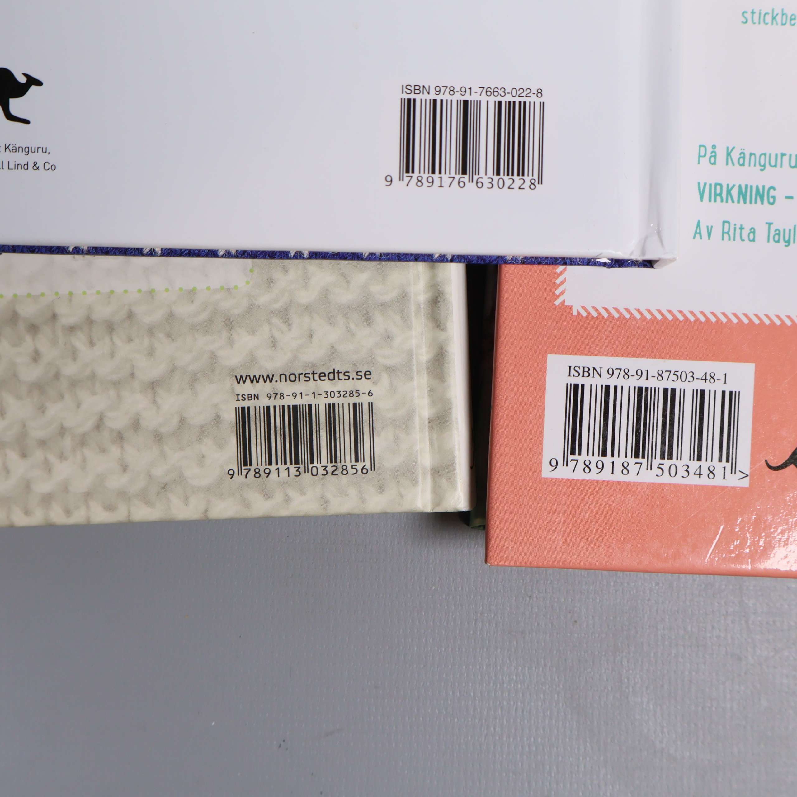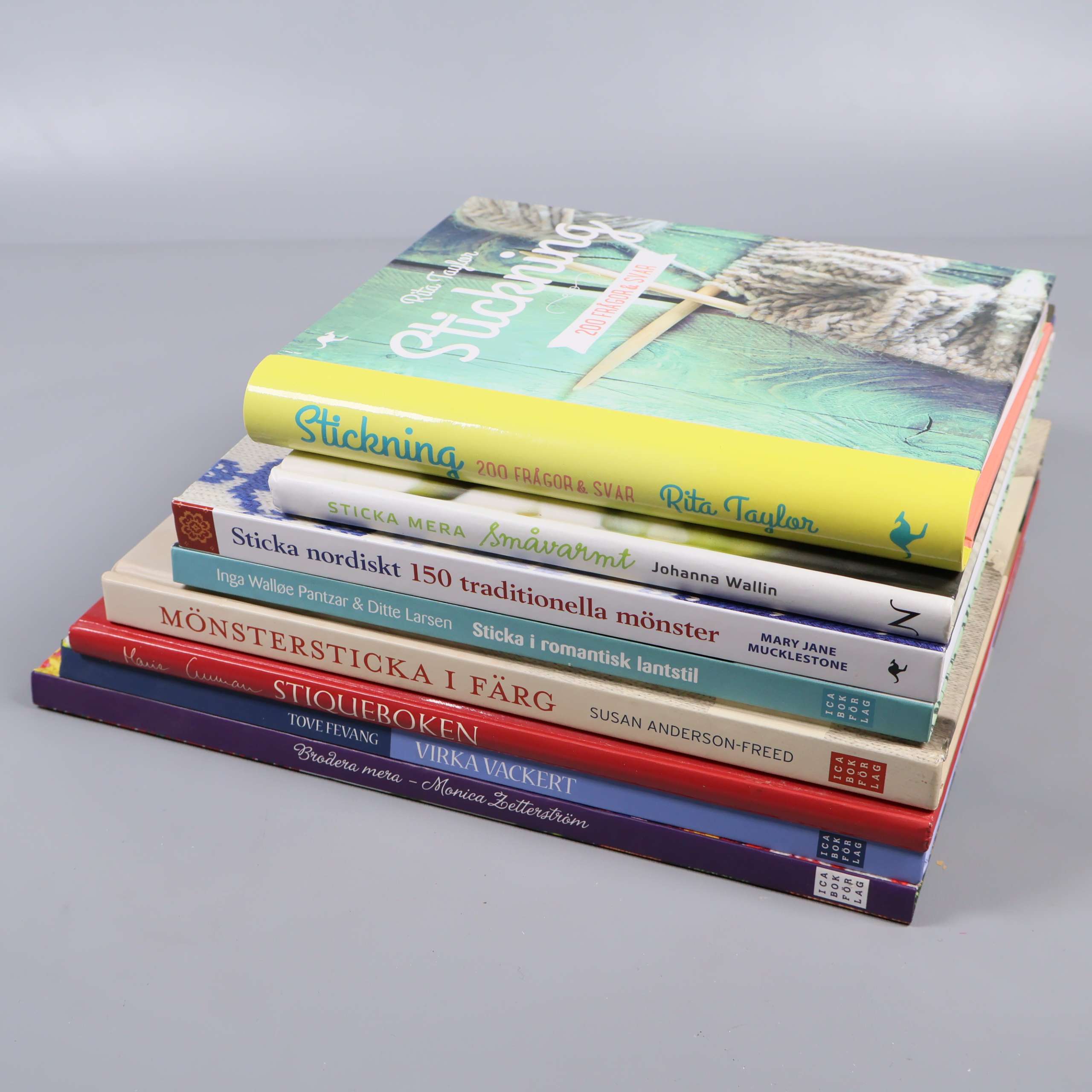 Stickning 200 frågor & svar, Sticka mera småvarmt, Sticka nordiskt 150 traditionella mönster, Sticka i romantisk lantstil, Mönstersticka i färg, Stiqueboken, Virka vackert, Brodera mera