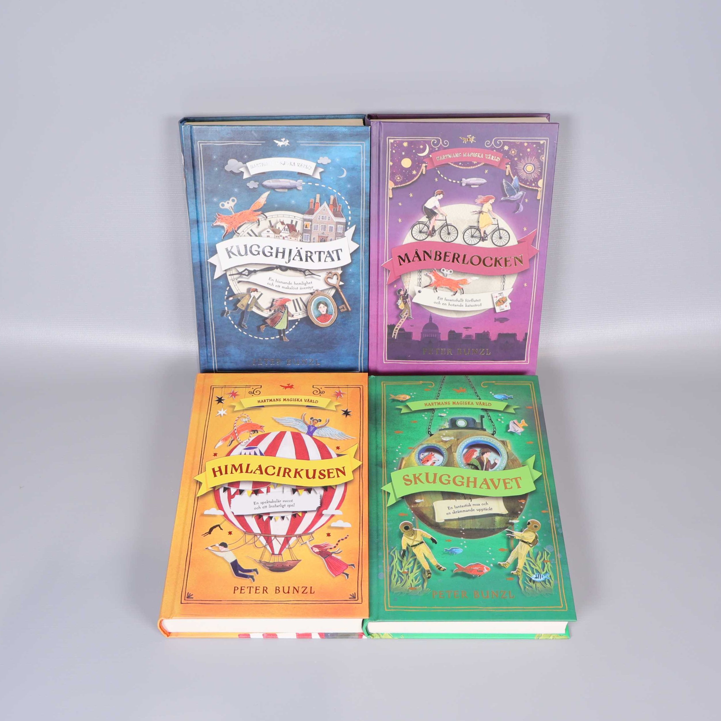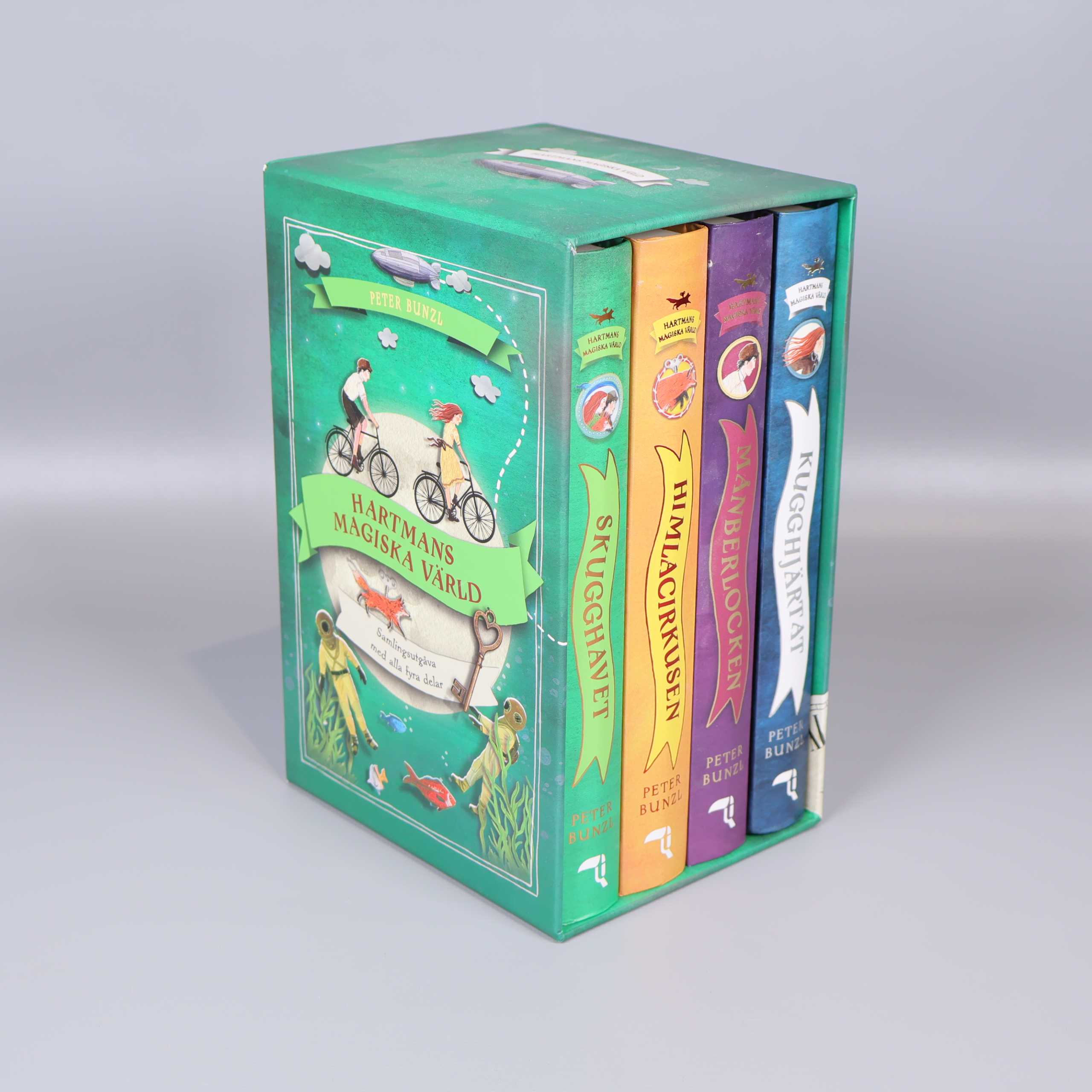 Bokpaket - Peter Bunzl - Hartmans magiska värld - 4 delar 299 kr Product variation Antal st Beskrivning En magisk box med fyra äventyrsböcker ur serien Hartmans magiska värld av Peter Bunzl. Visa all beskrivning Boktitel Kugghjärtat, Månberlocken, Himlacirkusen, Skugghavet Författare Peter Bunzl ISBN 978-91-7985-858-2 Skick Mycket gott skick Produkten är sparsamt använd, är av fin kvalitet och ska inte ha några skador eller förslitningar. Läs mer om hur vi bedömer