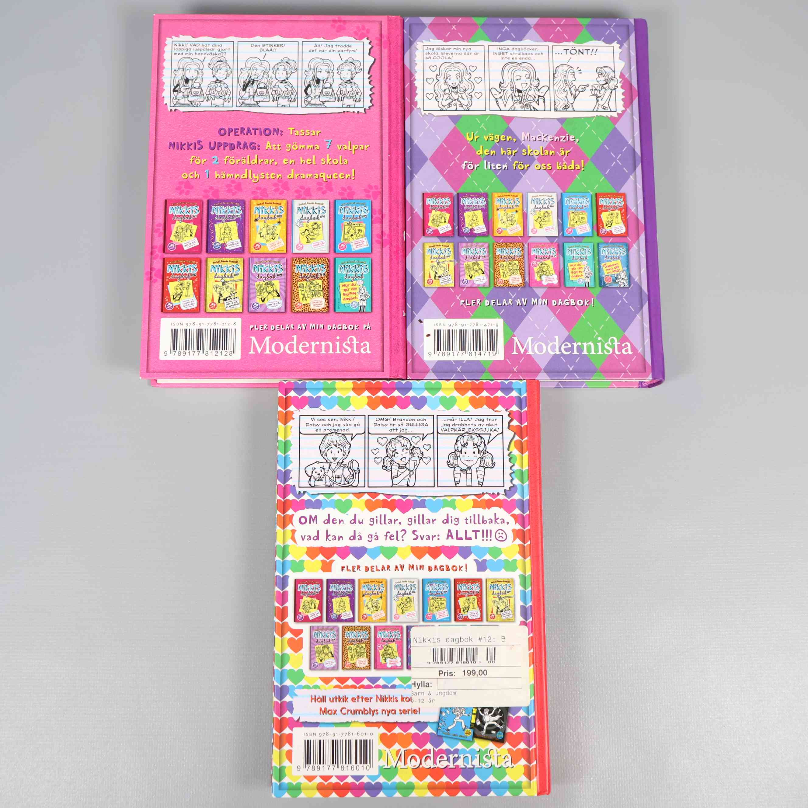 Bokpaket – Rachel Renée Russel - Nikkis dagbok 10-12 199 kr Product variation Antal st Beskrivning Upptäck Nikkis dagbok #10, #11 och #12 av Rachel Renée Russell i ett färgstarkt bokpaket. Varje bok bjuder på massor av serieteckningar och handskriven stil för en personlig och modern läsupplevelse. Visa all beskrivning Detaljer Övrigt: loo Boktitel Nikkis dagbok #10, Nikkis dagbok #11, Nikkis dagbok #12 Författare Rachel Renée Russel ISBN 978-91-7781-212-8, 978-91-7781-471-9, 978-91-7781-601-0 Skick Mycket gott skick Produkten är sparsamt använd, är av fin kvalitet och ska inte ha några skador eller förslitningar. Läs mer om hur vi bedömer