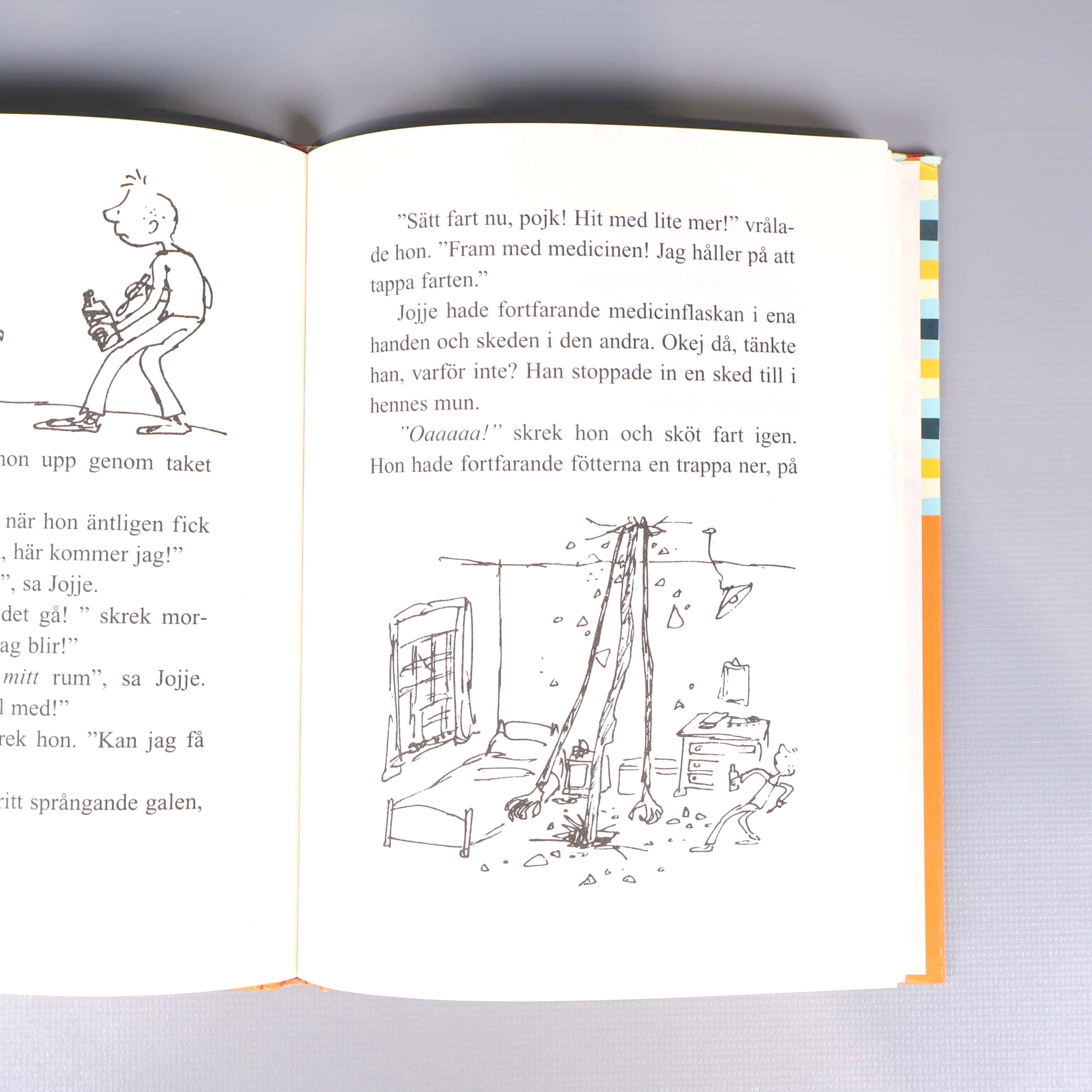 Upptäck två klassiska barnböcker av Roald Dahl med färgstarka illustrationer och unik design. Kalle och chokladfabriken bjuder på en fantasifull berättelse och ett retro omslag, medan Jojjes ljuvliga medicin har en lekfull, modern framsida och tecknade inslag.