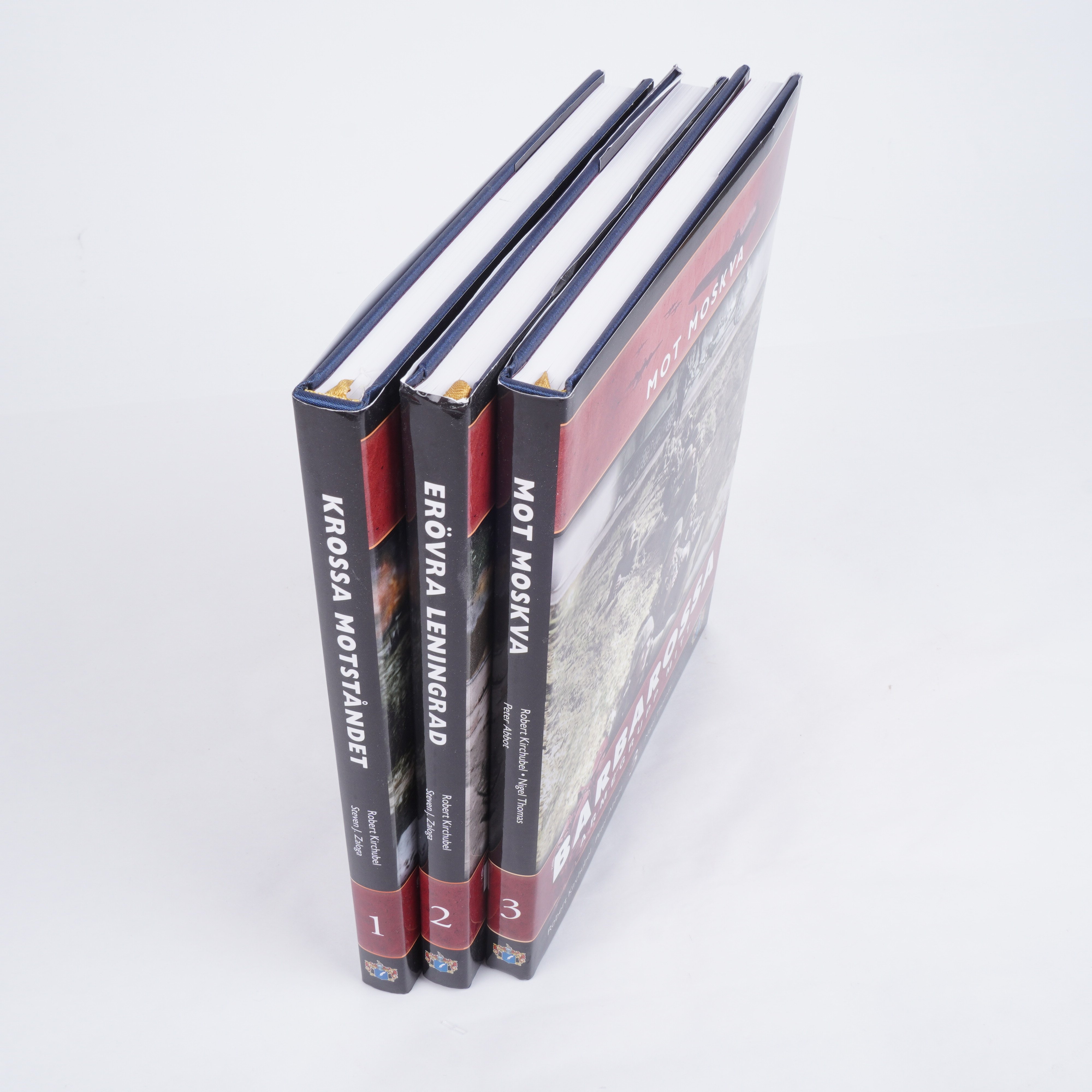 Tre böcker i Barbarossa-serien samlade i ett snyggt paket. Varje bok har hårda pärmar och detaljerade omslagsbilder med dramatiska historiska motiv. Perfekt för dig som gillar militärhistoria och vill ha en komplett samling på ett tema. Serien har en enhetlig design med tydliga titlar på ryggarna och numrering för enkel översikt.