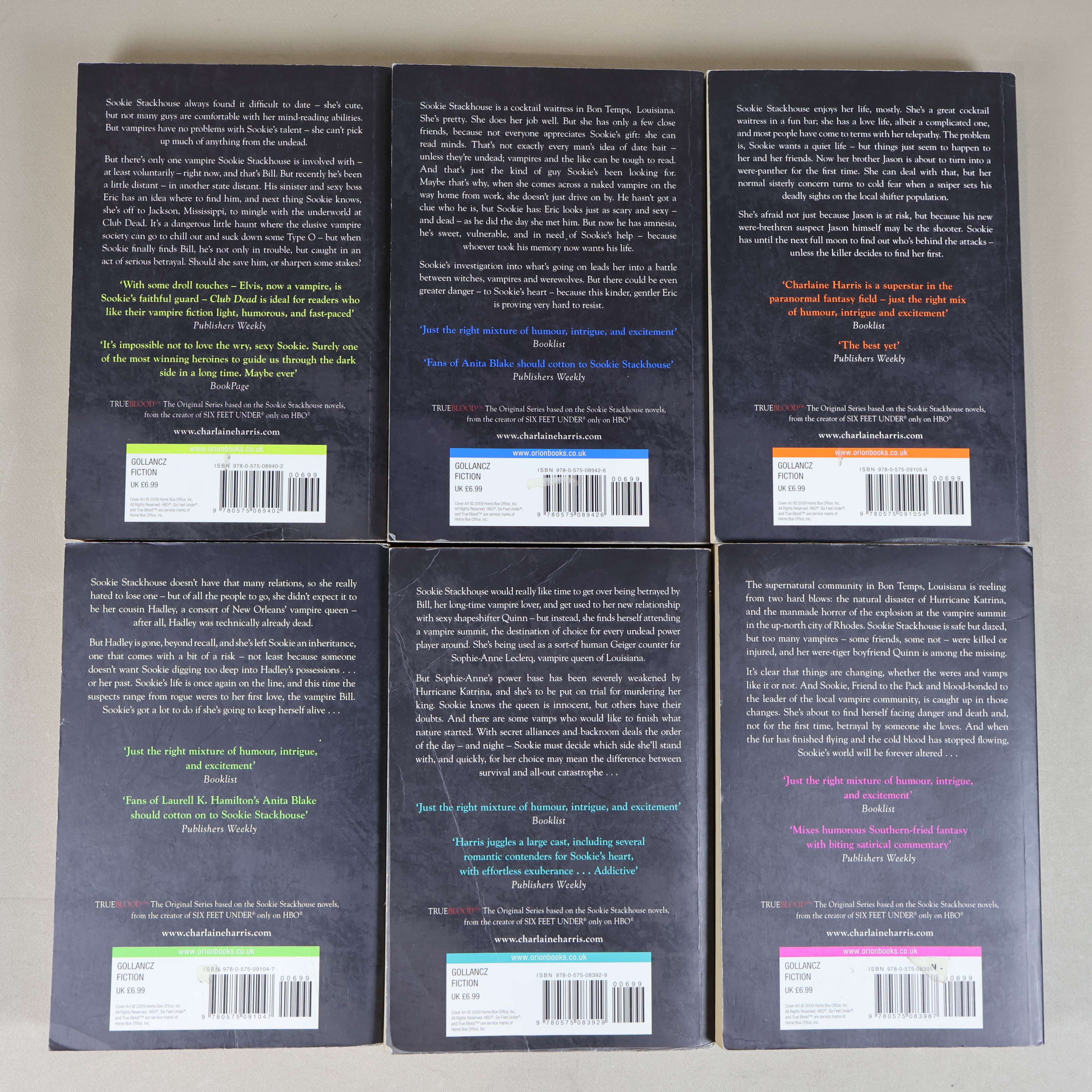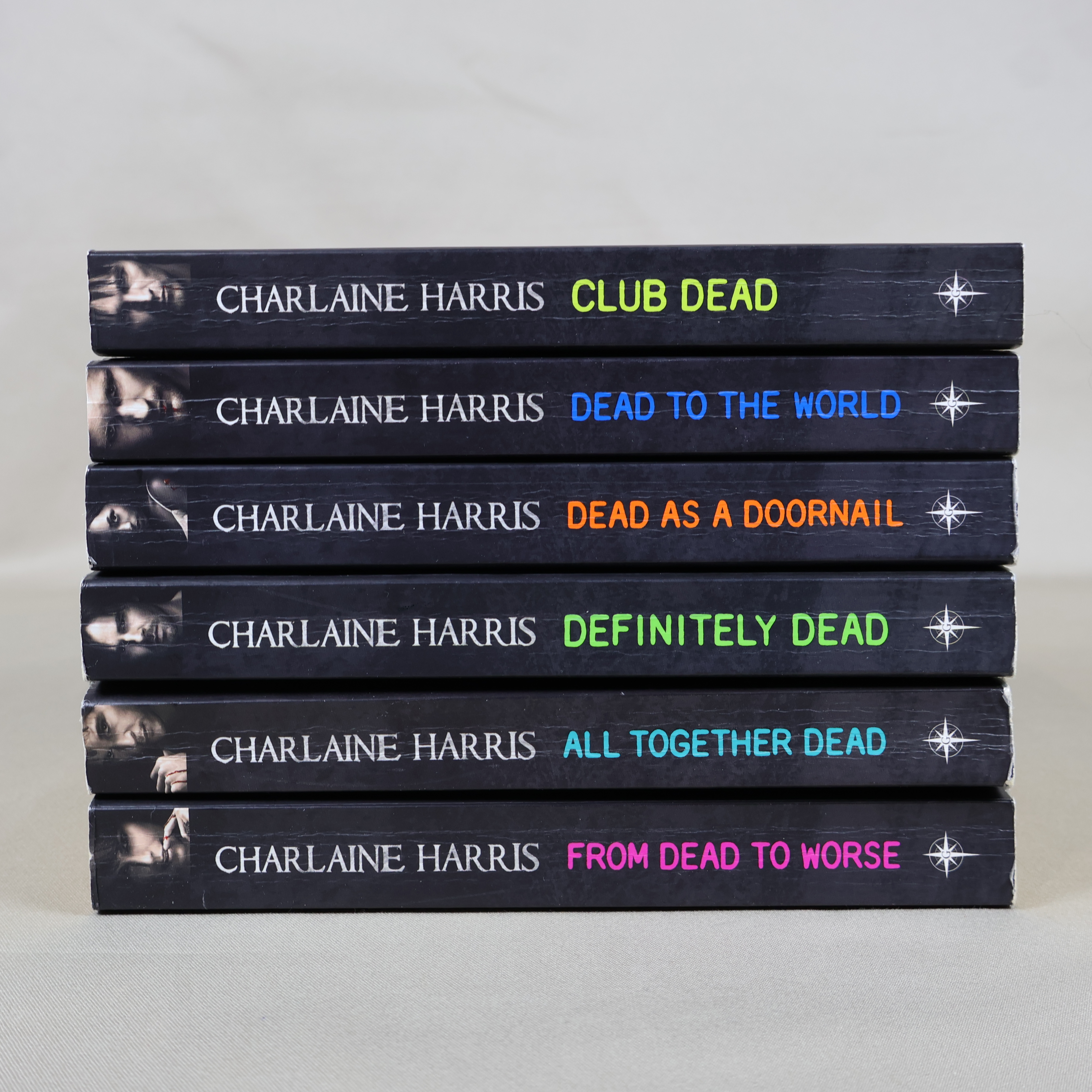 Upptäck alla sex pocketböcker i Sookie Stackhouse-serien av Charlaine Harris, del 3–8. Böckerna har personliga karaktärsporträtt på omslaget och tydliga titeltryck i olika färger för varje bok, vilket ger en modern och samlad känsla. Perfekt för dig som gillar vampyrer, mysterier och urban fantasy med en touch av drama.