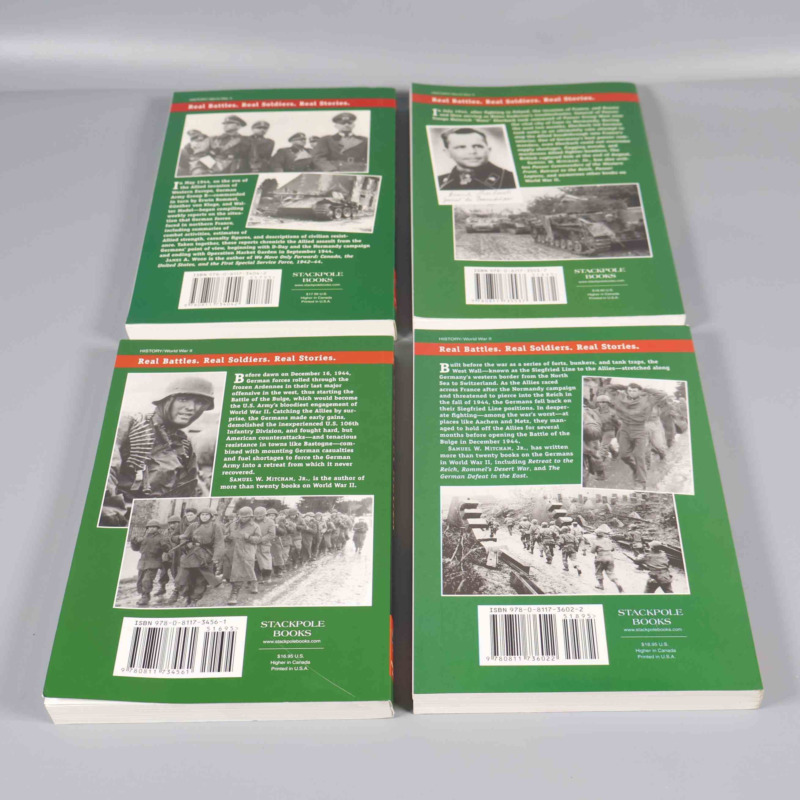 Här får du ett bokpaket med fyra delar ur Stackpole Military History Series med gröna mjukpärmar och svartvita historiska foton på omslagen. Perfekt för dig som är nyfiken på militära teman och intresserad av både detaljerade texter och autentiska bilder. Språk: Engelska
