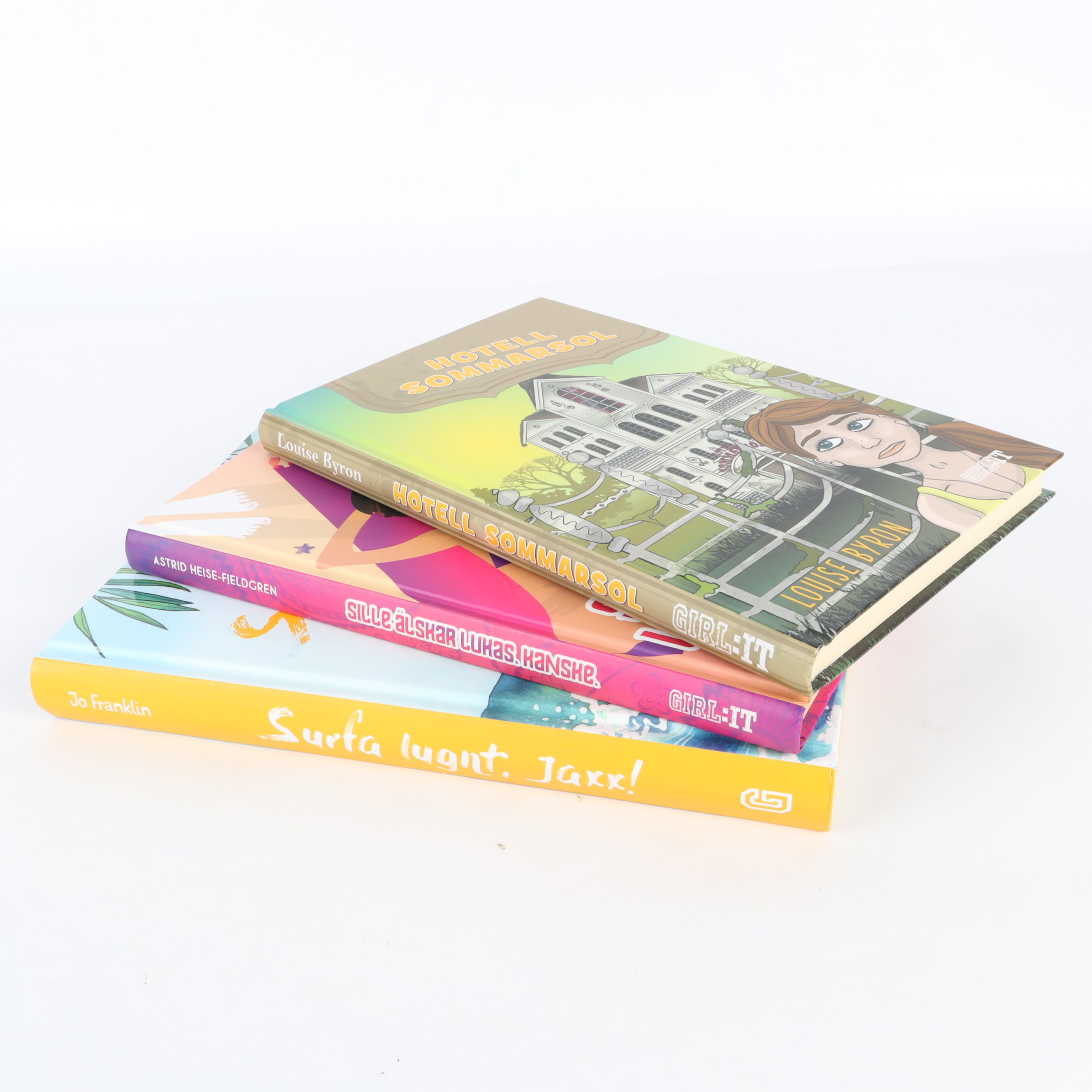 Upptäck tre livfulla böcker med fina illustrationer och mjuka pärmar, där berättelserna lockar med både humor och äventyr. Omslagen har färgstarka motiv och bjuder på modern känsla med lättsam ton. Perfekt för dig som gillar ungdomslitteratur som känns både kul och engagerande.