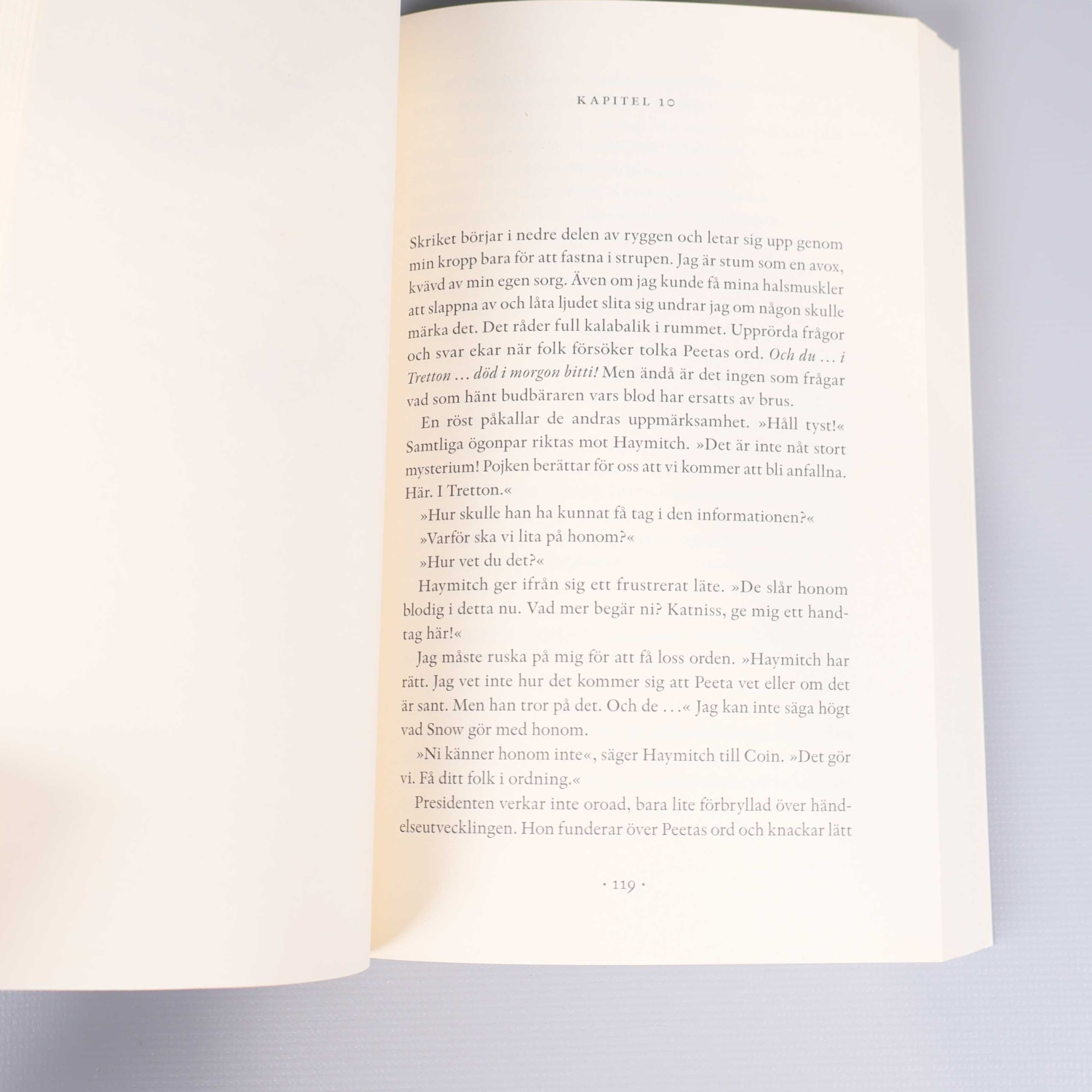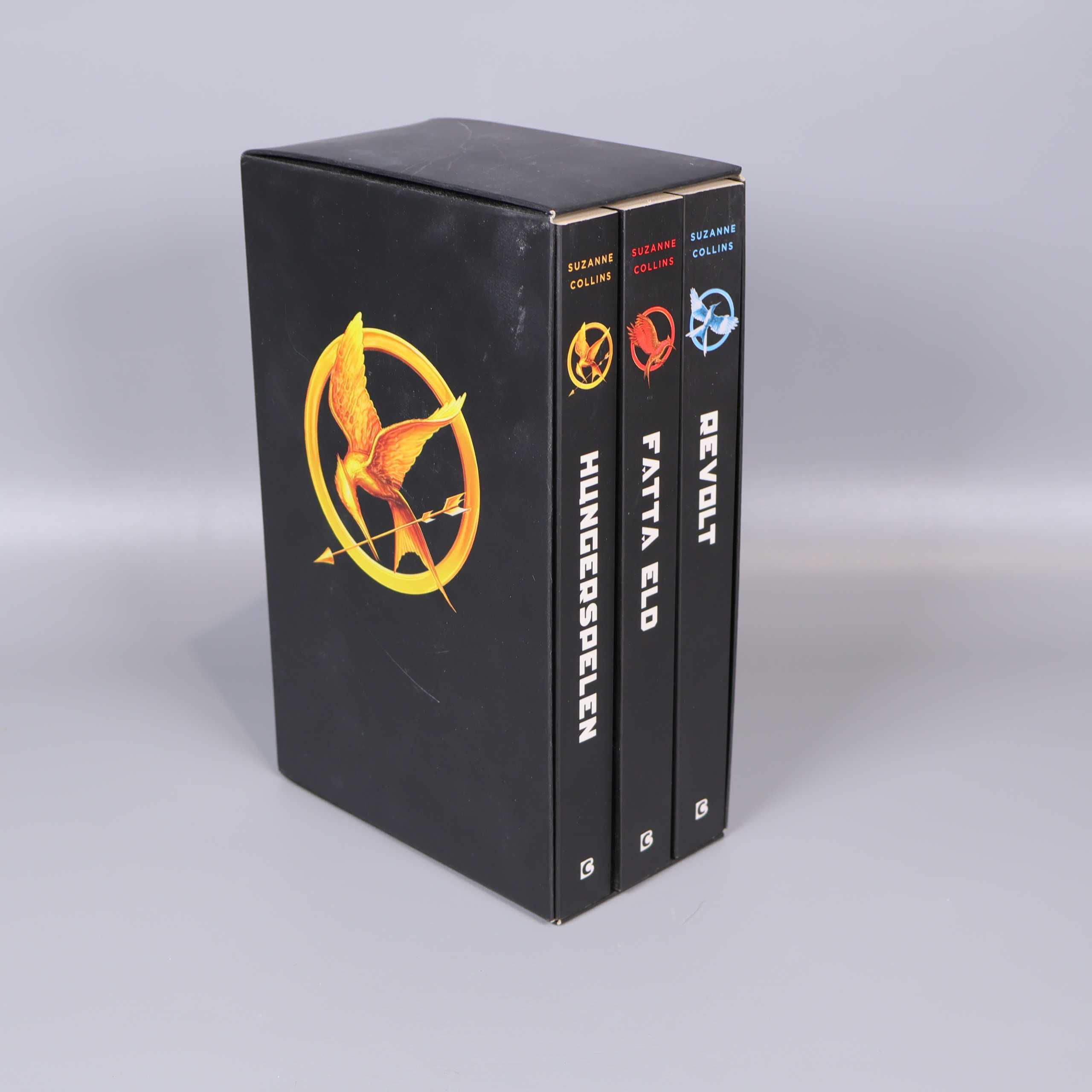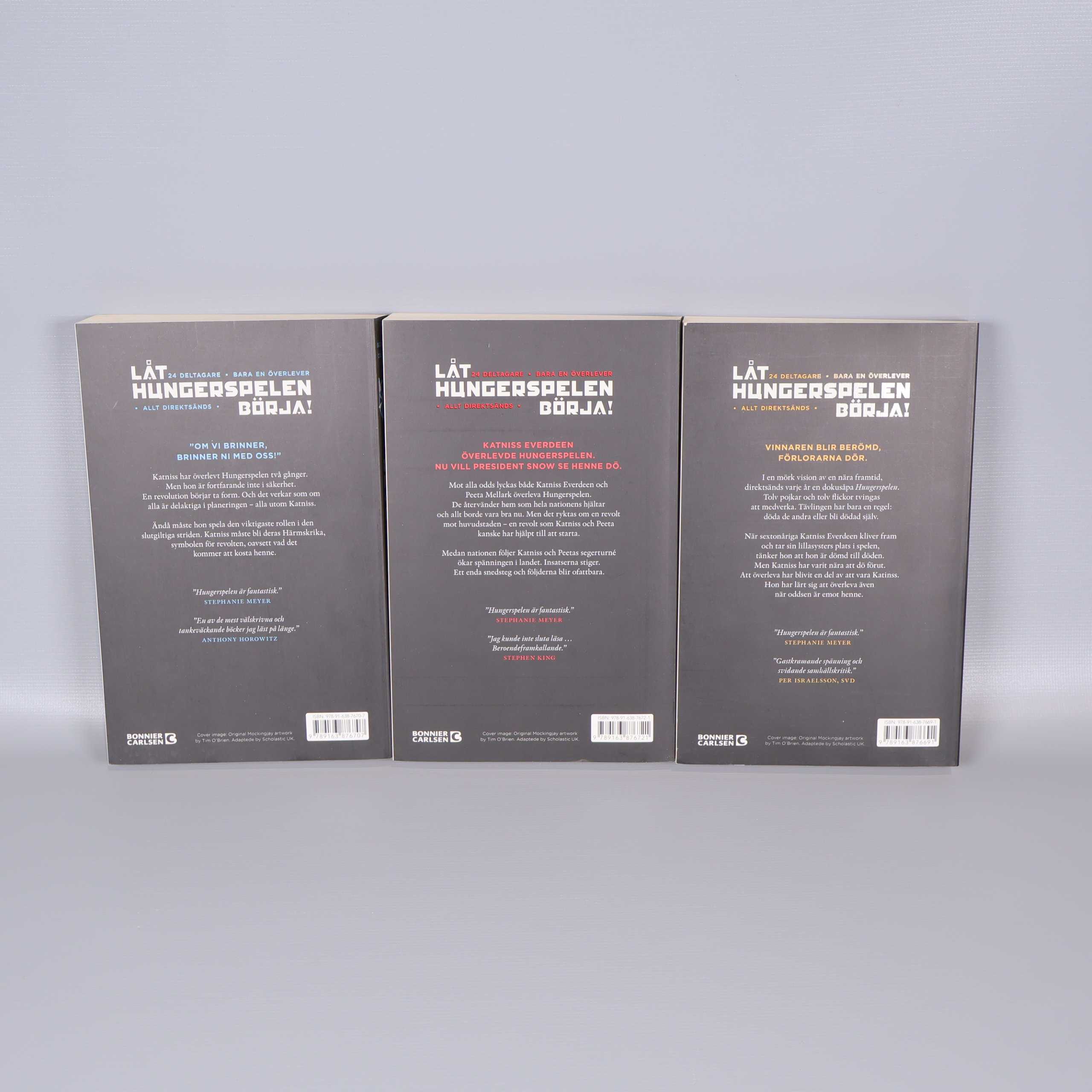 Bokpaket - Suzanne Collins - Hungerspelen trilogin box 179 kr Product variation Antal st Beskrivning Upptäck hela Hungerspelen-trilogin i ett stilrent box-set med Hungerspelen, Fatta eld och Revolt. Visa all beskrivning Boktitel Hungerspelen, Fatta eld, Revolt Författare Susanne Collins ISBN 978-91-638-7667-7 Skick Mycket gott skick Produkten är sparsamt använd, är av fin kvalitet och ska inte ha några skador eller förslitningar. Läs mer om hur vi bedömer