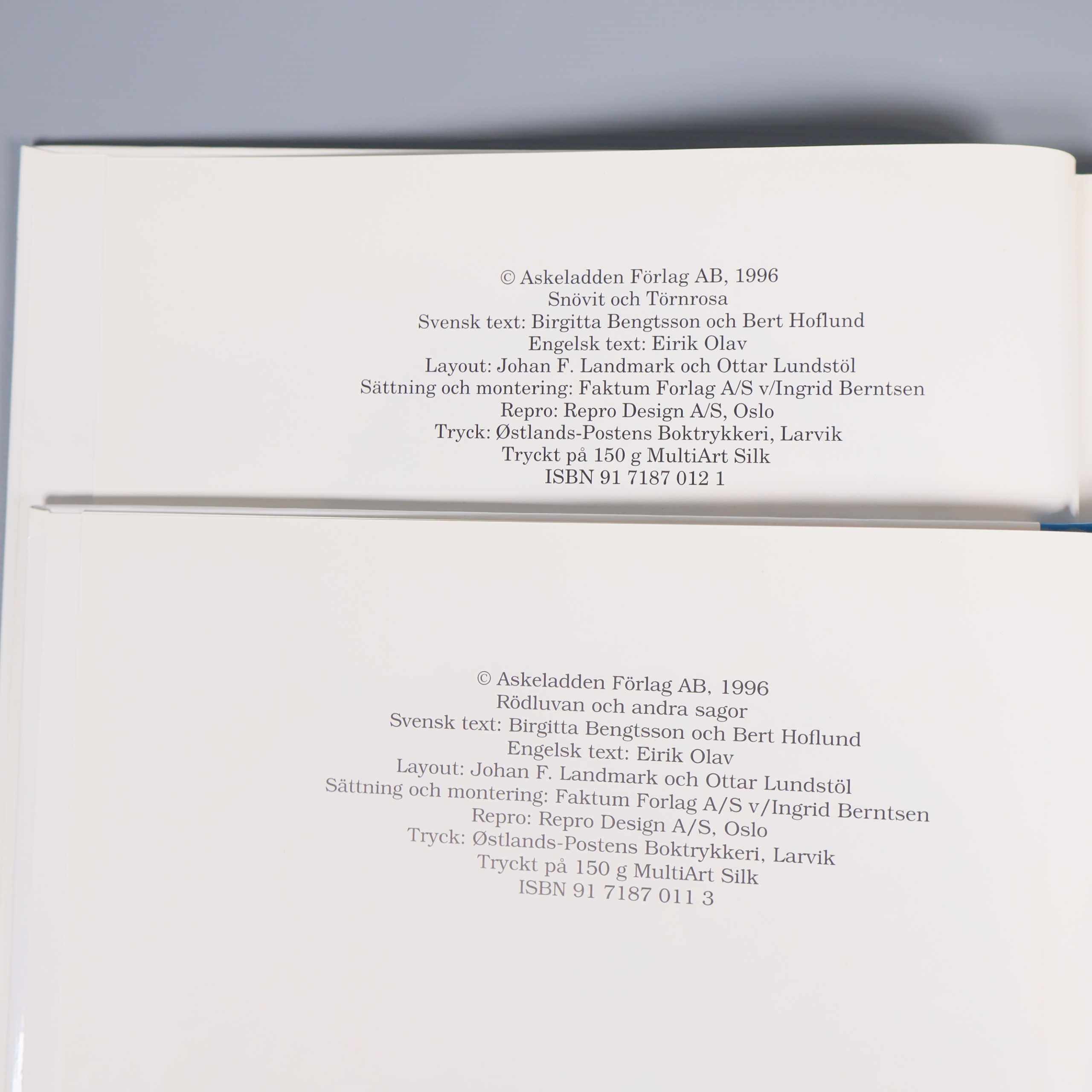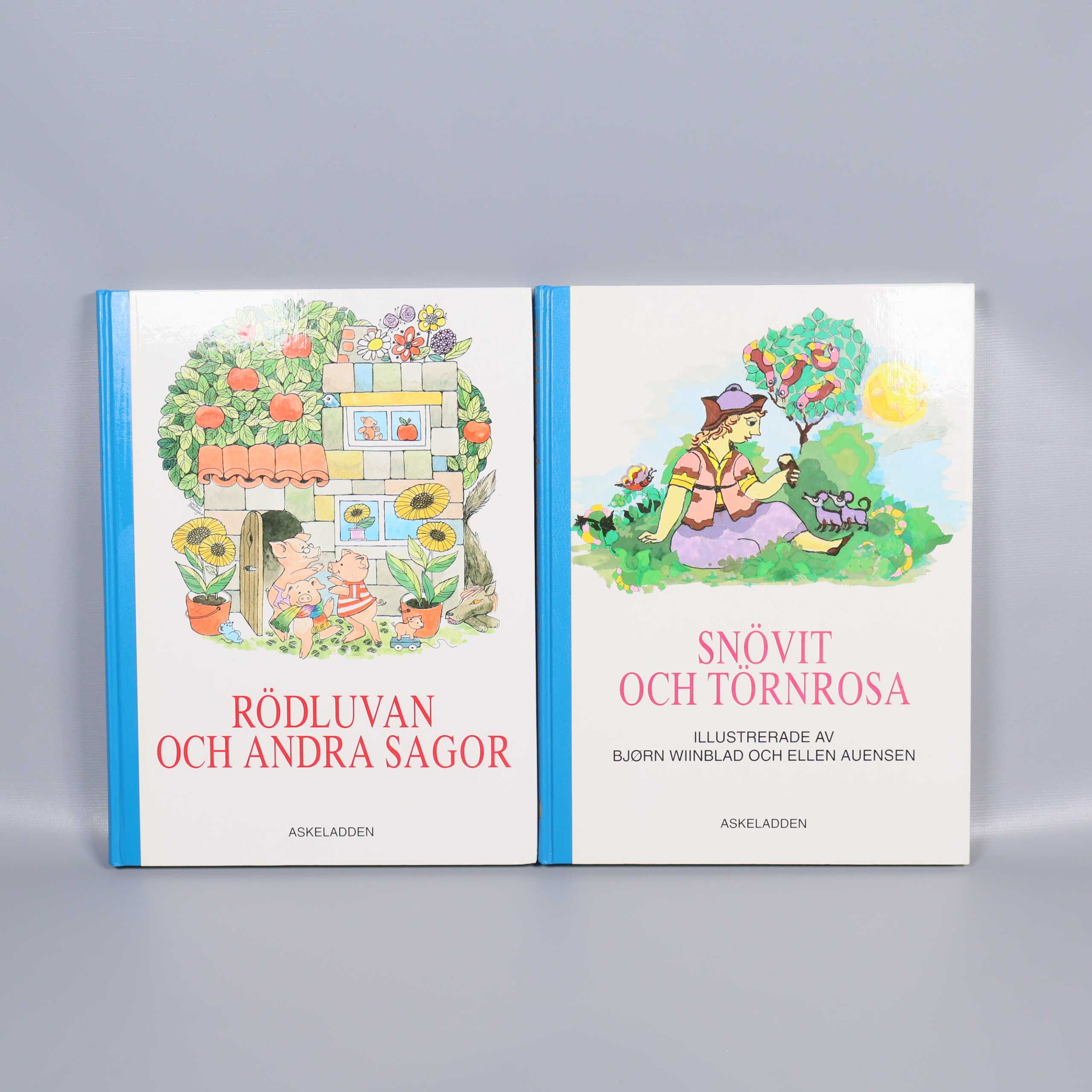 Två sagoböcker med klassiska berättelser. Rödluvan och andra sagor, samt Snövit och Törnrosa.