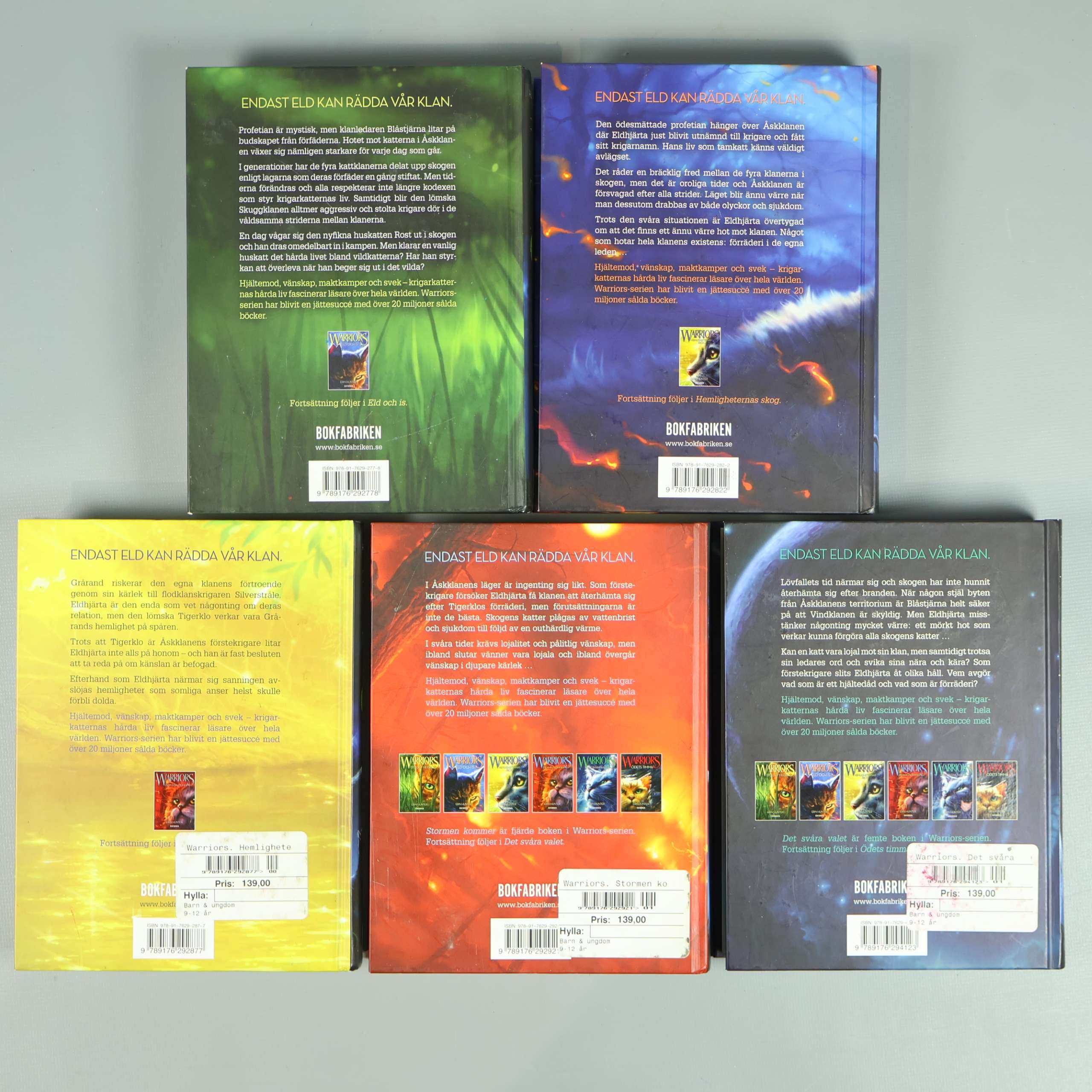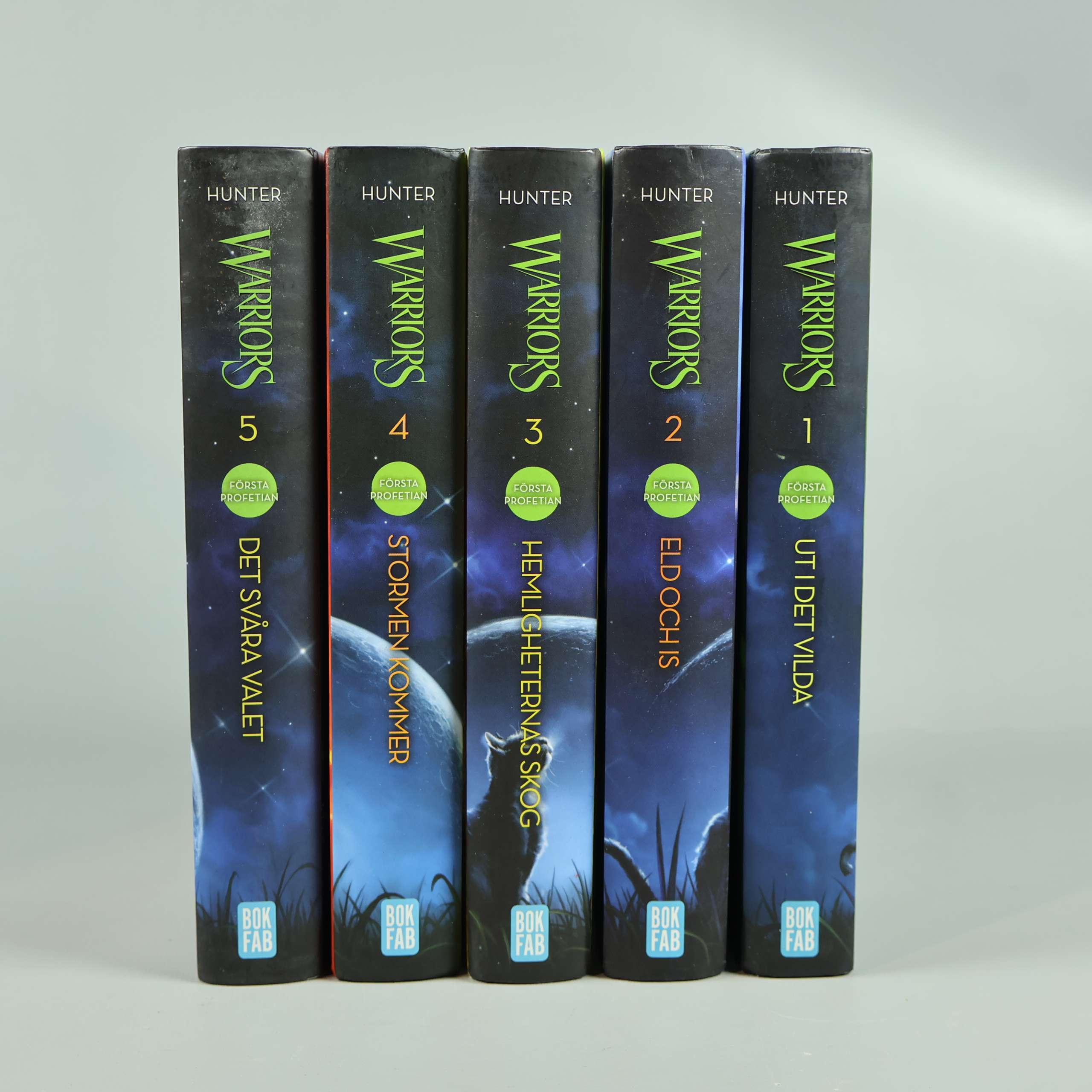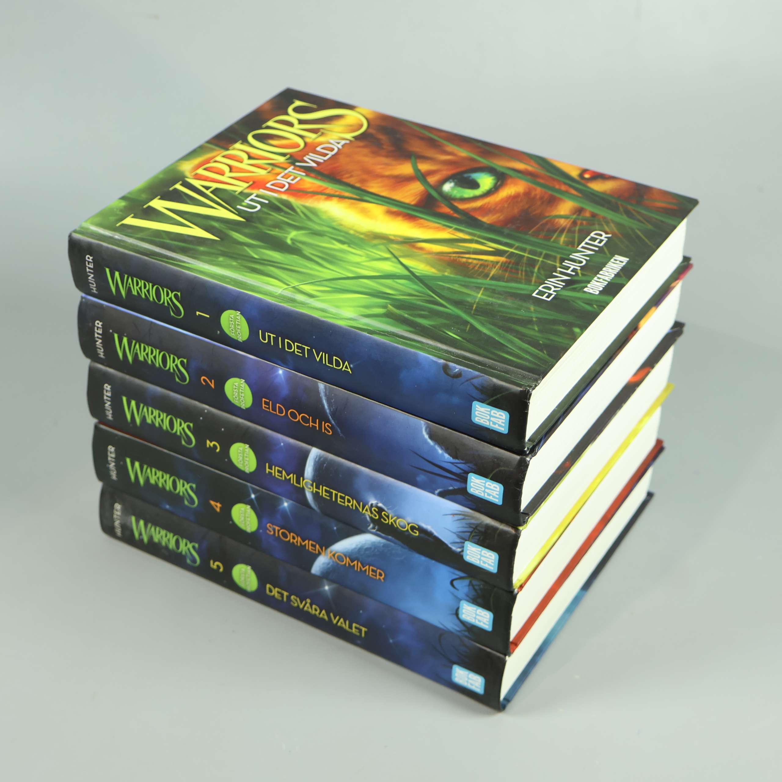 Upptäck den spännande Warriors-serien med detta bokpaket som innehåller de fem första delarna. Böckerna har färgstarka omslag med fantasifulla kattmotiv och är i mycket gott skick. Både insida och utsida känns genomtänkta och fulla av detaljer, inklusive snygga tecknade kartor över kattklaner. Perfekt för dig som gillar äventyr och fängslande illustrationer.