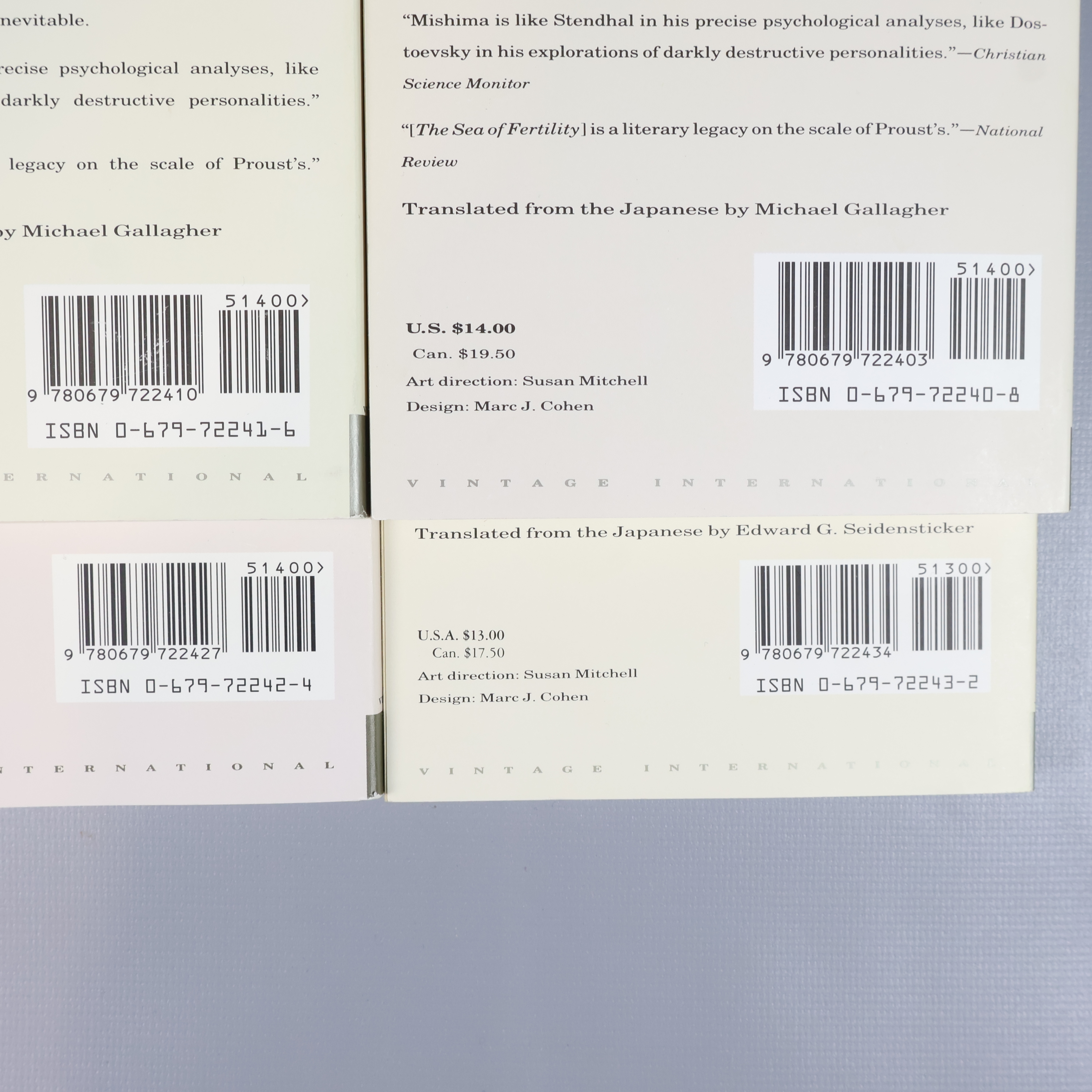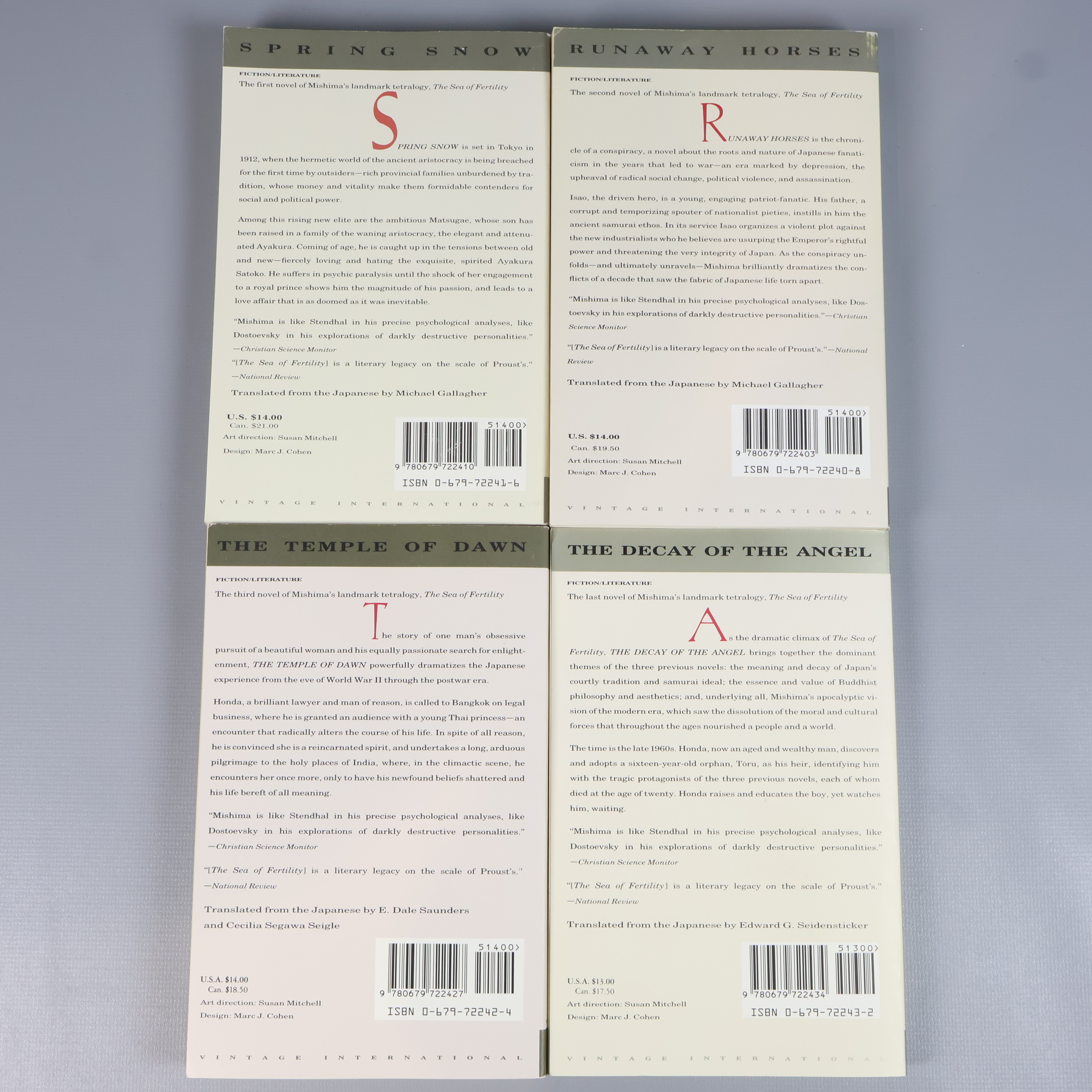 Bokpaket - Yukio Mishima - The Sea of Fertility 1-4 199 kr Product variation Antal st Beskrivning Fyrpack engelskspråkiga pocketböcker: The Sea of Fertility-serien av Yukio Mishima. Innehåller alla fyra delar: Spring Snow, Runaway Horses, The Temple of Dawn och The Decay of the Angel. Visa all beskrivning Boktitel Spring Snow, Runaway Horses, The Temple of Dawn, The Decay of the Angel Författare Yukio Mishima ISBN 0-679-72241-8, 0-679-72240-X, 0-679-72242-6, 0-679-72243-2 Skick Mycket gott skick Produkten är sparsamt använd, är av fin kvalitet och ska inte ha några skador eller förslitningar. Läs mer om hur vi bedömer