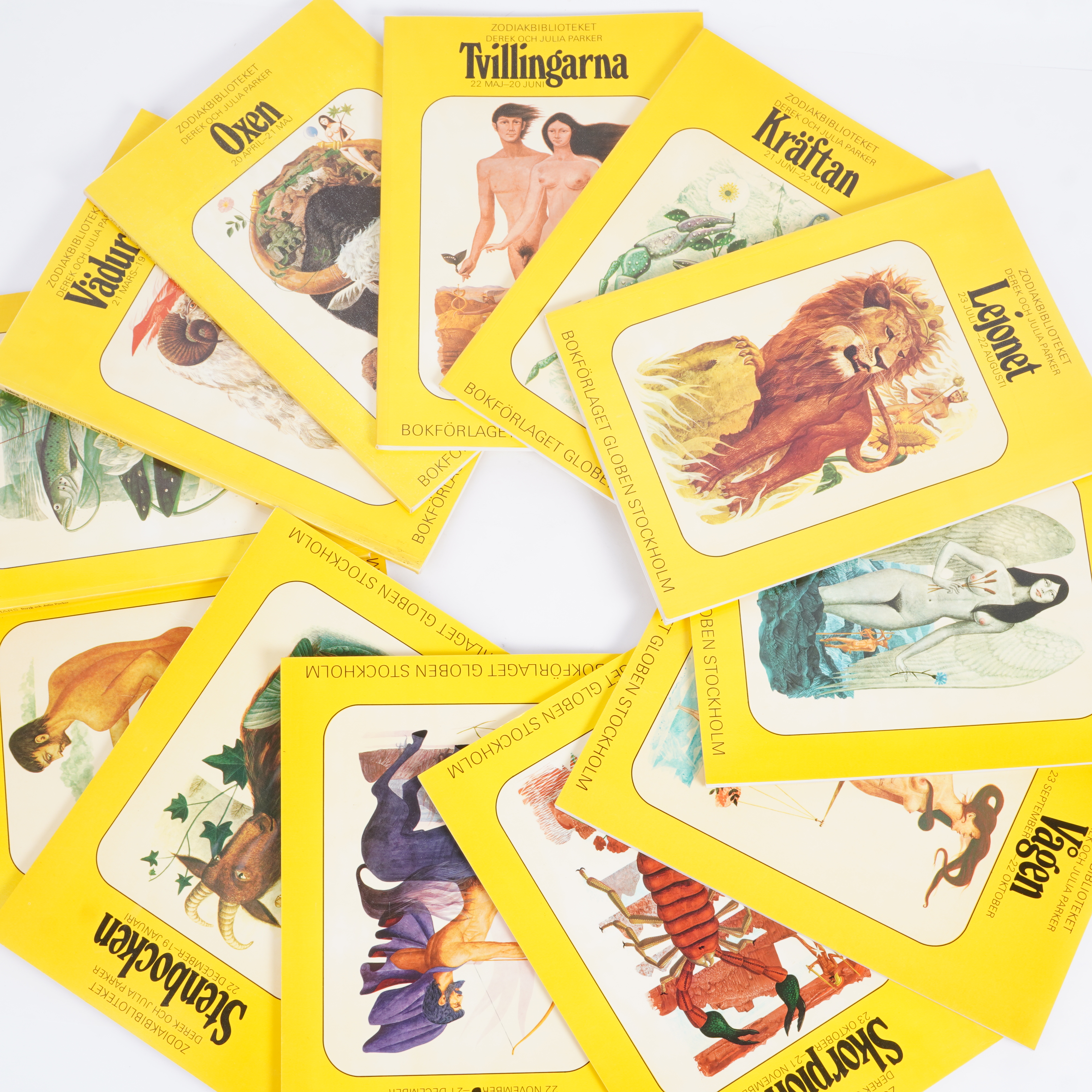 Samlat set med tolv färgglada böcker ur Zodiakbiblioteket, en för varje stjärntecken. Böckerna har ikoniska tecknade omslag i gult och är perfekta för dig som är nyfiken på astrologi och vill utforska varje soltecken närmare. De har ett retro och lekfullt uttryck som passar både samlare och nybörjare.