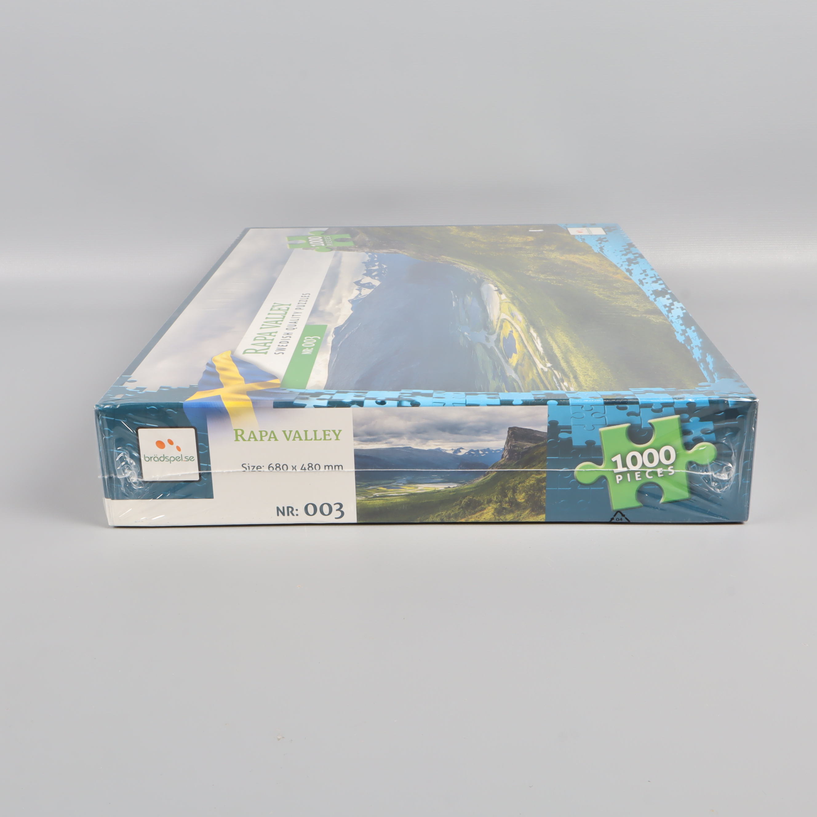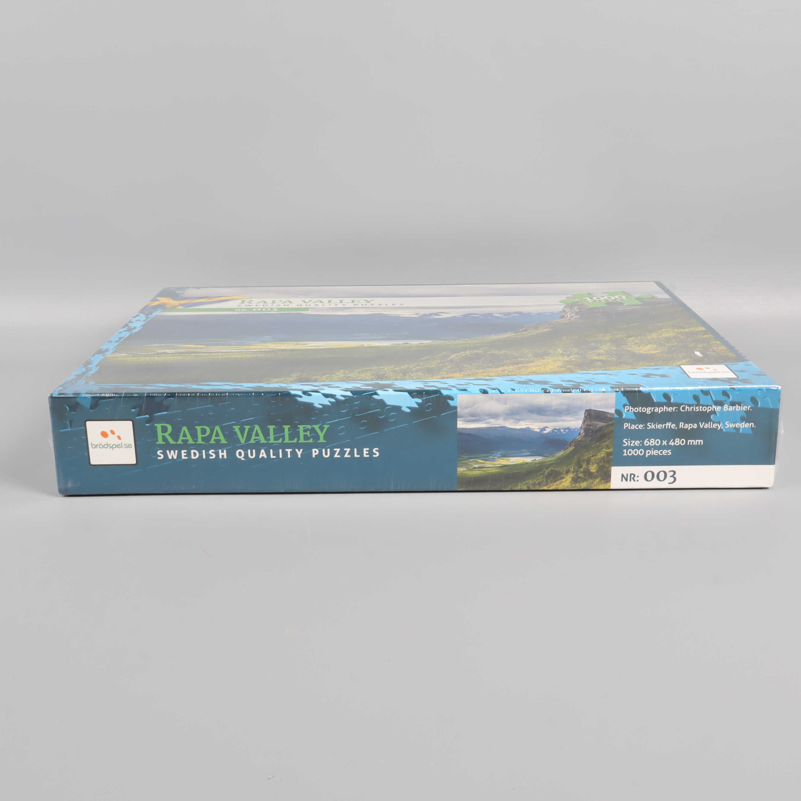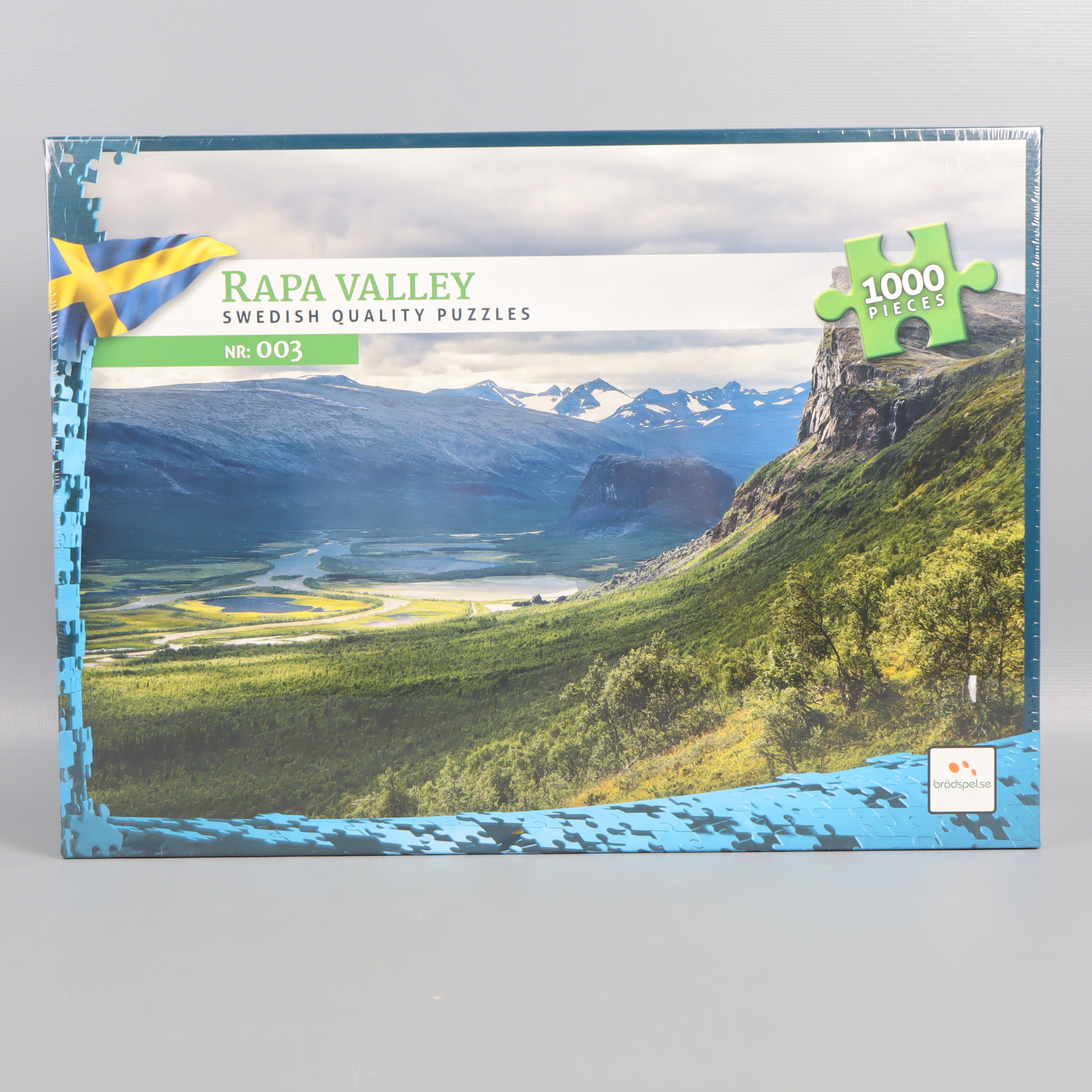 Stämningsfullt pussel med vacker naturbild av Rapa Valley och svensk landskapskänsla. Innehåller 1000 bitar och mäter 68 x 48 cm färdigbyggt. Boxen har snygg och modern design med tydlig information och passar dig som gillar utmaning och hög detaljrikedom.