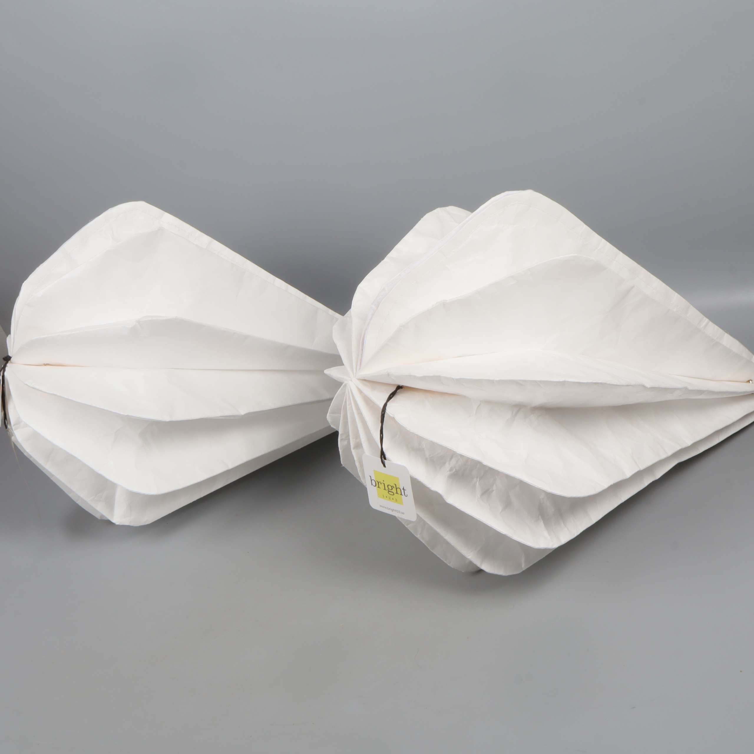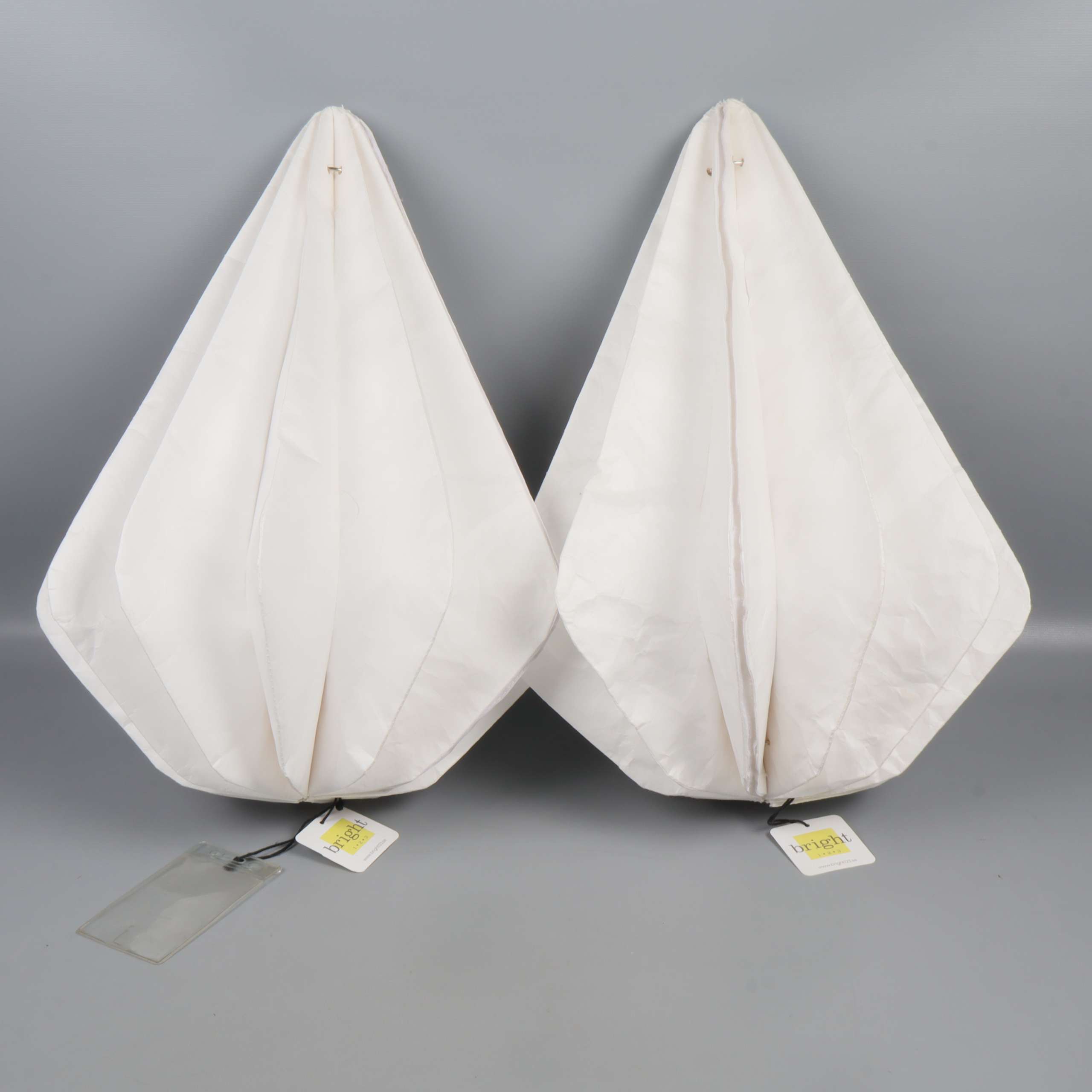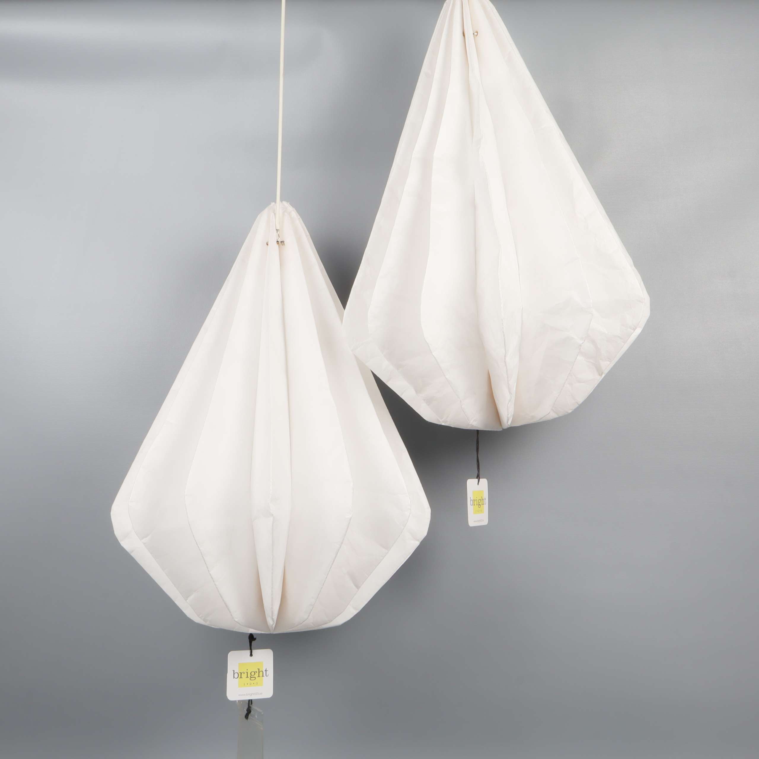 Två droppformade lampskärmar med stilren, veckad design som skapar ett mjukt och modernt uttryck. Perfekta för dig som gillar clean aesthetics och vill ha något annorlunda men ändå subtilt i rummet. Lätta att placera, passar till många inredningsstilar.