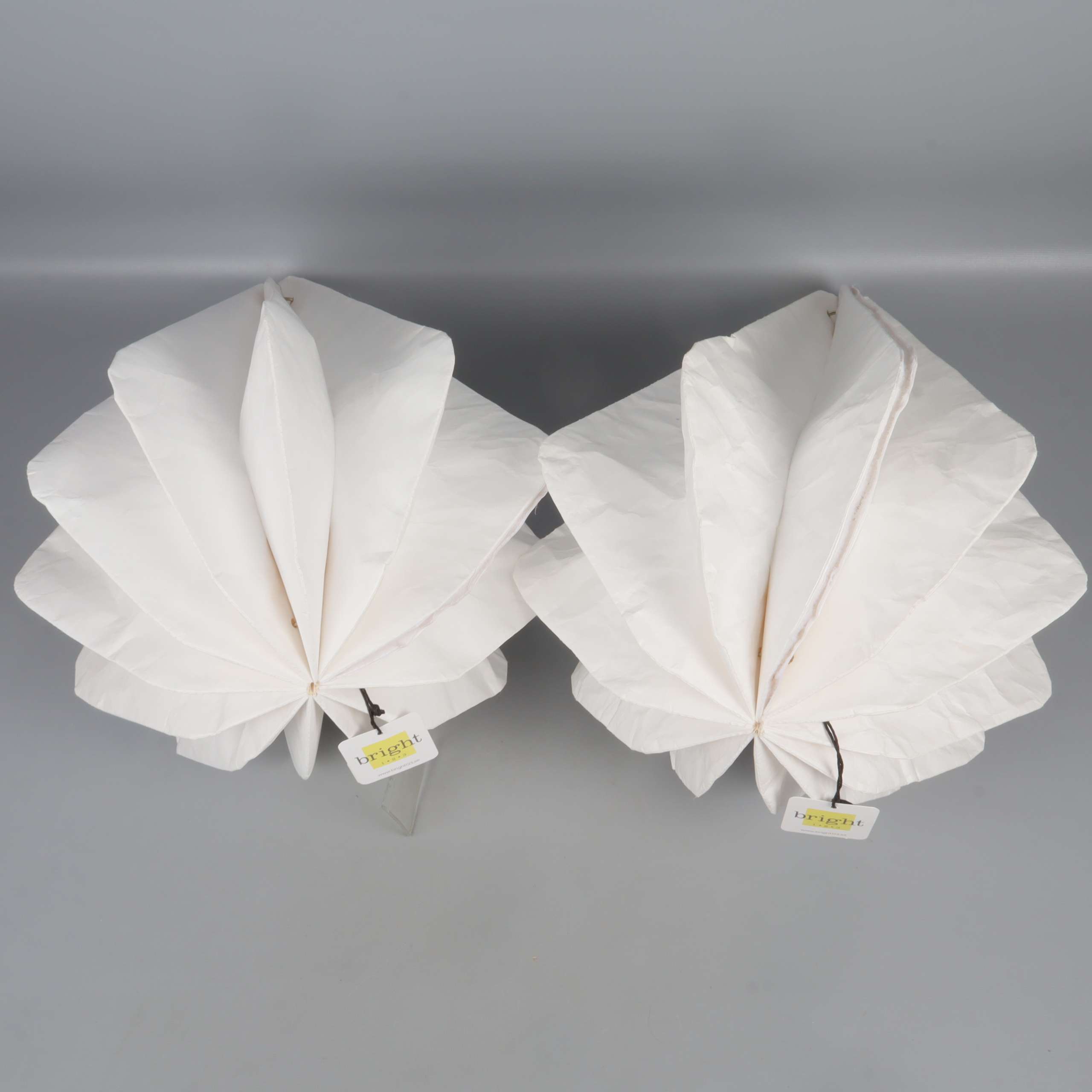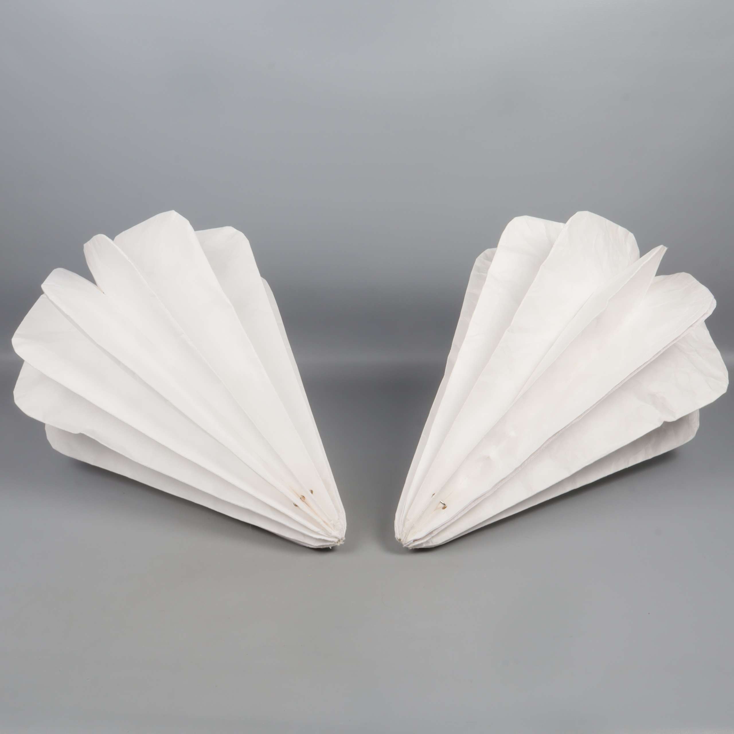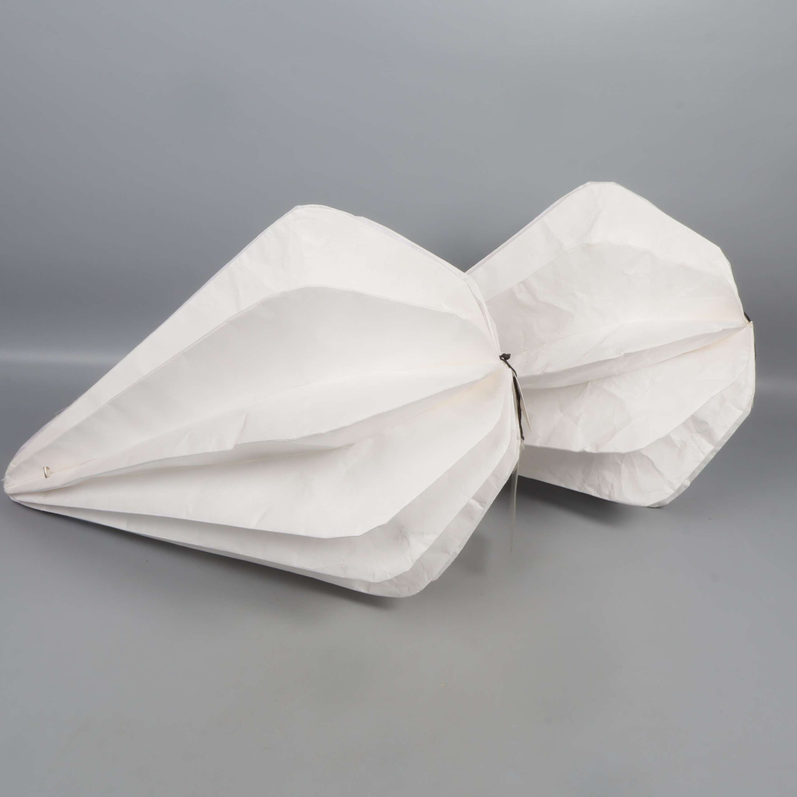 Två droppformade lampskärmar med stilren, veckad design som skapar ett mjukt och modernt uttryck. Perfekta för dig som gillar clean aesthetics och vill ha något annorlunda men ändå subtilt i rummet. Lätta att placera, passar till många inredningsstilar.
