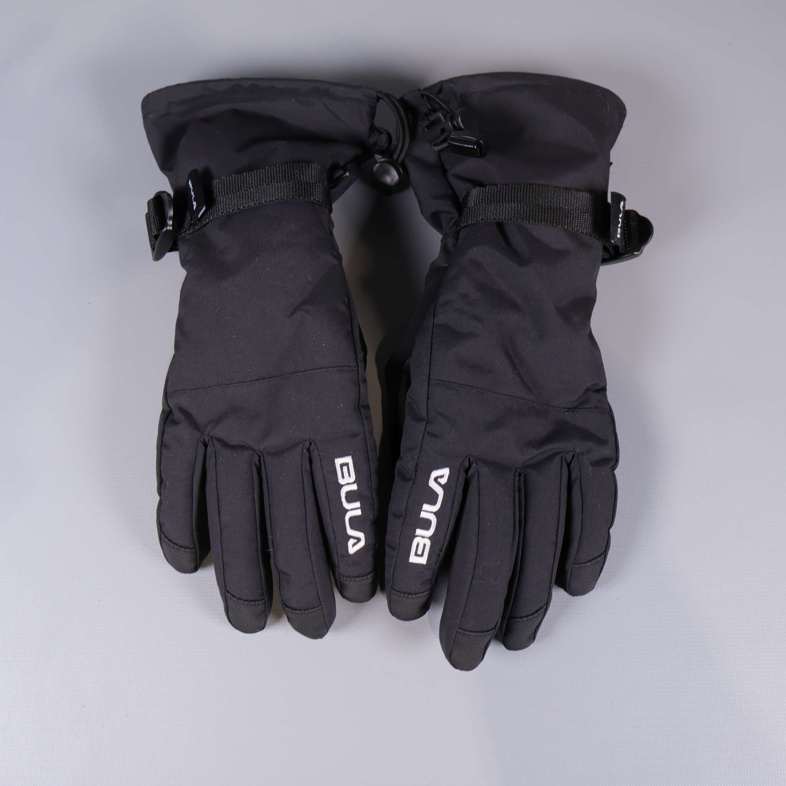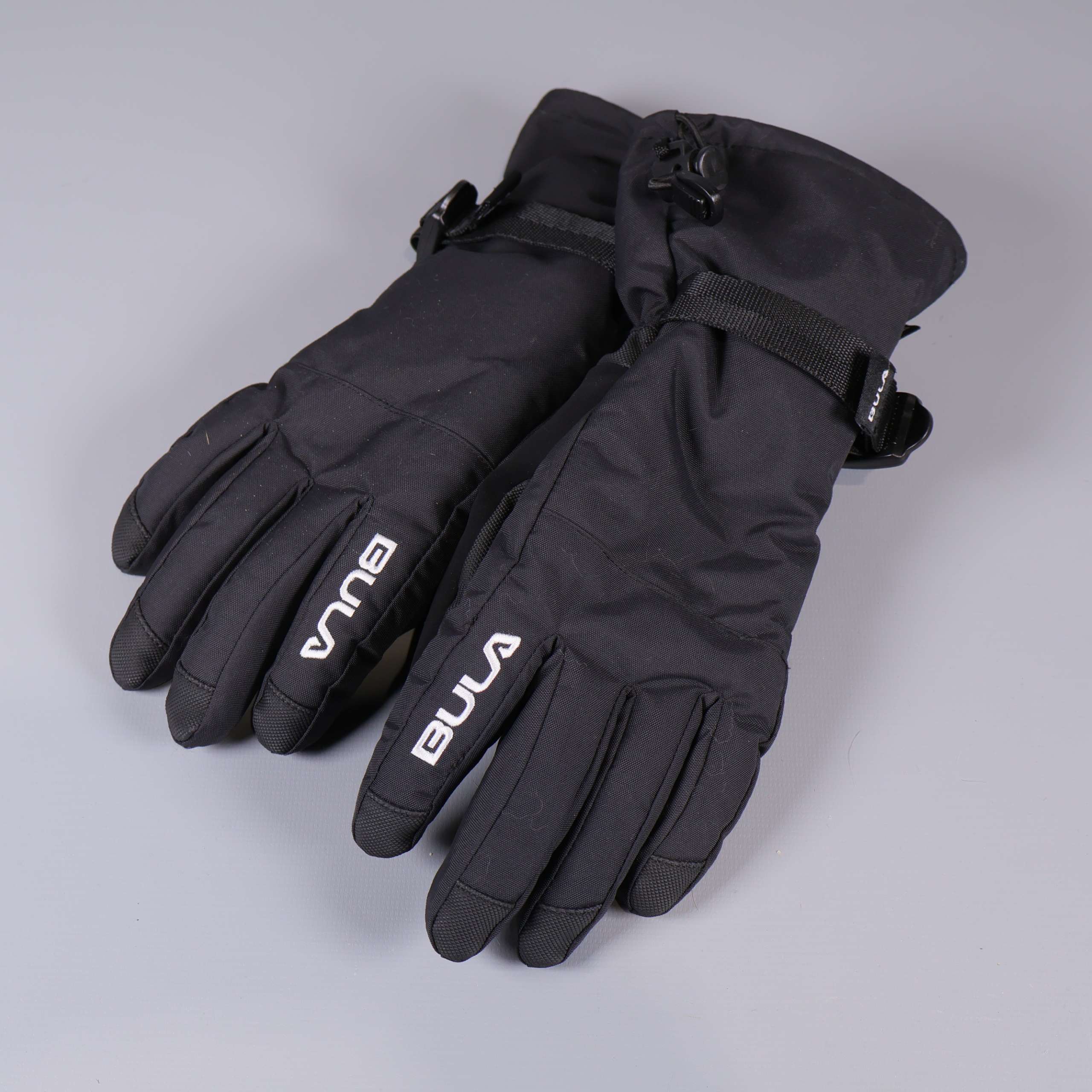 Rejäla vinterhandskar från Bula i svart med vadderad design och synlig logotyp på ovansidan. Justerbart band vid handleden och elastisk mudd ger en säker och flexibel passform. Handskarna har slät ovandel och förstärkning i handflatan, vilket gör dem tåliga för kalla dagar och aktiviteter utomhus.