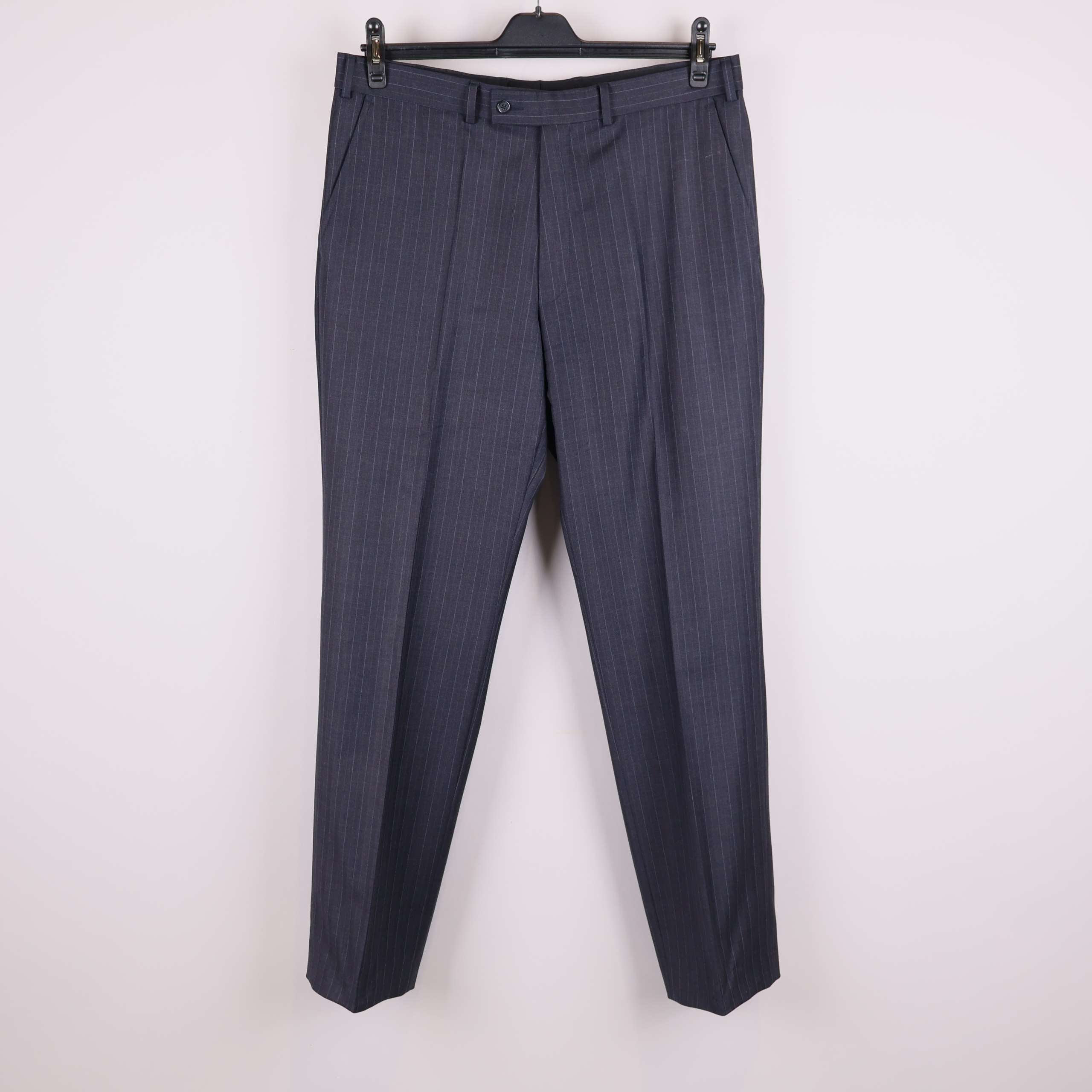 Kostym med klassiskt snitt i smal kritstrecksrand för en dressad look. Utrustad med tvåknäppt kavaj, fyra fickor och matchande byxa med pressveck. Fodret är slätt och bekvämt, medan passformen ger en tidlös och elegant stil oavsett tillfälle. Perfekt för dig som vill ha en modern men ändå tidlös känsla.