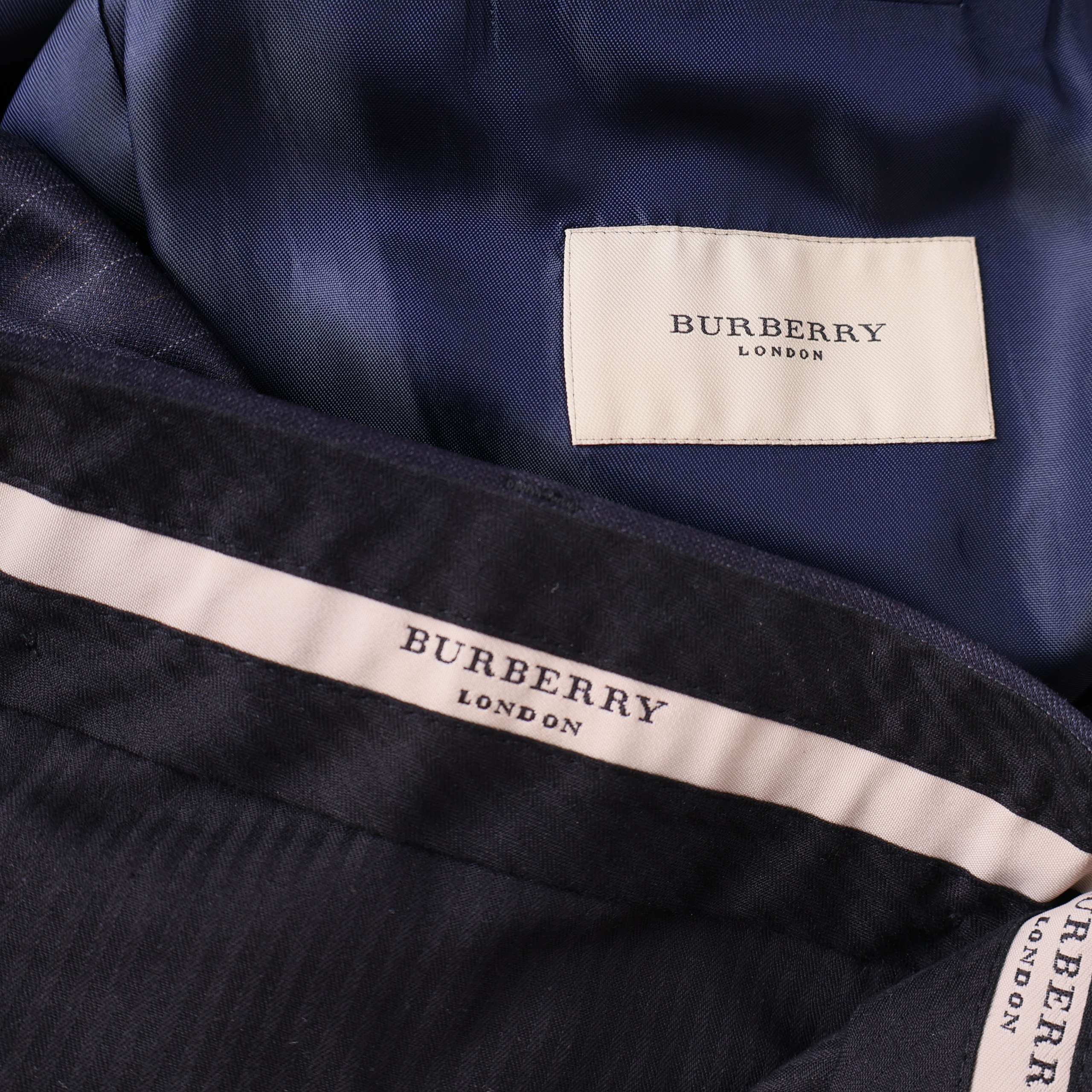 Burberry marinblå herr kostym med kritstrecksränder