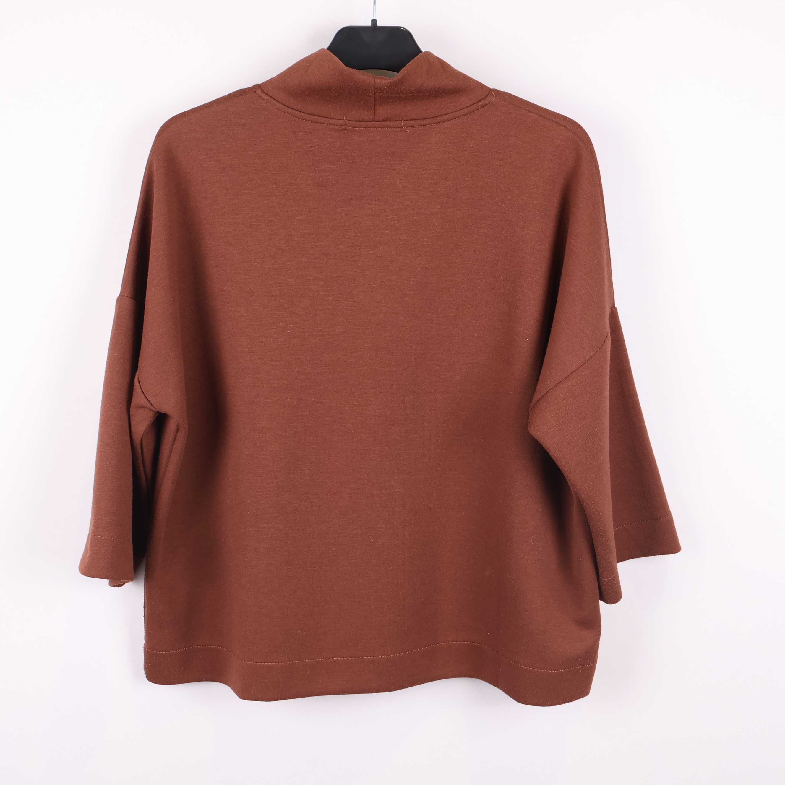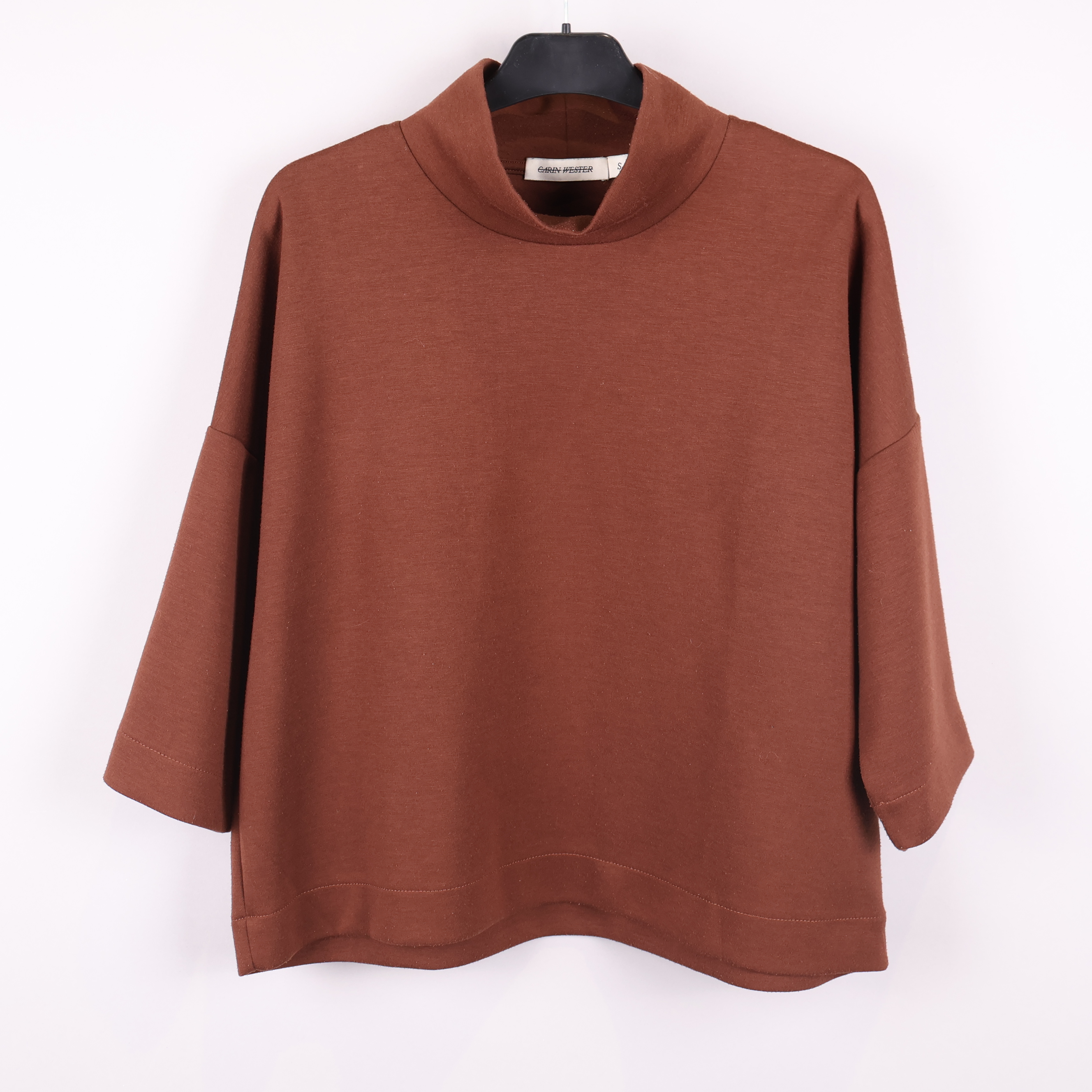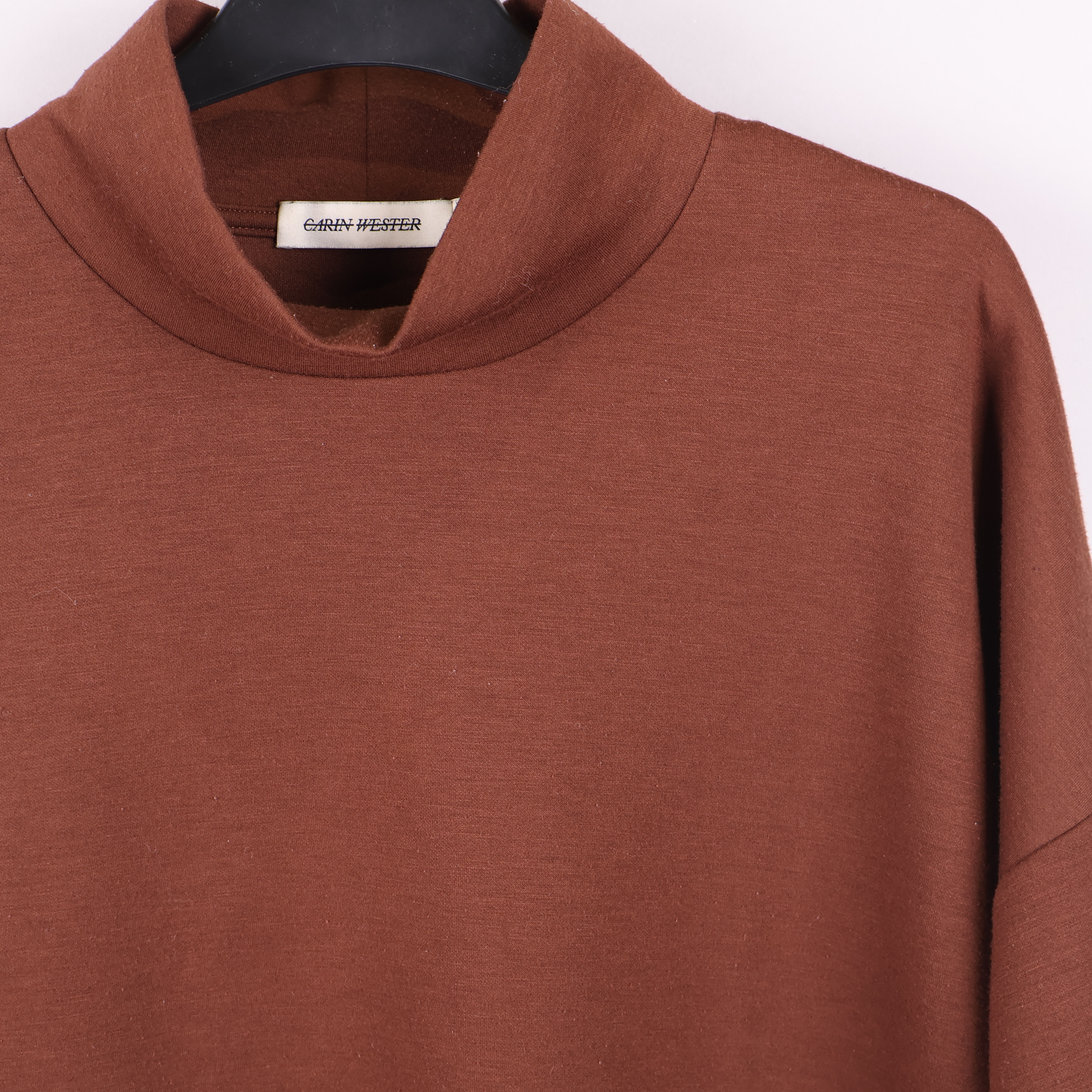 Avslappnad tröja från Carin Wester med rak, boxig silhuett och mjuk oversize passform. Tillverkad i ett stretchigt tyg som ger skön komfort och rörelsefrihet. Den höga kragen och de 3/4-långa ärmarna ger en modern look. Enfärgad brun ton som känns både stilren och trendig.