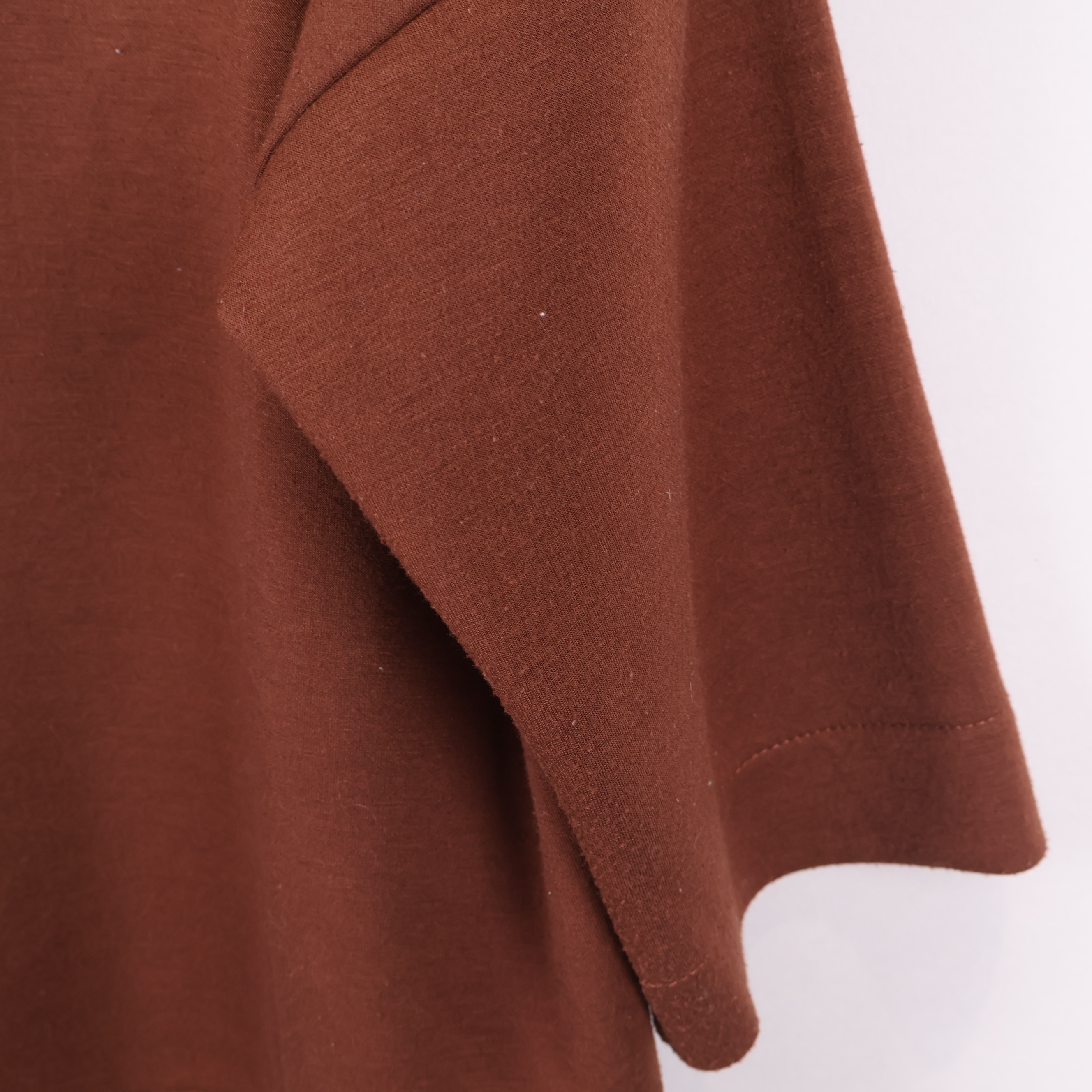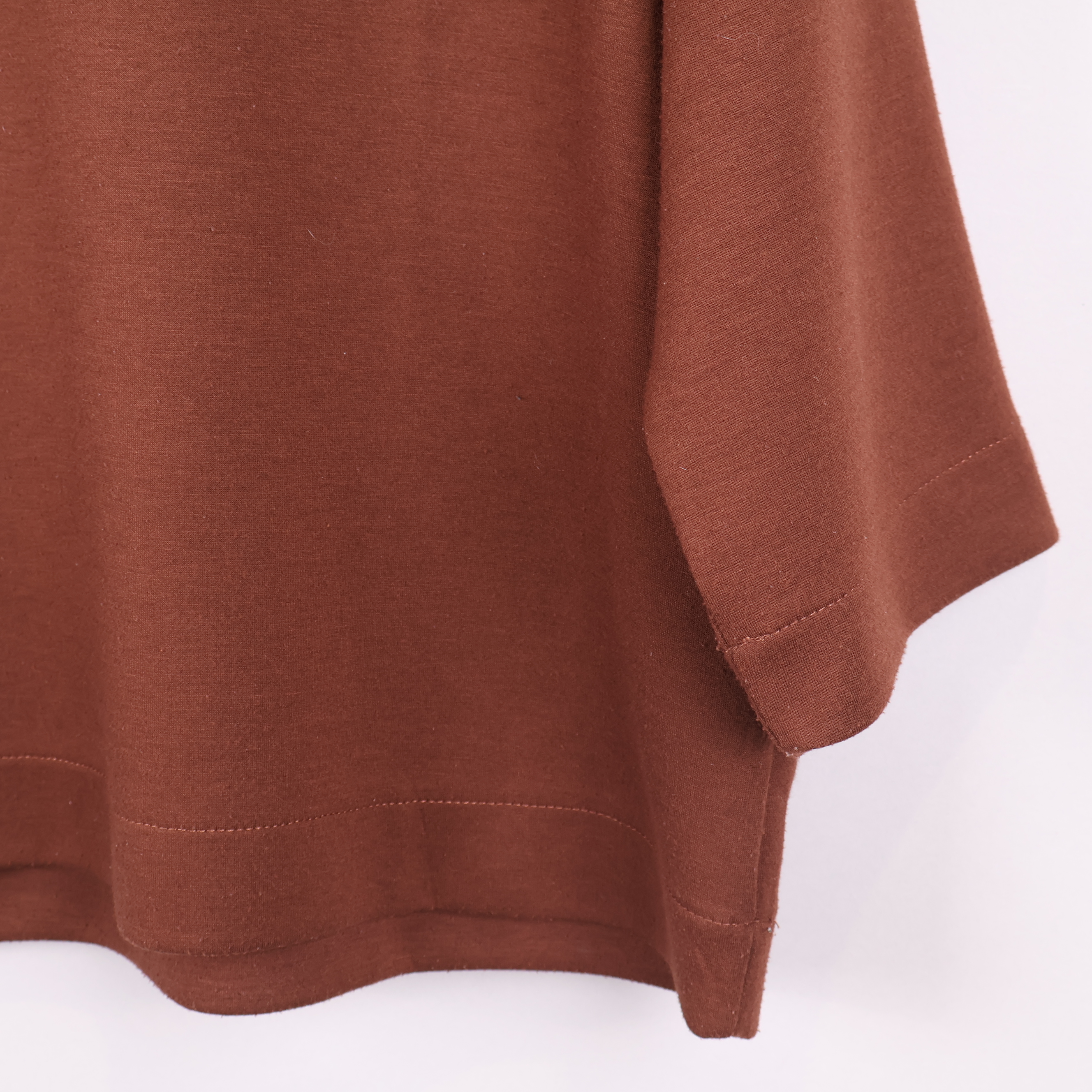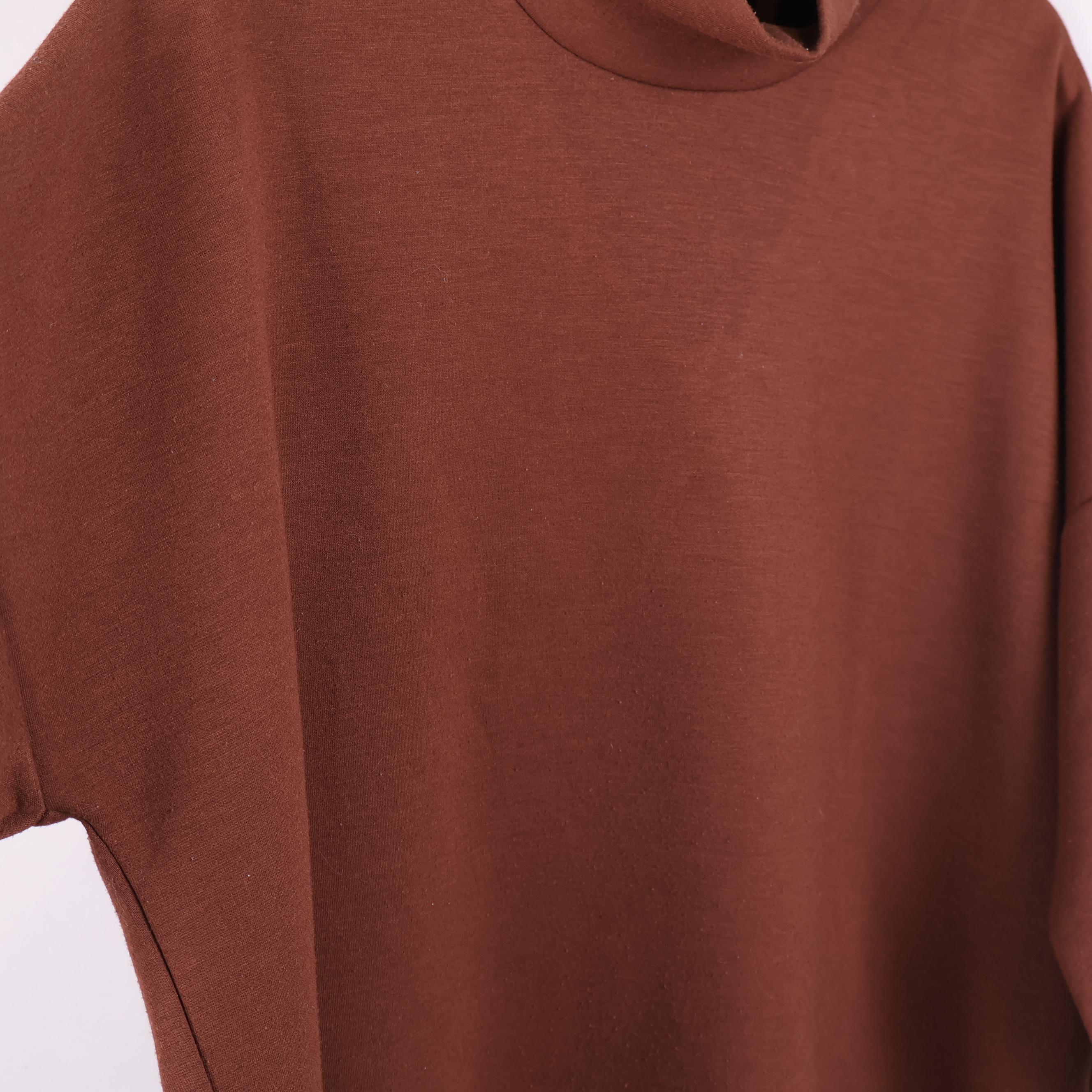 Avslappnad tröja från Carin Wester med rak, boxig silhuett och mjuk oversize passform. Tillverkad i ett stretchigt tyg som ger skön komfort och rörelsefrihet. Den höga kragen och de 3/4-långa ärmarna ger en modern look. Enfärgad brun ton som känns både stilren och trendig.