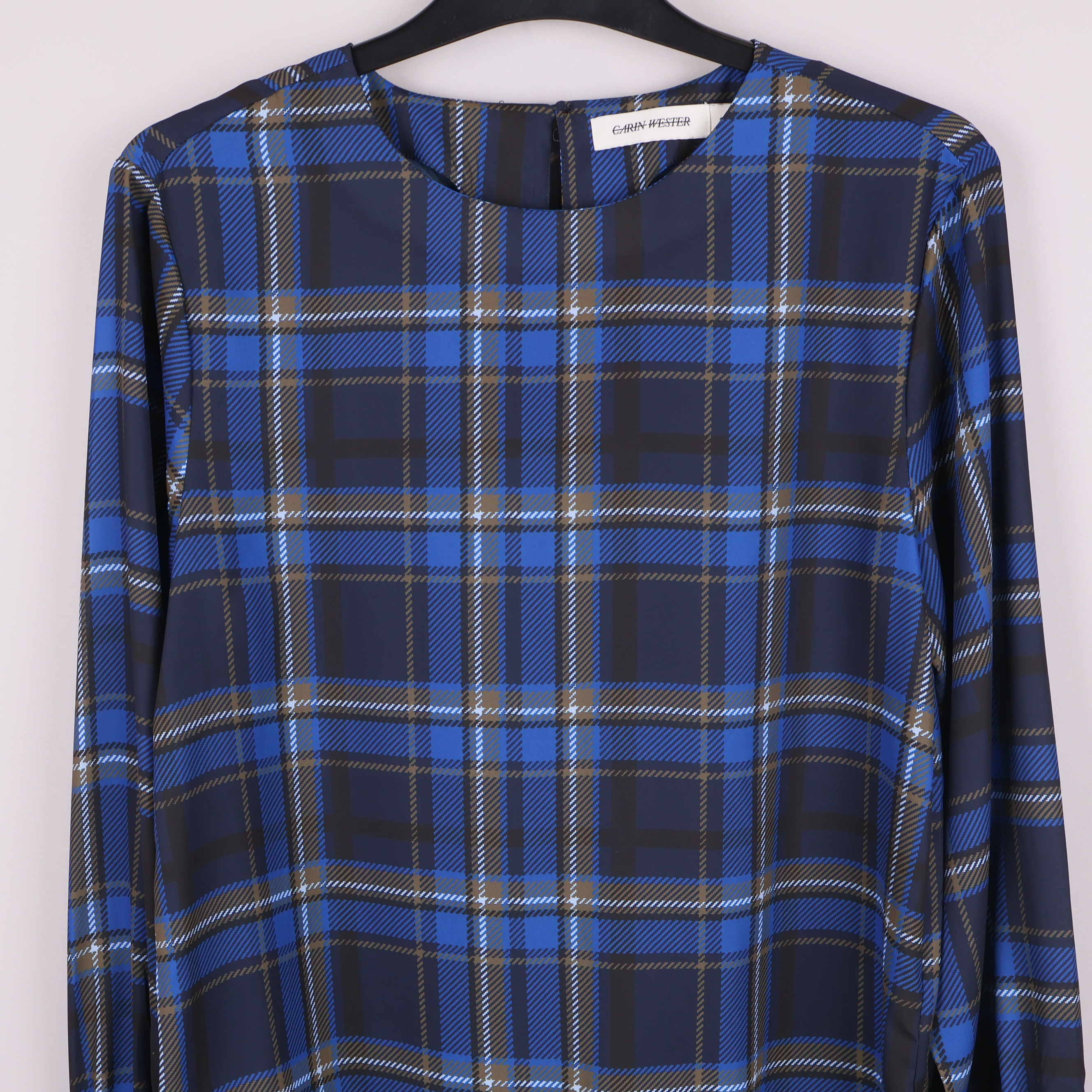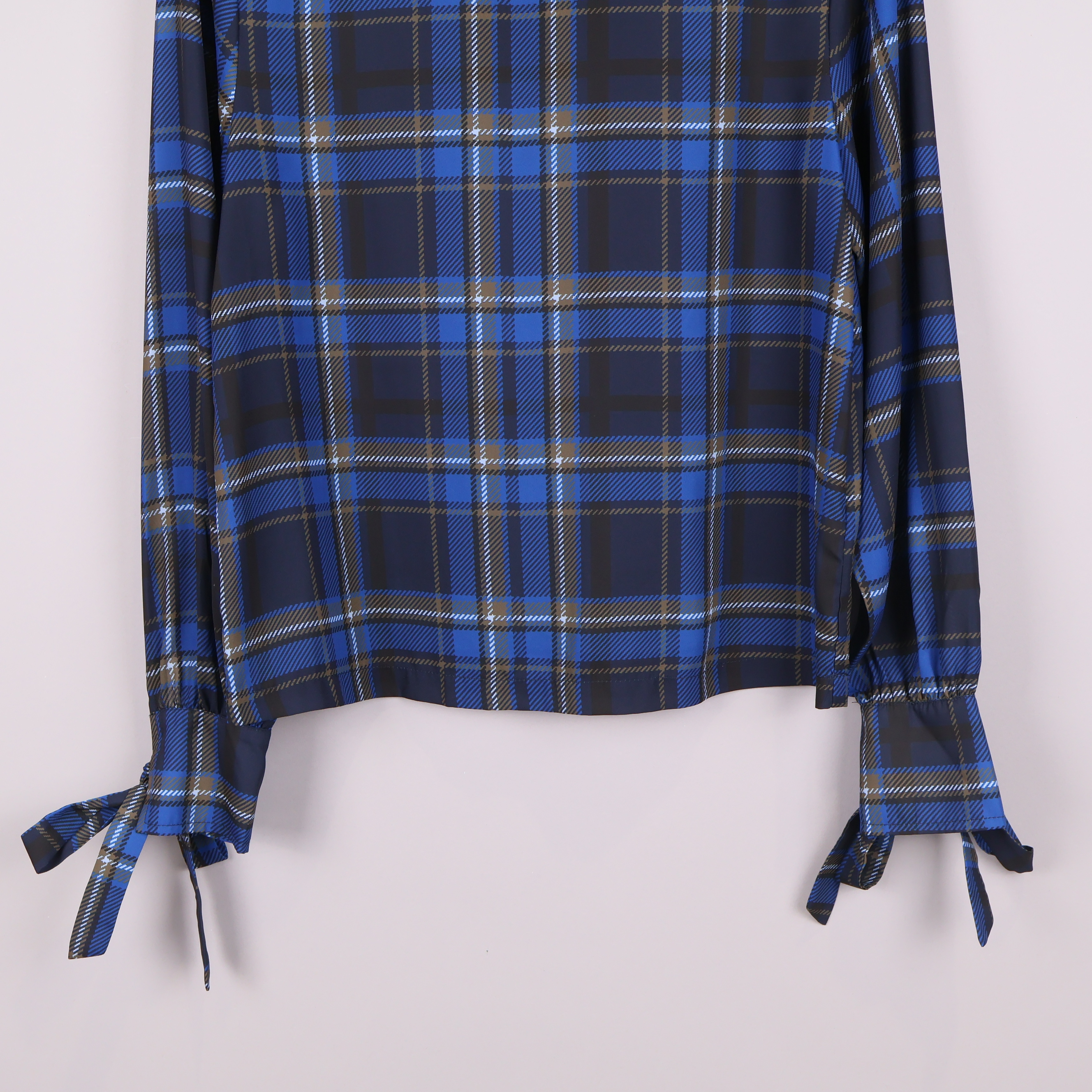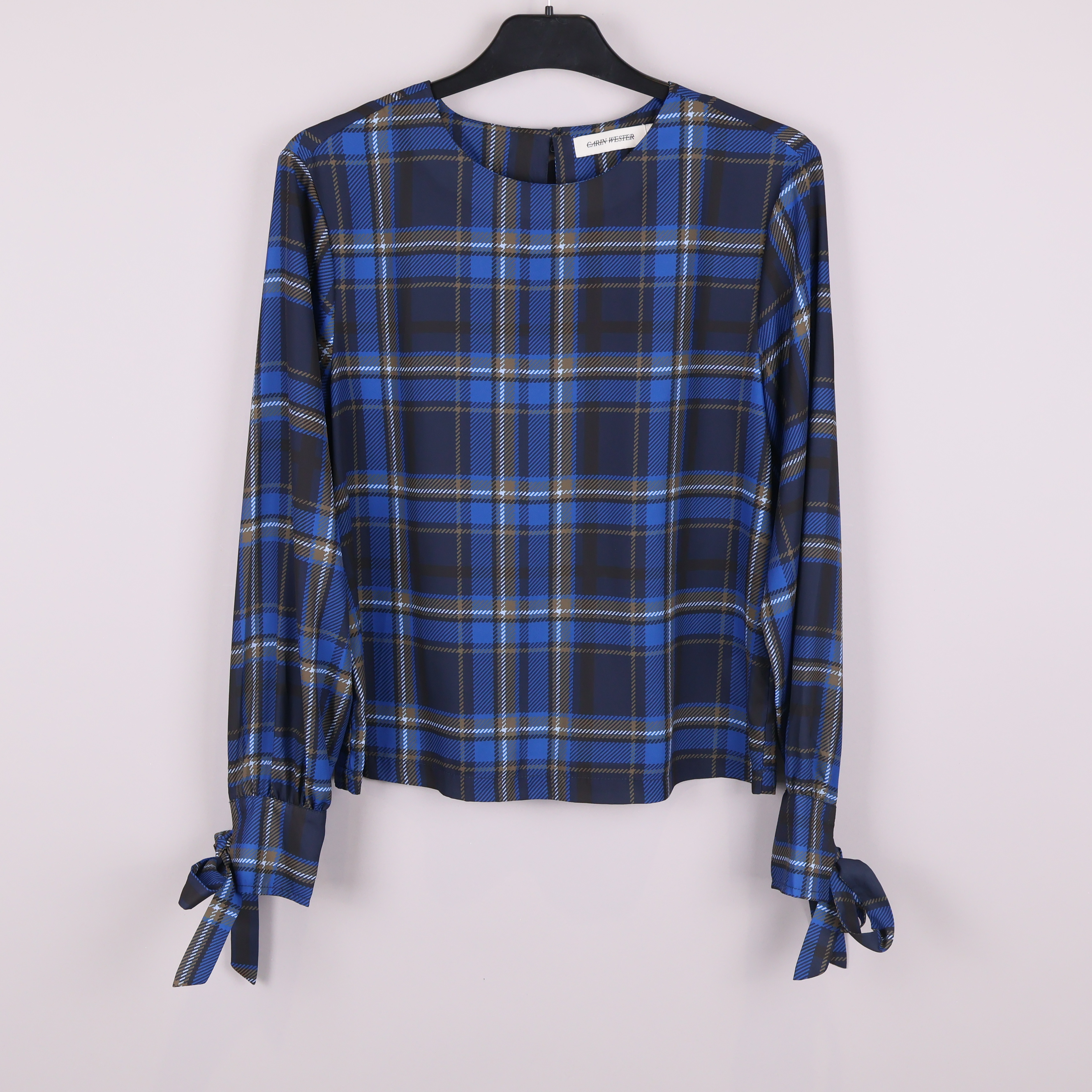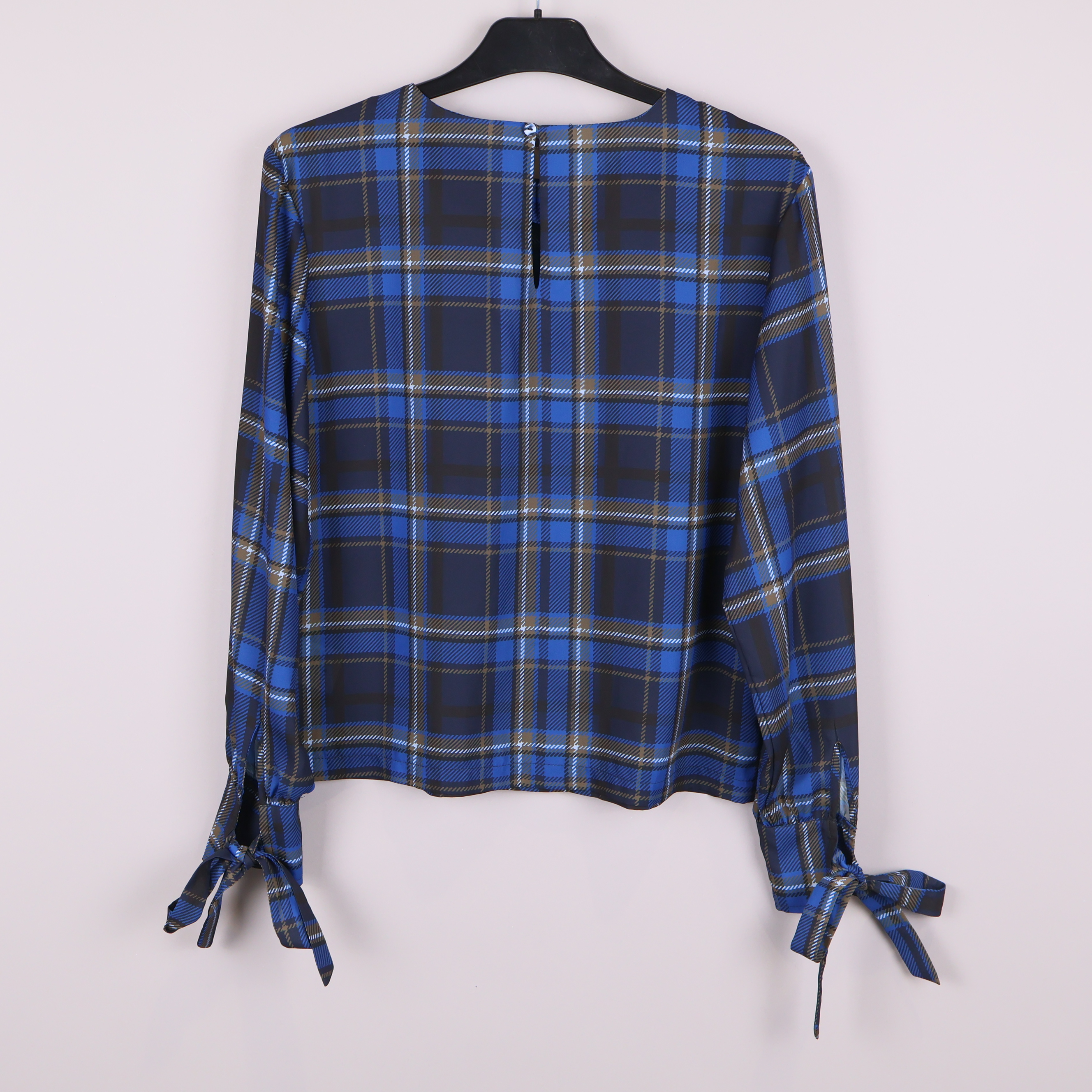 Stilsäker topp med blå och svart rutig design som ger en modern twist och unikt uttryck. Rak passform med långa ärmar och knytdetaljer vid mudden för extra karaktär.