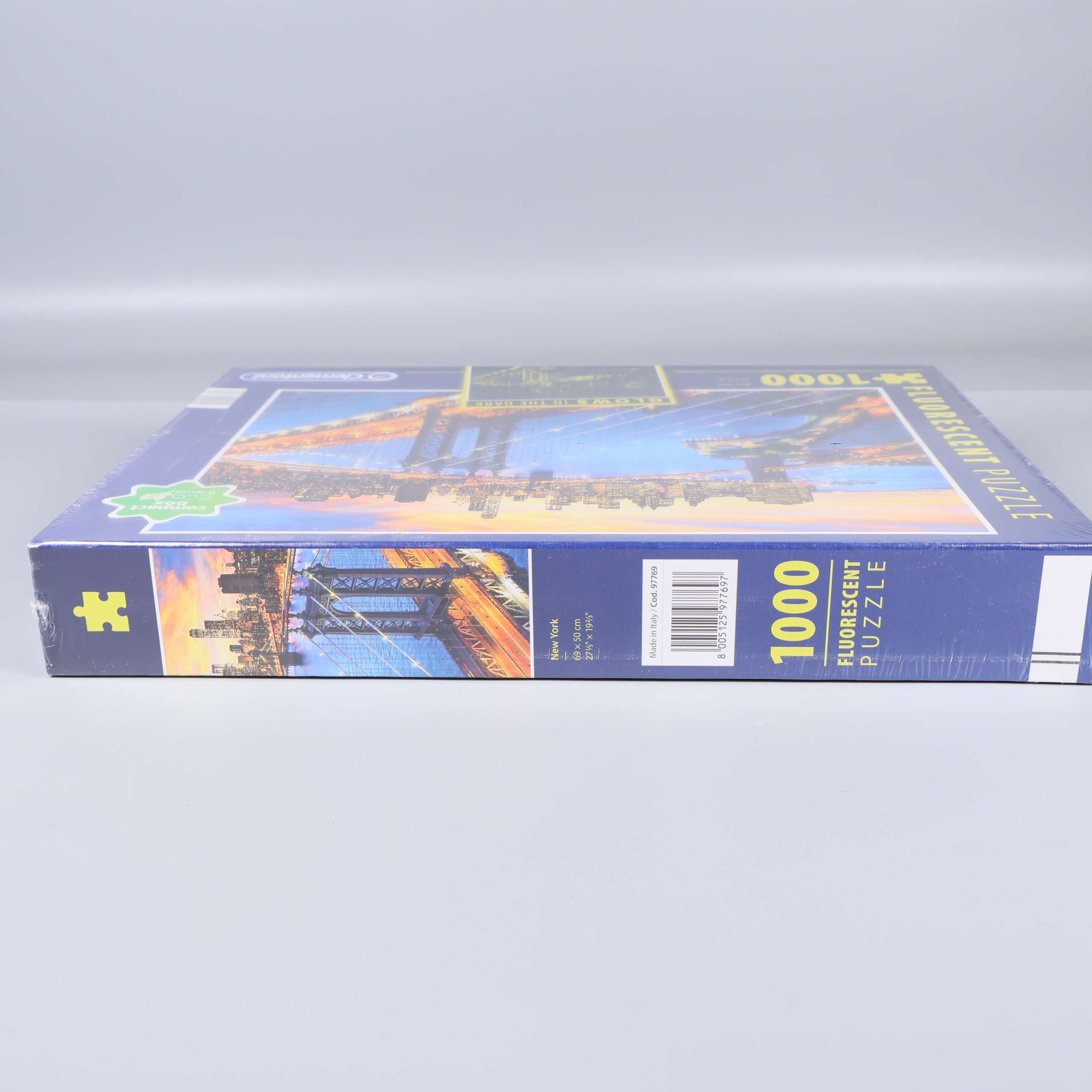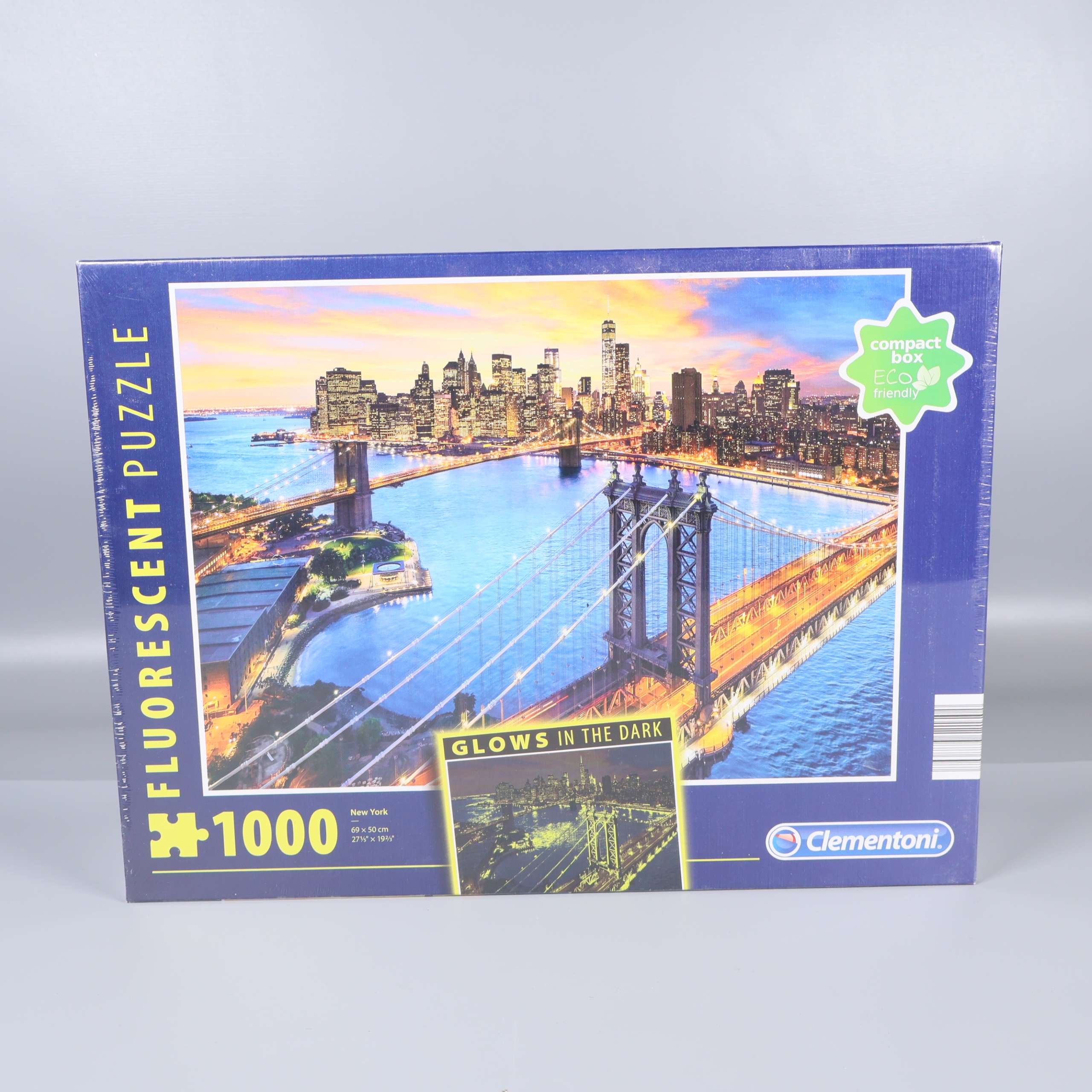 Pussel med 1000 bitar och ett imponerande motiv av New Yorks skyline och bron som lyser i mörkret för en cool effekt. Kartongen har en stilren blå design med tydliga detaljer och ett tydligt tema för dig som gillar stadsmotiv. Perfekt för dig som älskar en utmaning och att se pusslet lysa upp efteråt.