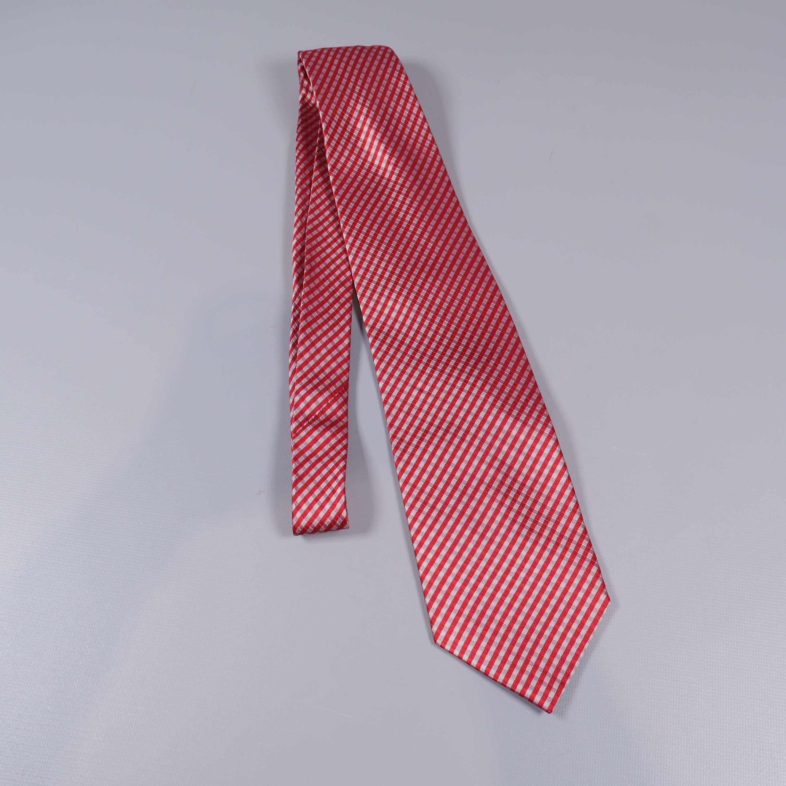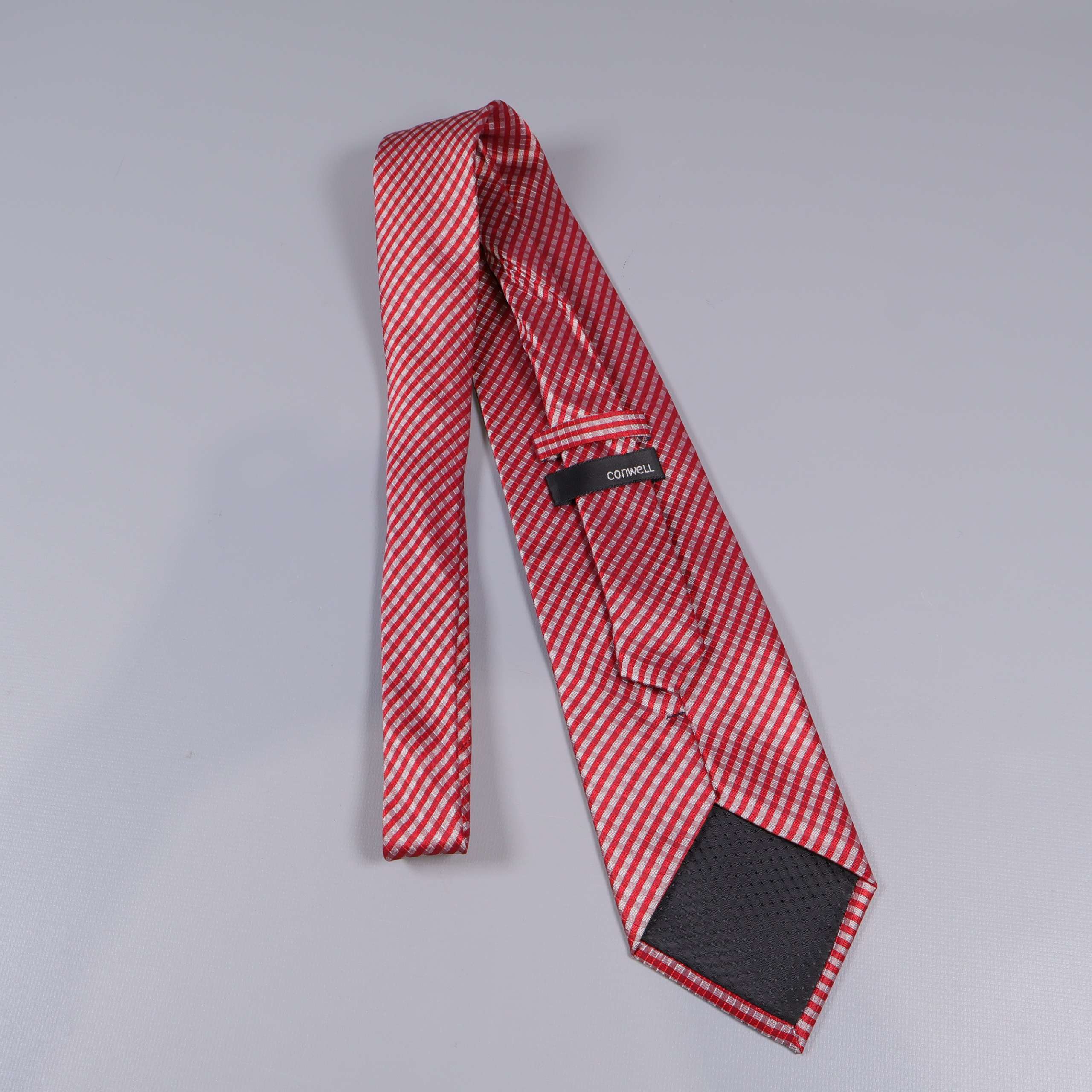 Slips med klassiskt rödvitt diagonalt mönster som ger en modern och stilren look. Snygg blank finish och välgjord bred modell, passar perfekt när du söker en touch av retro men samtidigt vill ha en lättburen accessoar till skjorta och kavaj. Mjuk känsla och enkel att knyta.