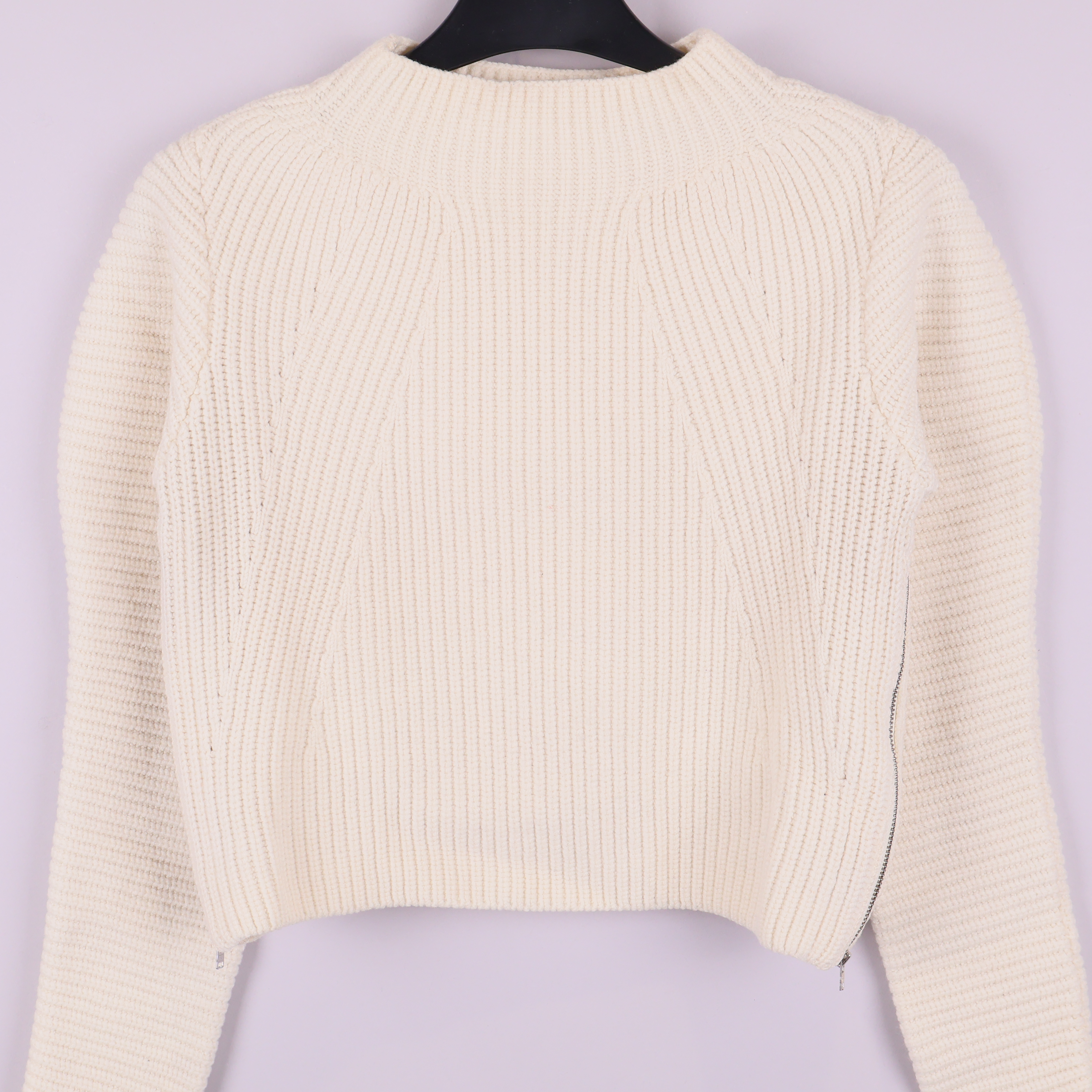 Mysig och trendig ribbstickad tröja i krämvit färg, med snygga dragkedjor i sidorna som ger en modern twist. Den har rund hals och relaxed fit med diskret struktur, perfekt för dig som vill ha något stilrent och bekvämt i garderoben. Mjuk merinoull gör plagget extra skönt och passar både till vardag och chill.