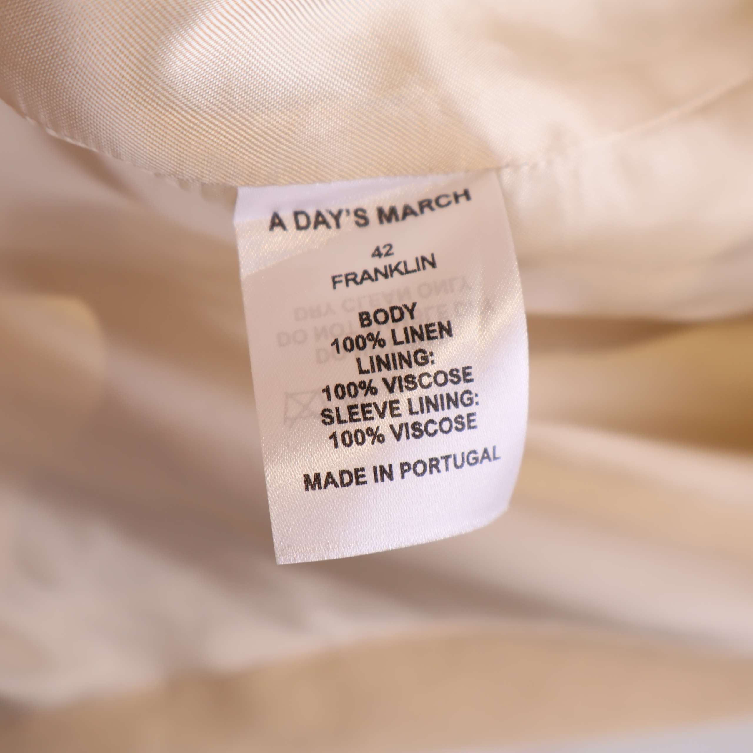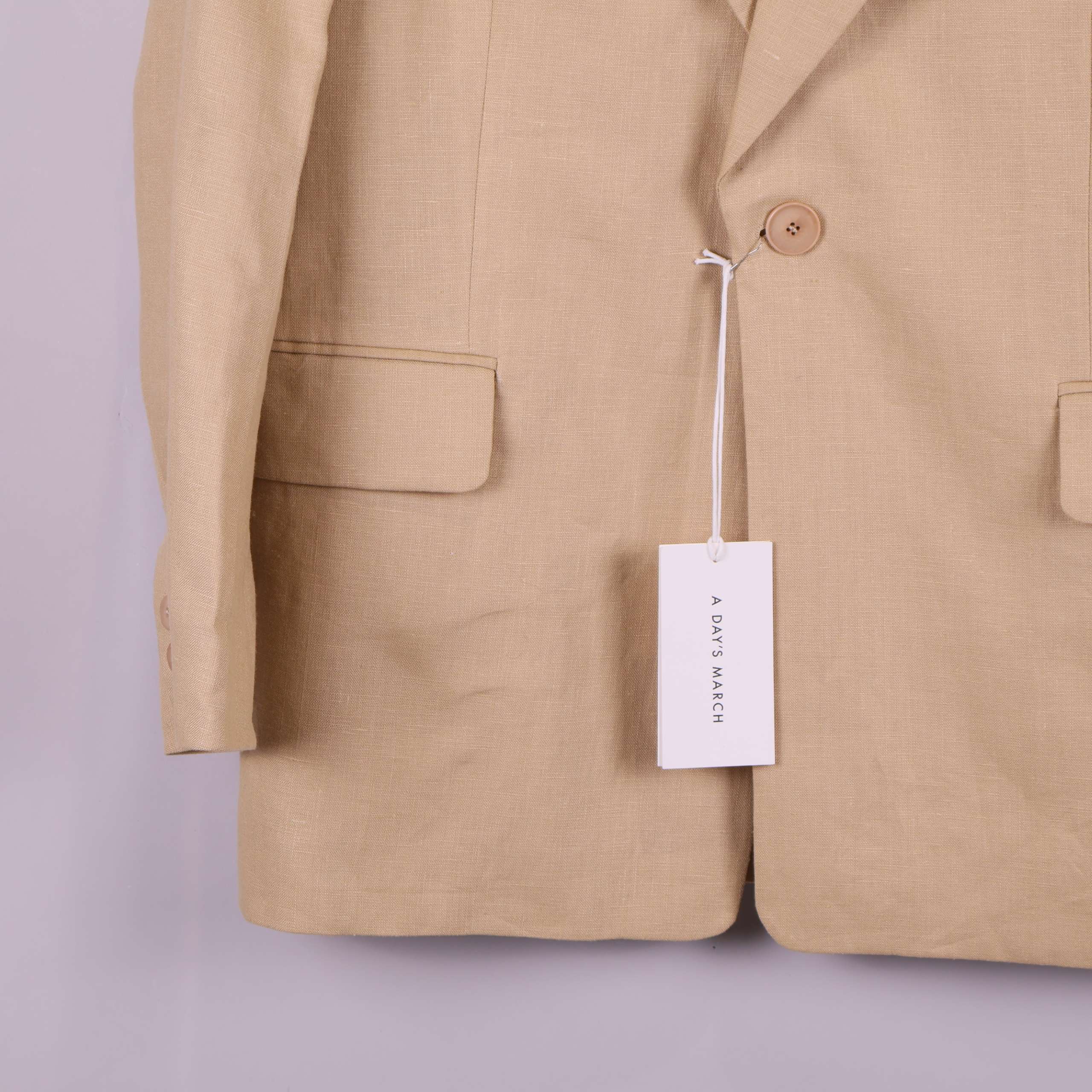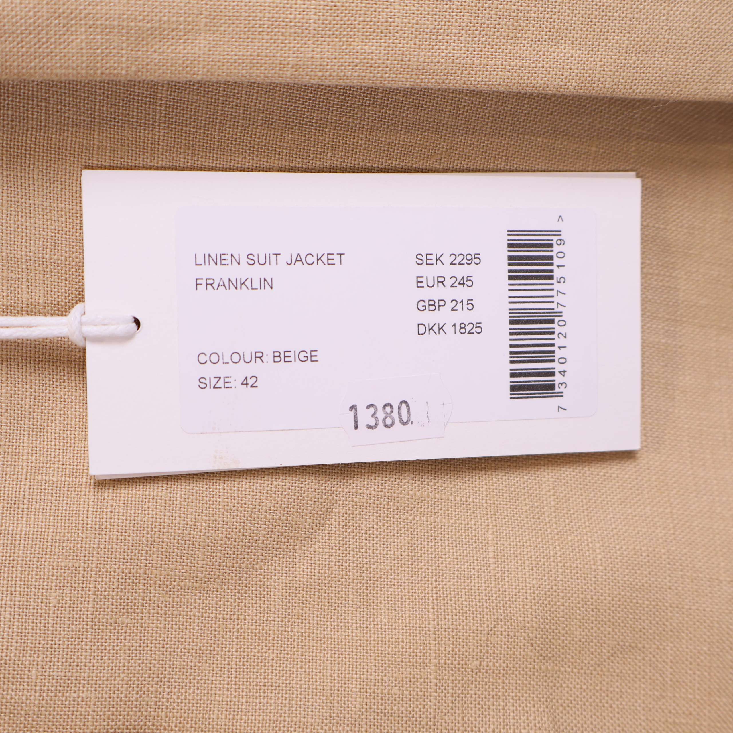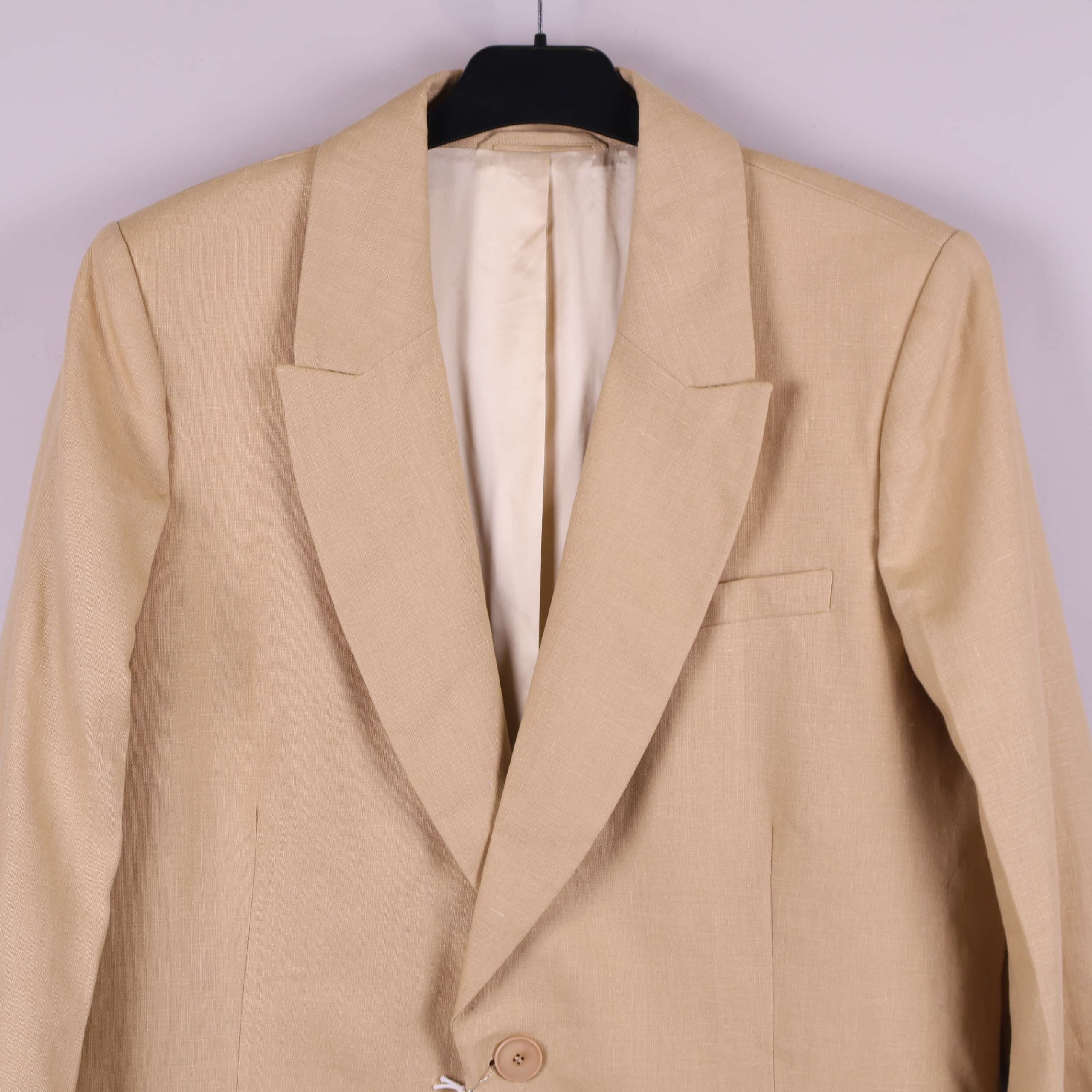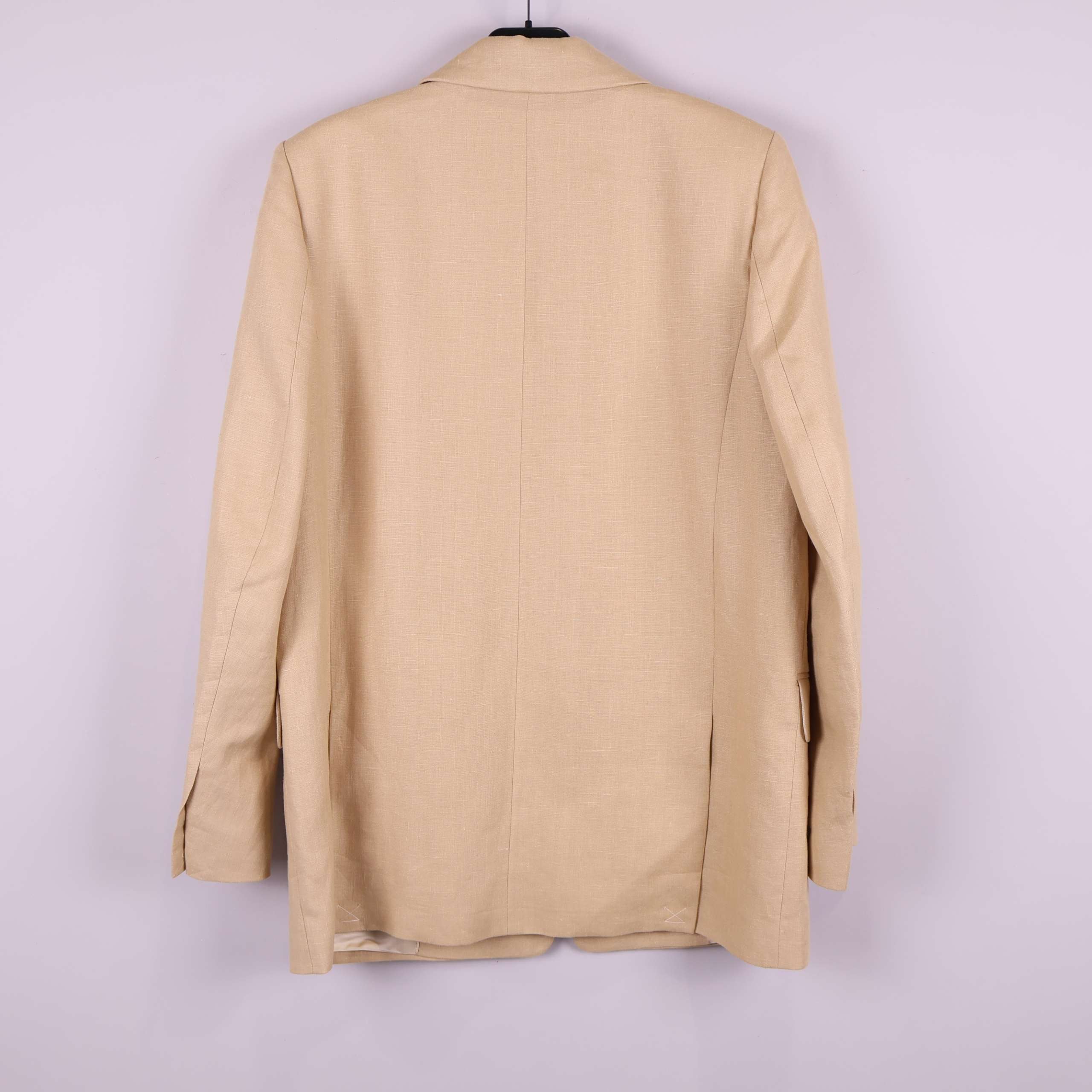Beigefärgad kavaj i linne med rak passform och klassiska detaljer. Utrustad med breda slag, framfickor med lock och bröstficka. Lätt textur för en luftig känsla och helfodrad insida som ger en elegant finish. Passar för en avslappnad men stilren look och ger ett tidlöst intryck med enkelknäppning framtill.