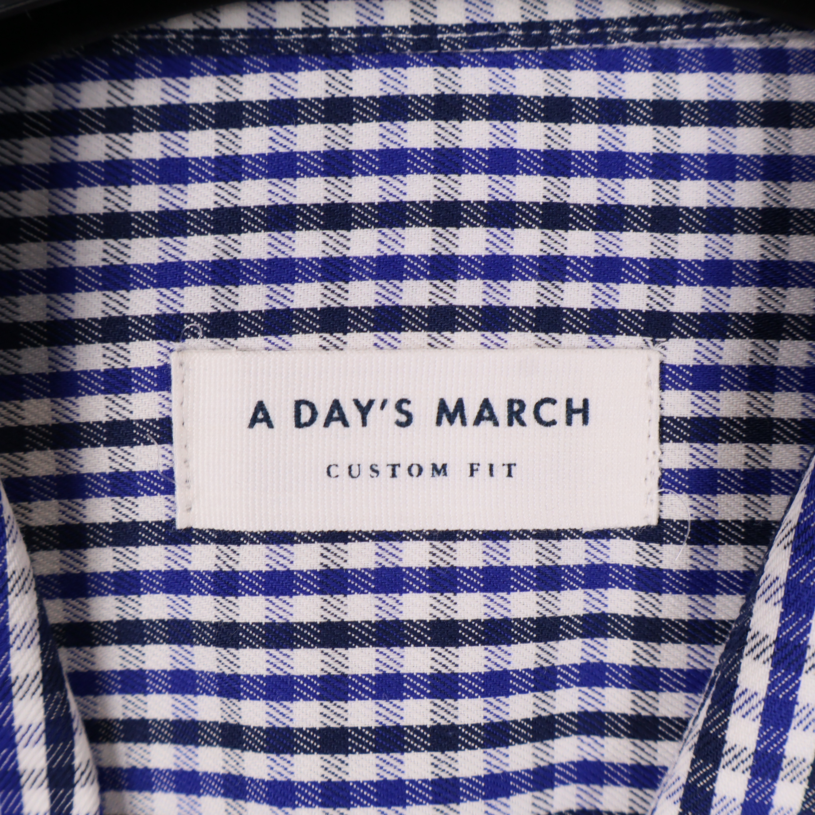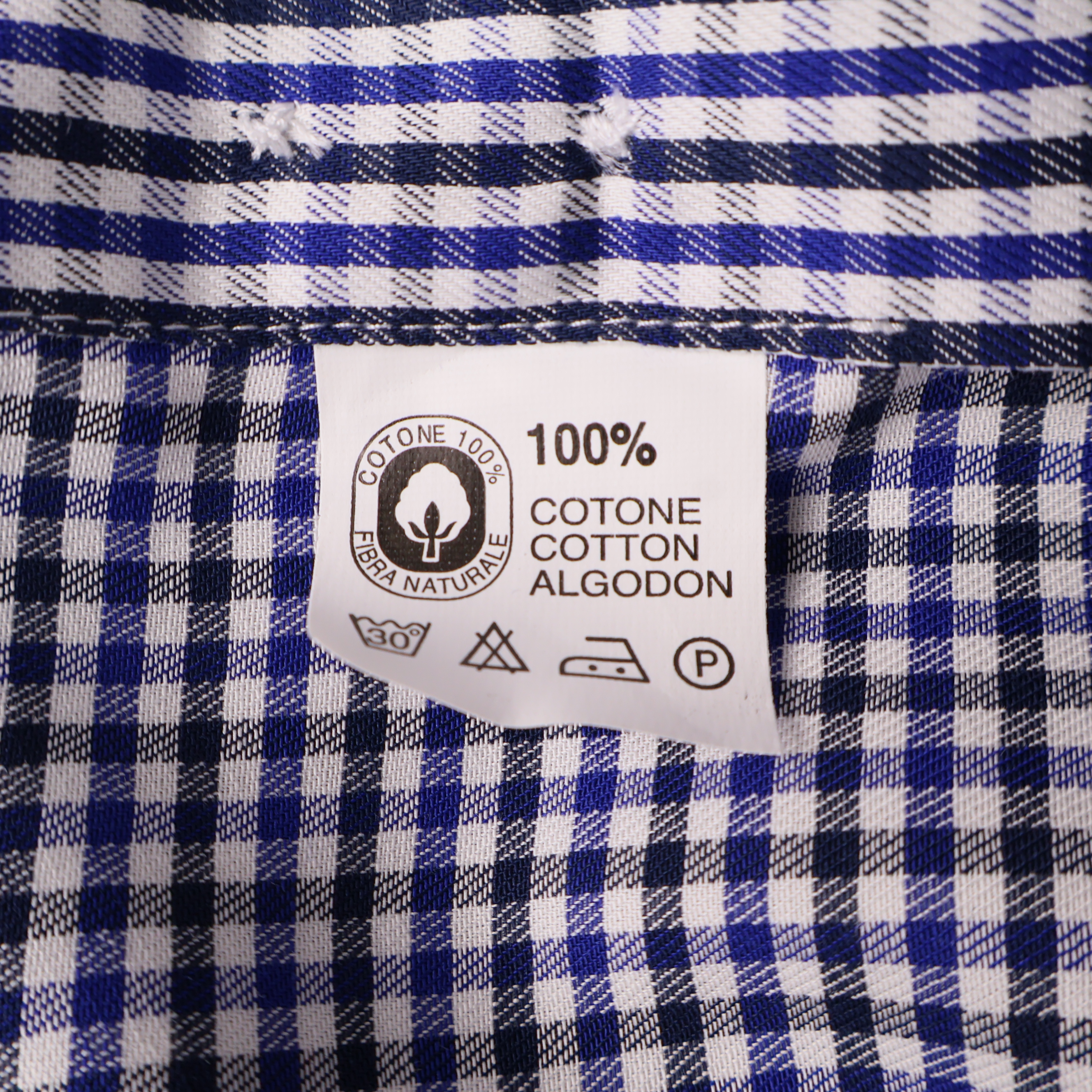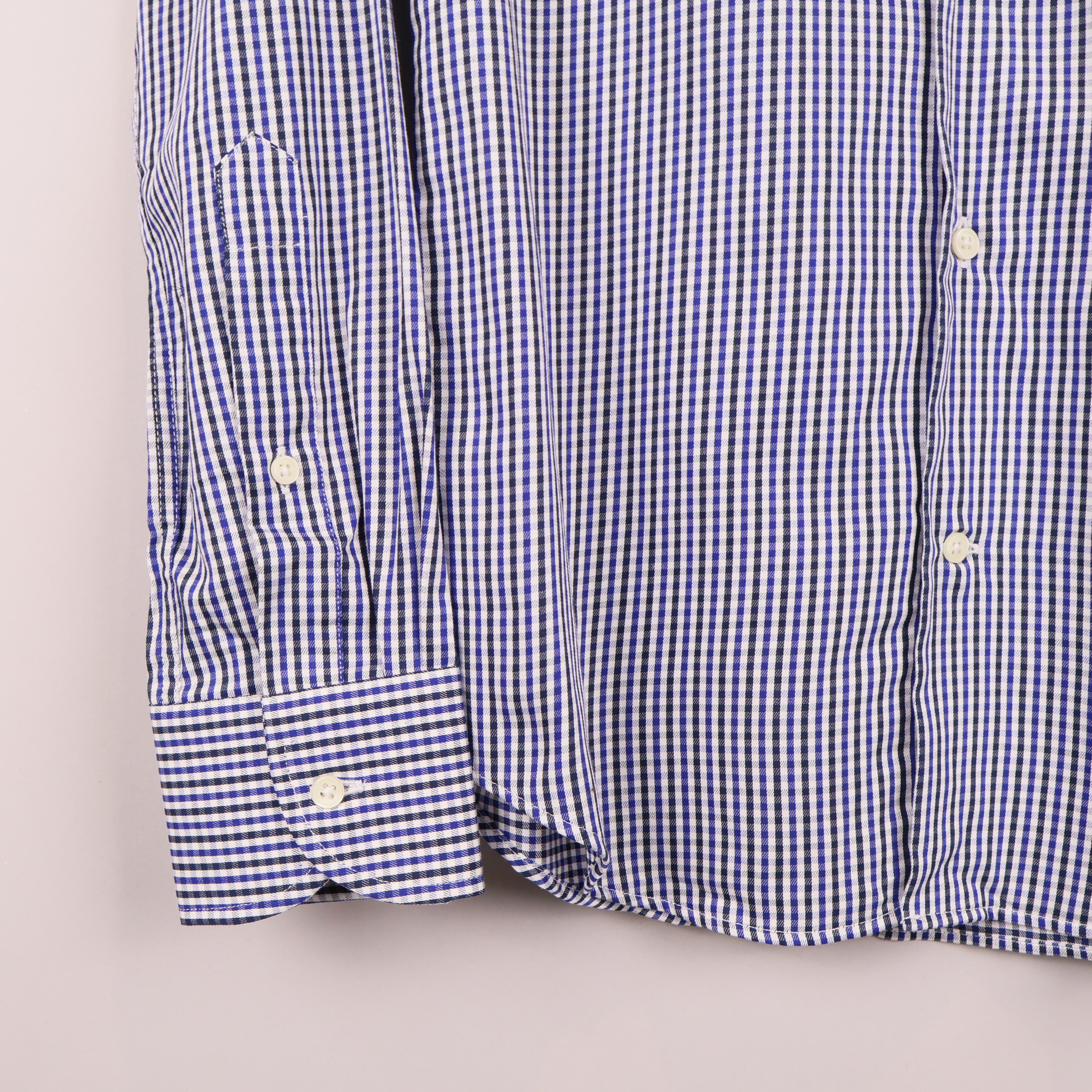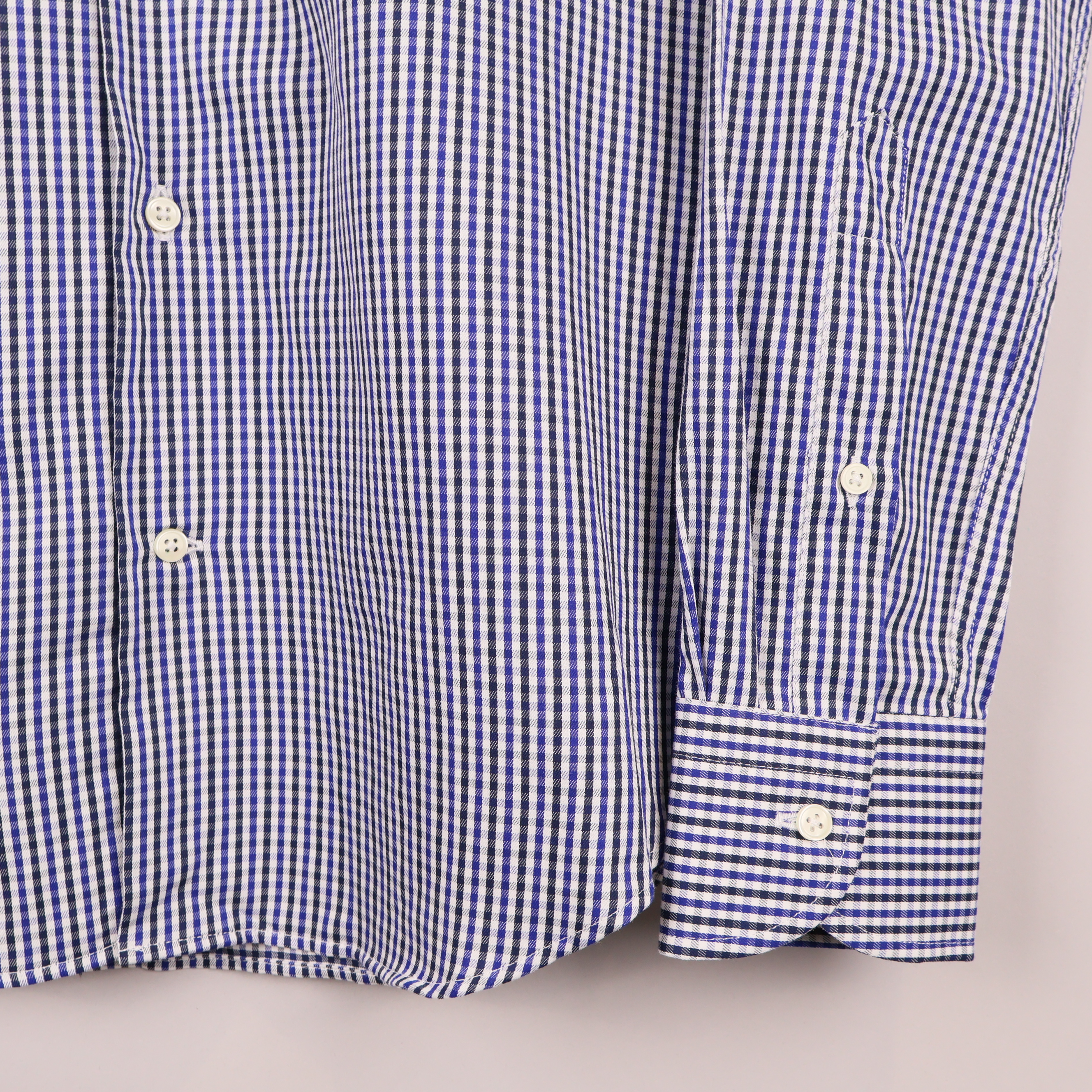 Klassisk skjorta med rutigt mönster i blått och vitt. Modellen har en stilren cutaway-krage och vita knappar som ger en tidlös känsla.