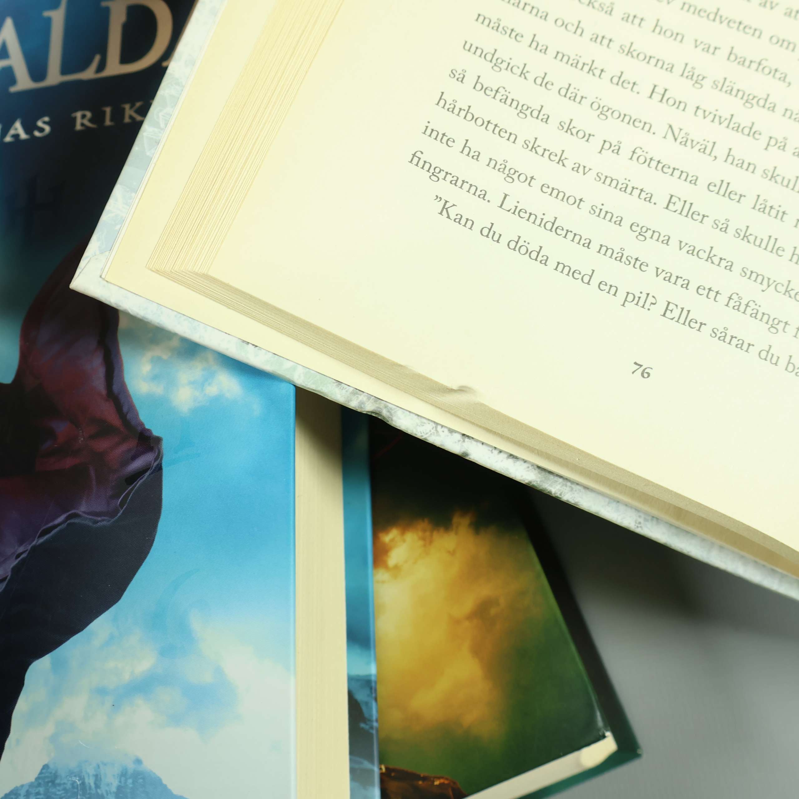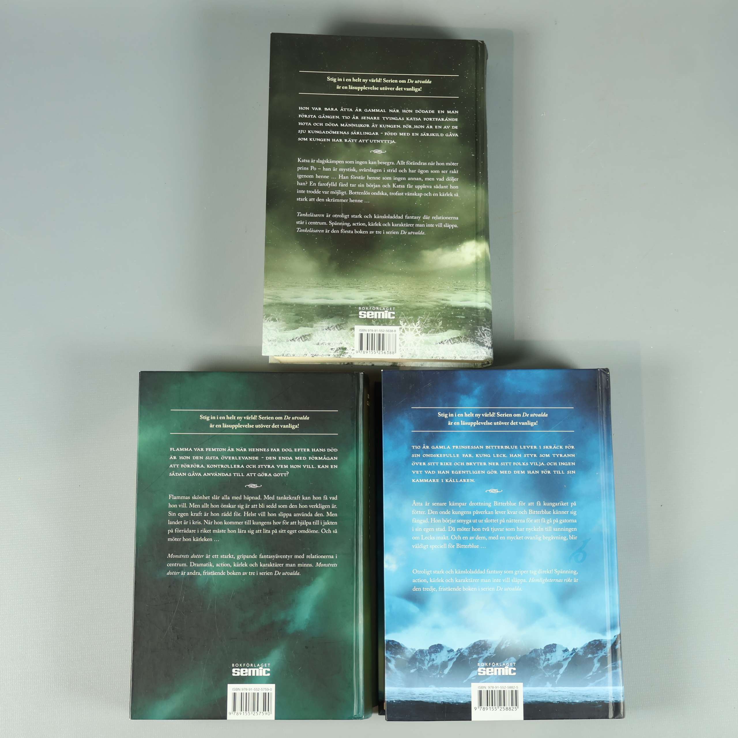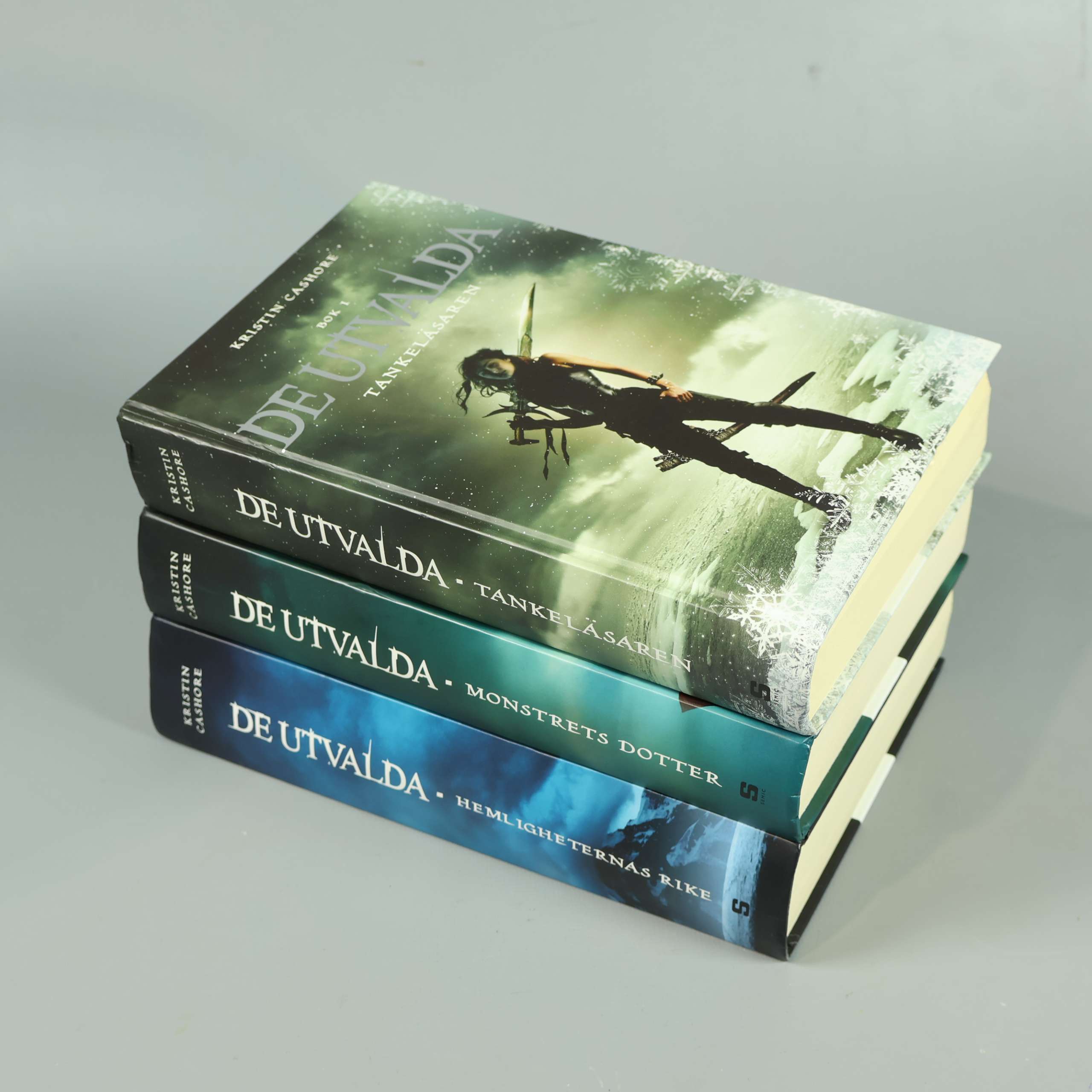 Upptäck en komplett trilogi med De utvalda av Kristin Cashore – tre böcker med starka färgillustrerade omslag och spännande detaljer. Böckerna har en samtida fantasykänsla och omslagen ger en episk, nästan filmisk vibe. Serien är på svenska och böckerna är i mycket fräscht skick med stadiga pärmar och tunna, smidiga sidor för en behaglig läsupplevelse.
