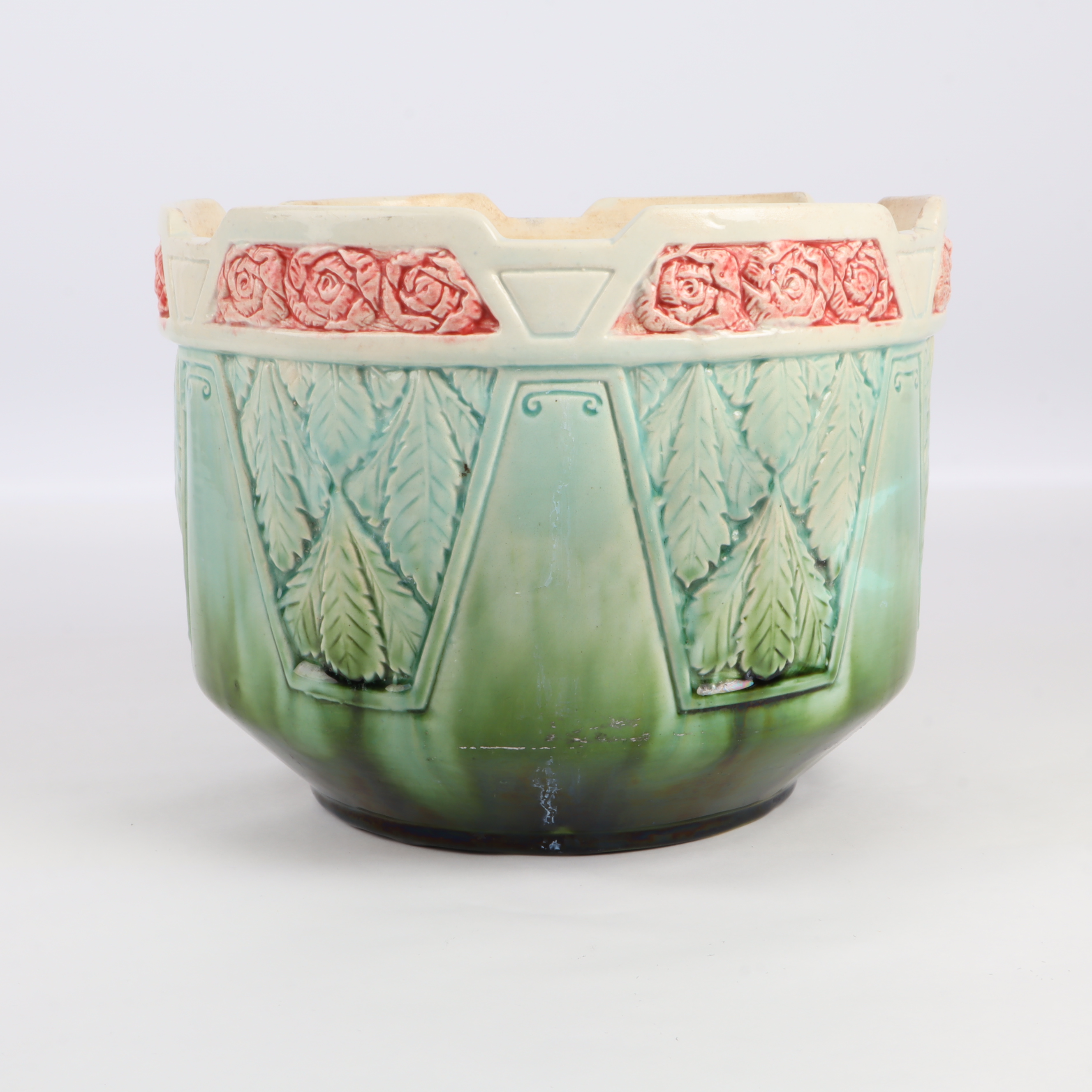 Denna kruka har ett vackert blommönster och mjuka gröna och rosa nyanser. Perfekt för att ge dina växter en charmig och stilfull inramning hemma. Krukan har en unik design med detaljrika mönster som ger en konstnärlig känsla.
