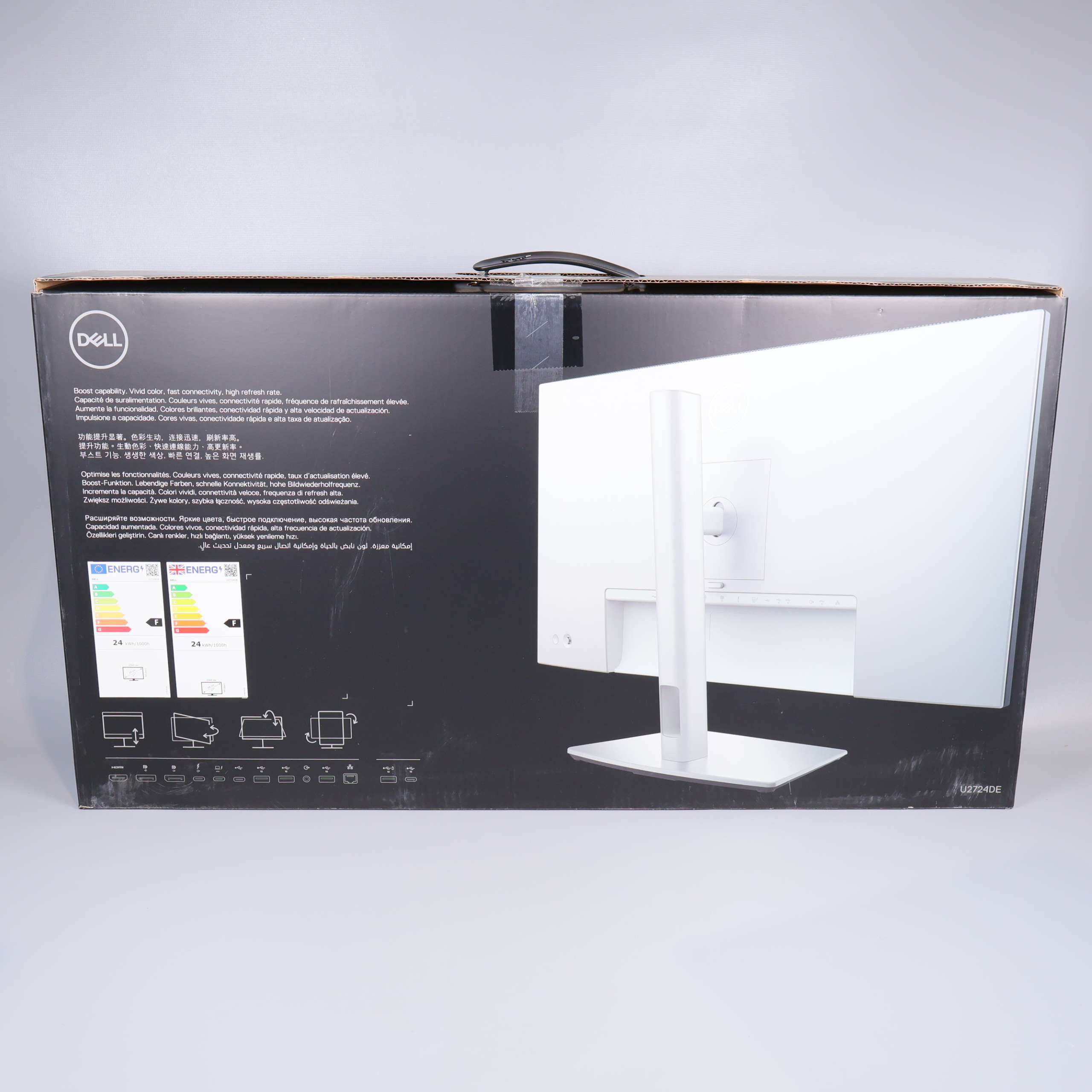 27'' datorskärm från Dell med Thunderbolt-hubb, med en maximal upplösning på 2560x1440 pixlar och en uppdateringsfrekvens på 120 hz. Skärmen kan justeras på fyra olika sätt. Förpackningen är öppnad men produkten är oanvänd. Strömkabel finns, men saknar tre andra kablar.