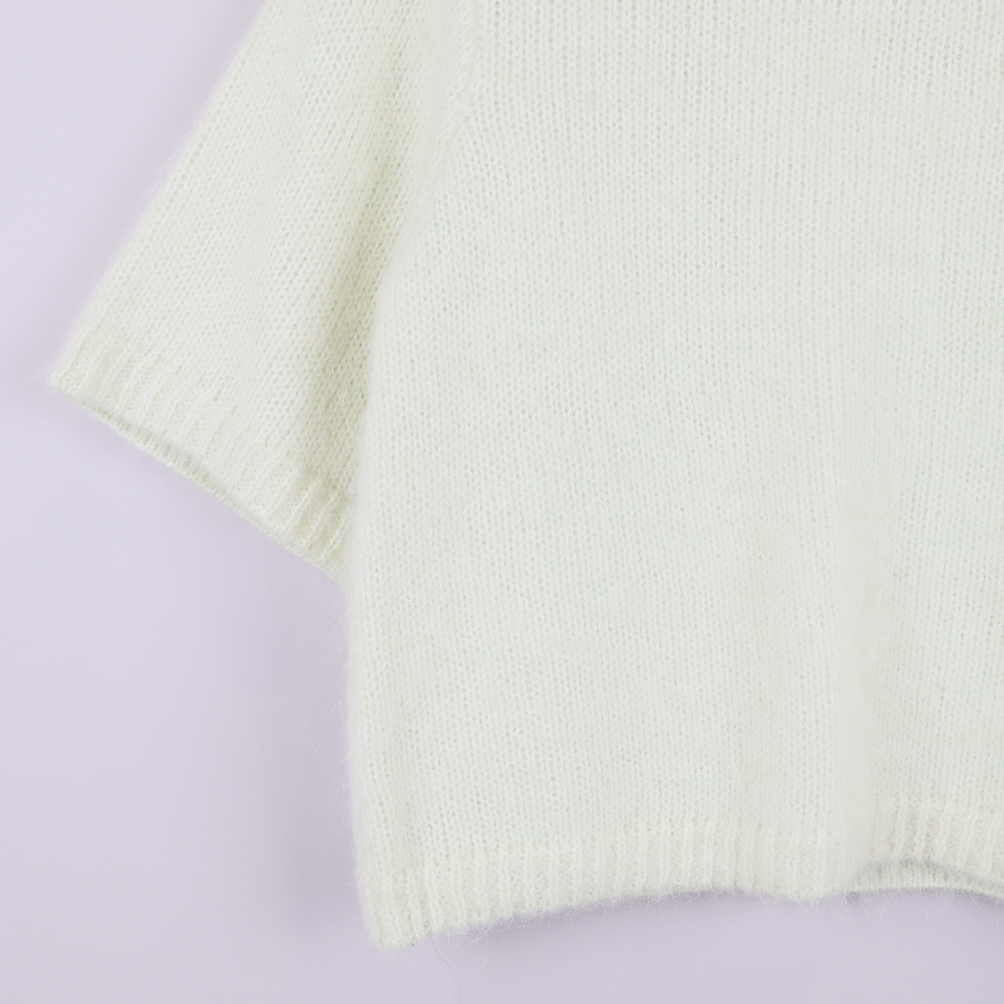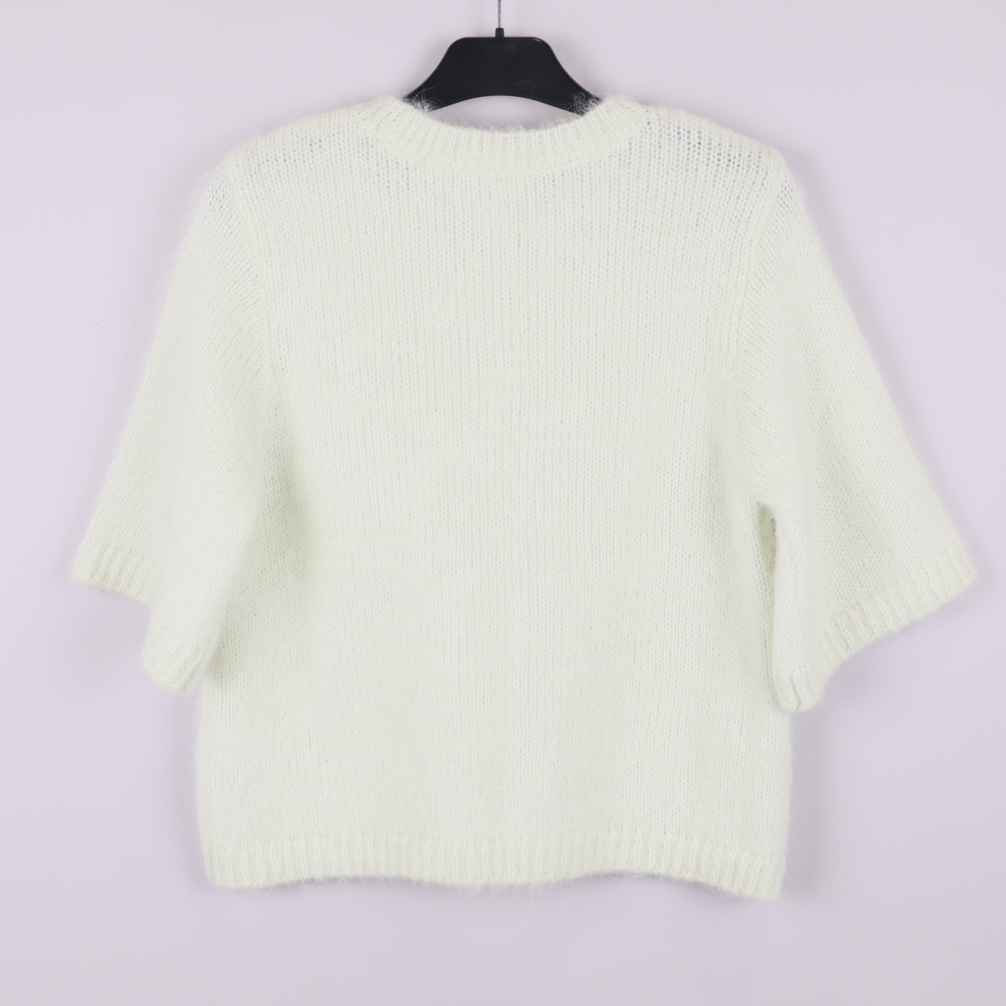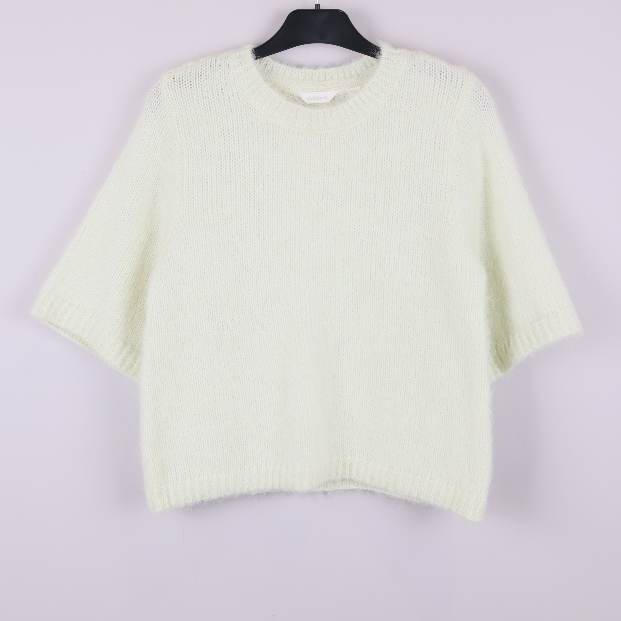 Ljus neongrön stickad tröja från Dobber med boxig och avslappnad siluett. Tröjan har korta ärmar och ribbade kanter vid hals, ärmslut och nederkant vilket ger en soft och cozy look.