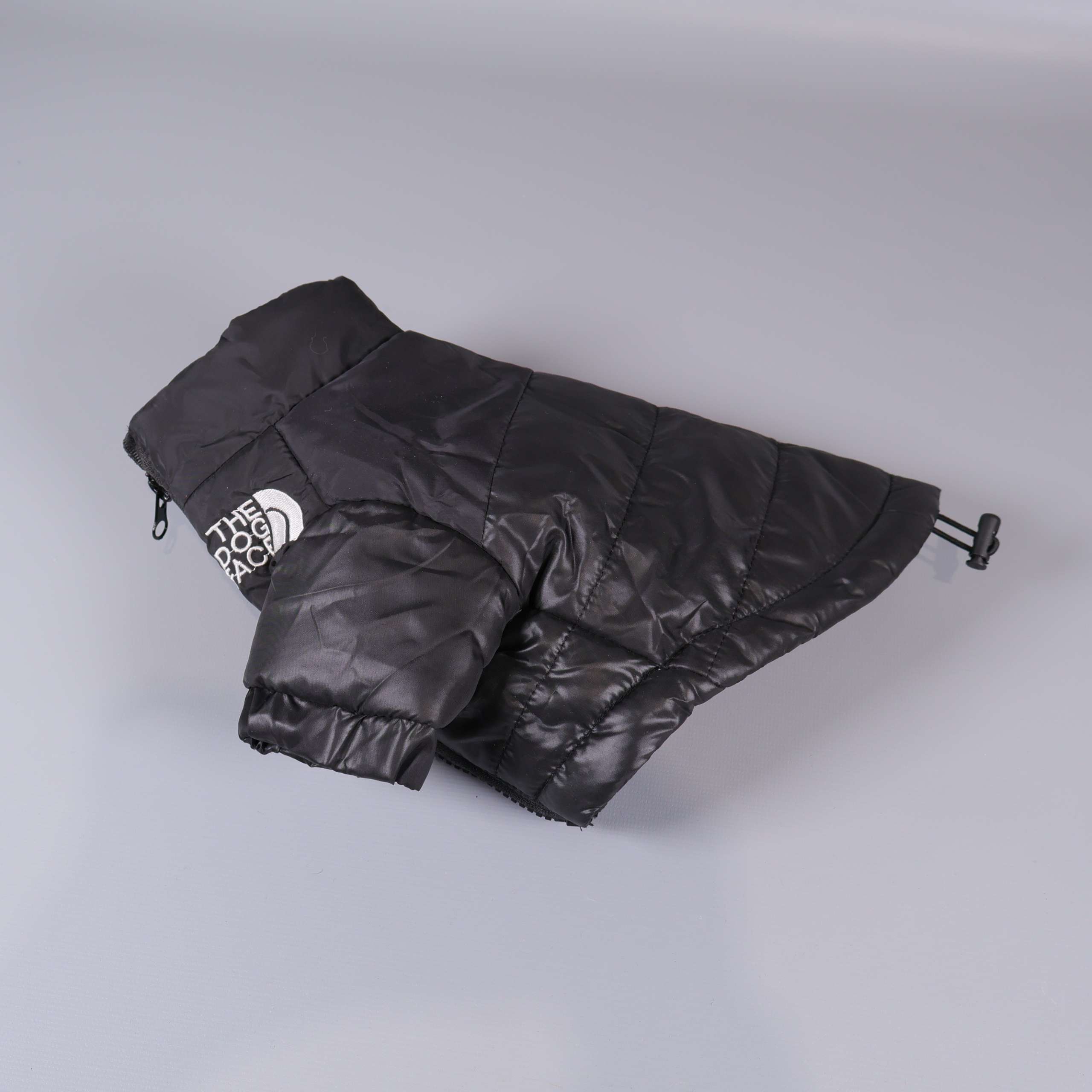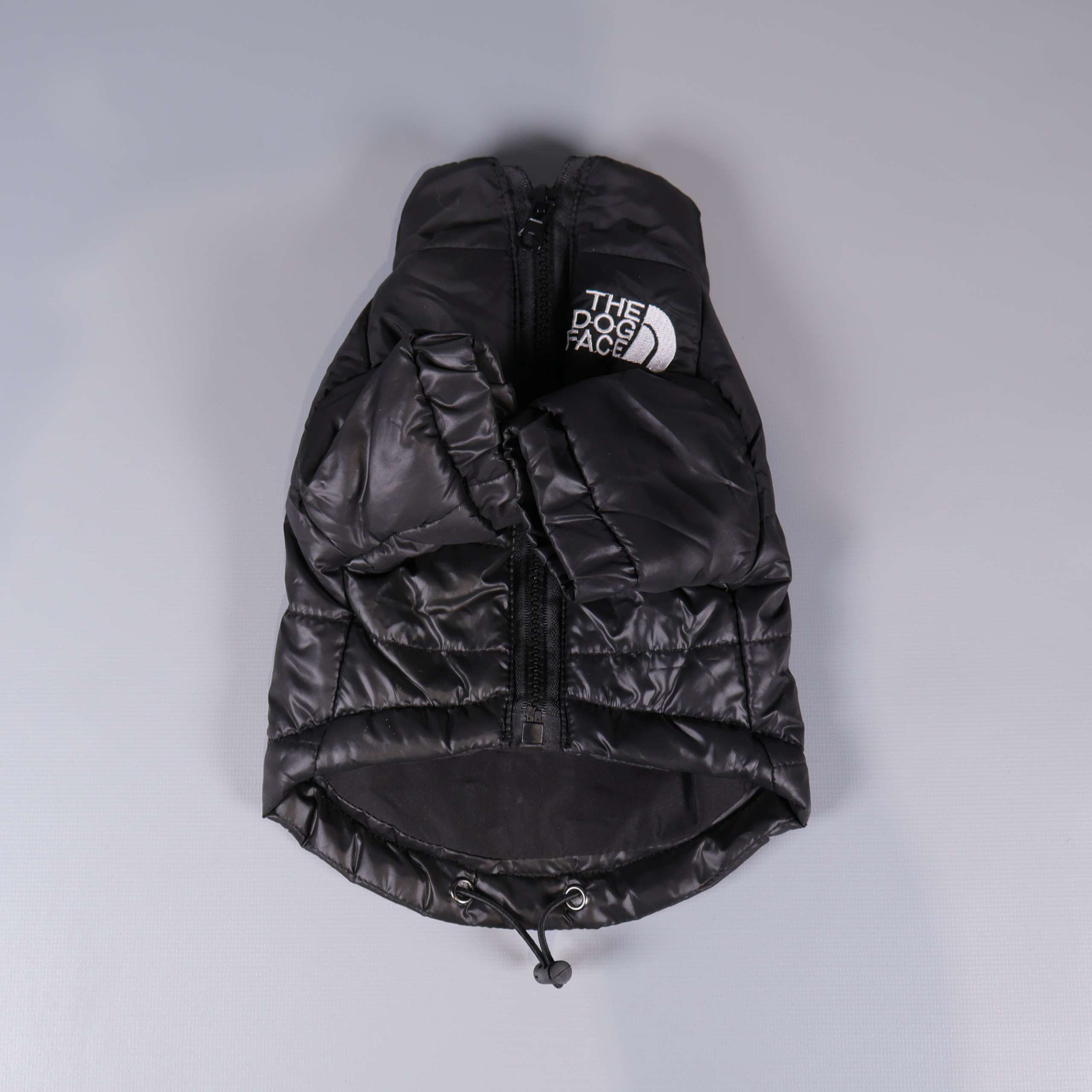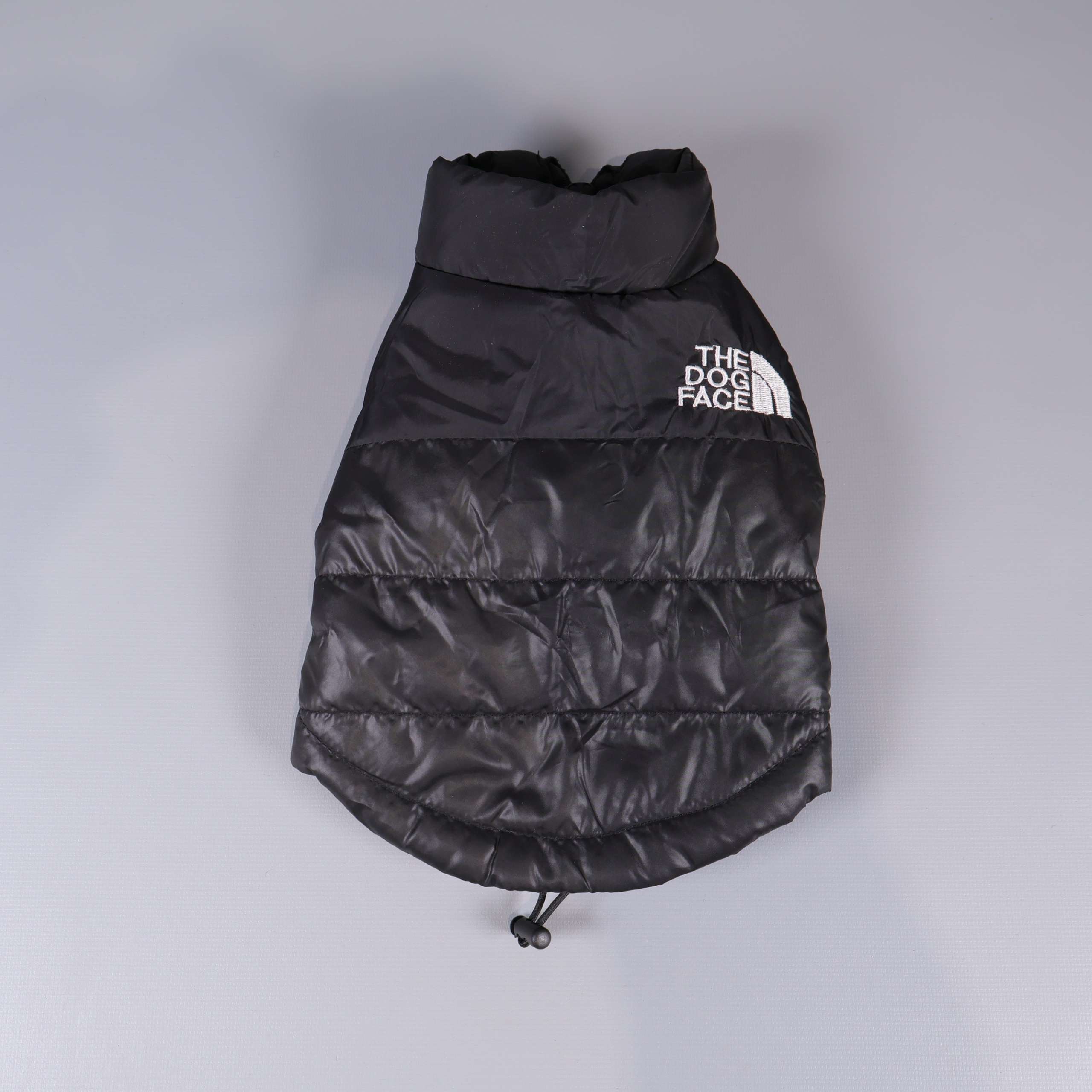 Svart quiltad hundjacka med dragkedja framtill och justerbar nederkant för flexibel passform. Den tydliga vita broderade loggan ”The Dog Face” ger jackan en lekfull och modern känsla. Lätt, mjuk och helt fodrad för extra komfort. Storlek XS – perfekt för mindre hundar.
