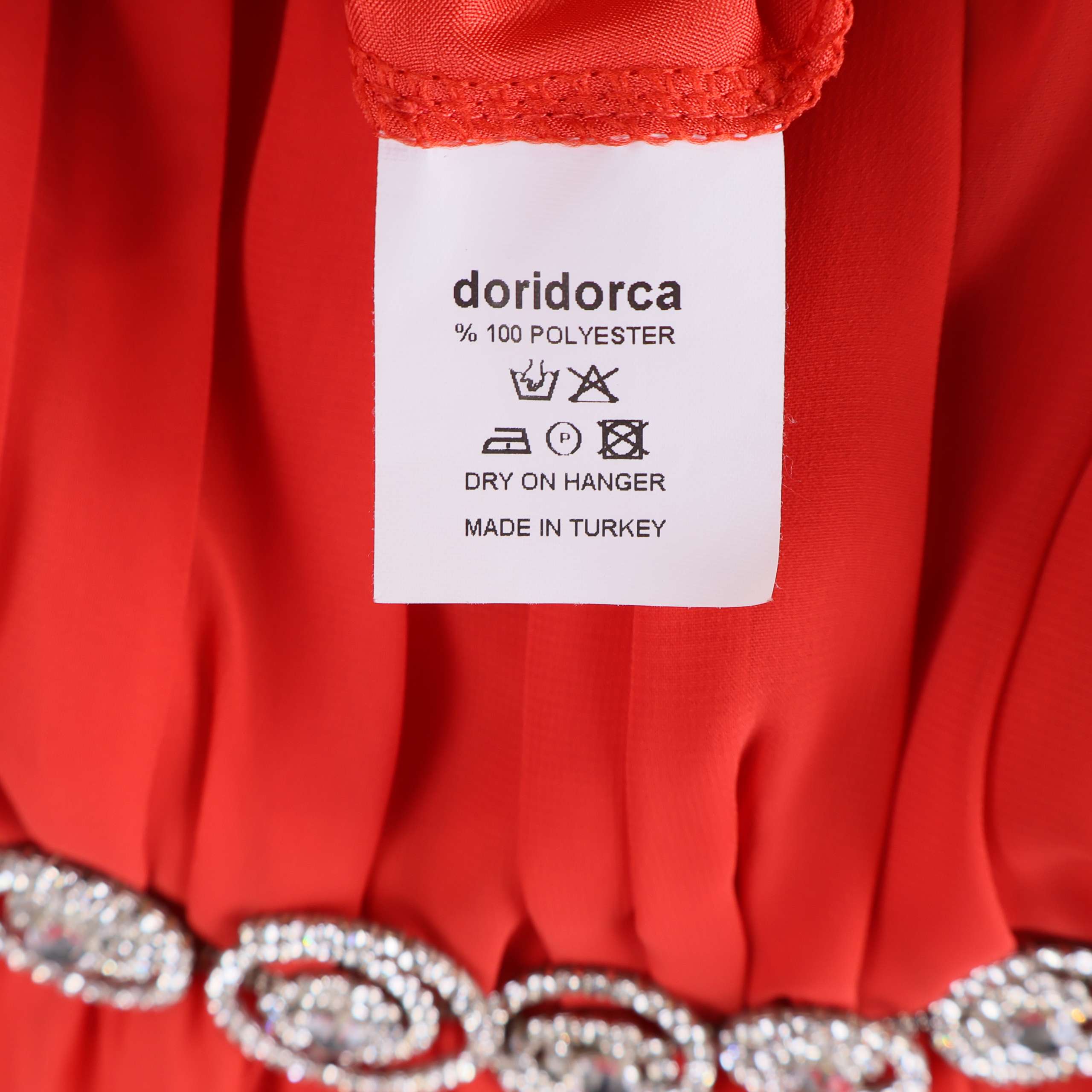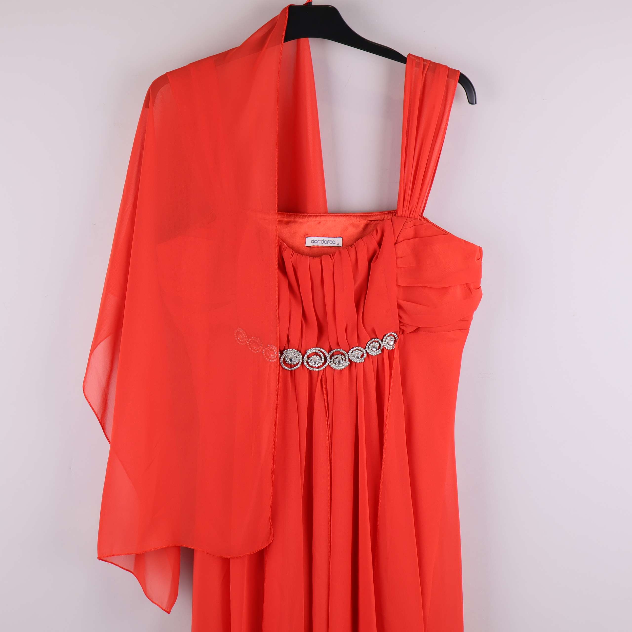 Doridorca röd klänning med strassdetalj och sjal
