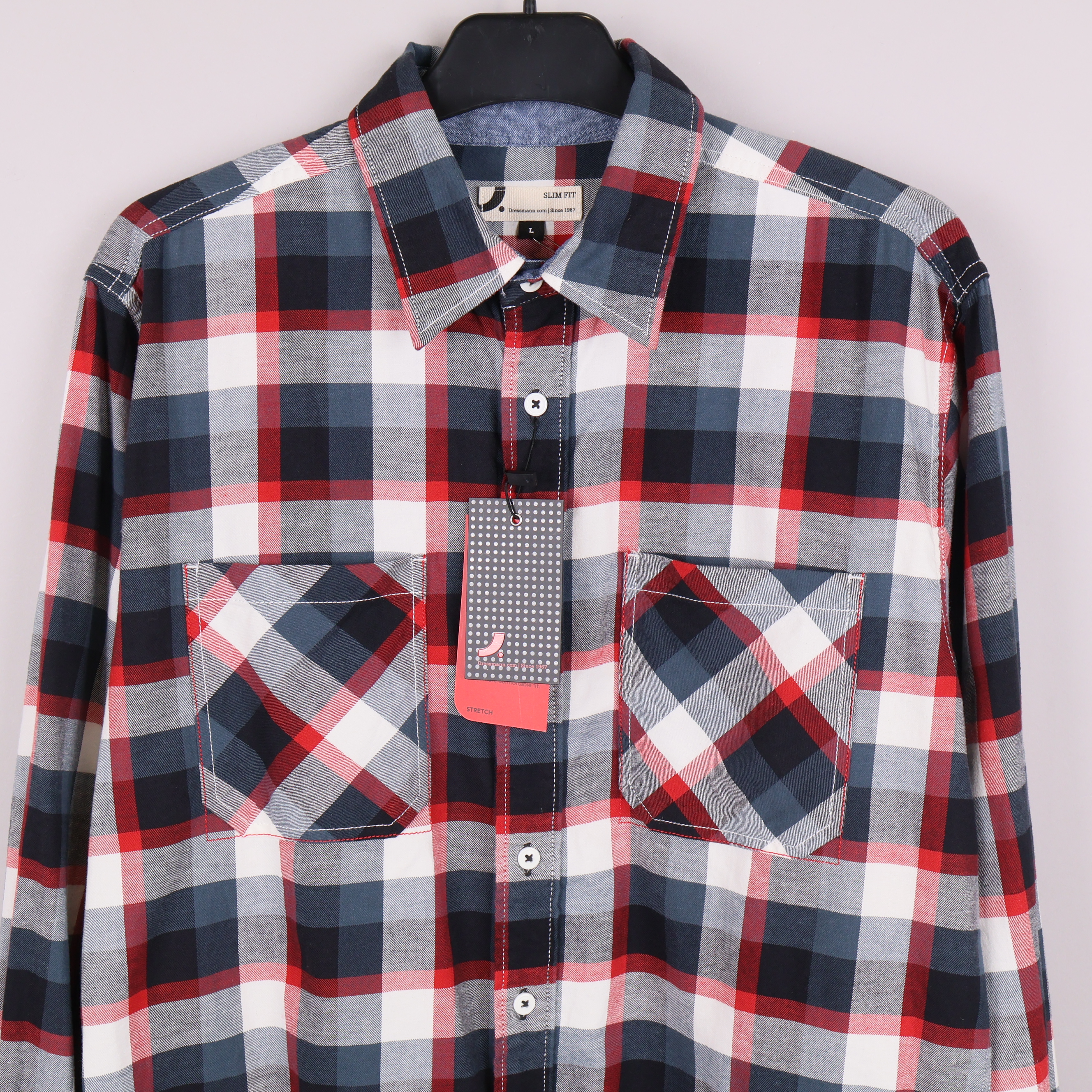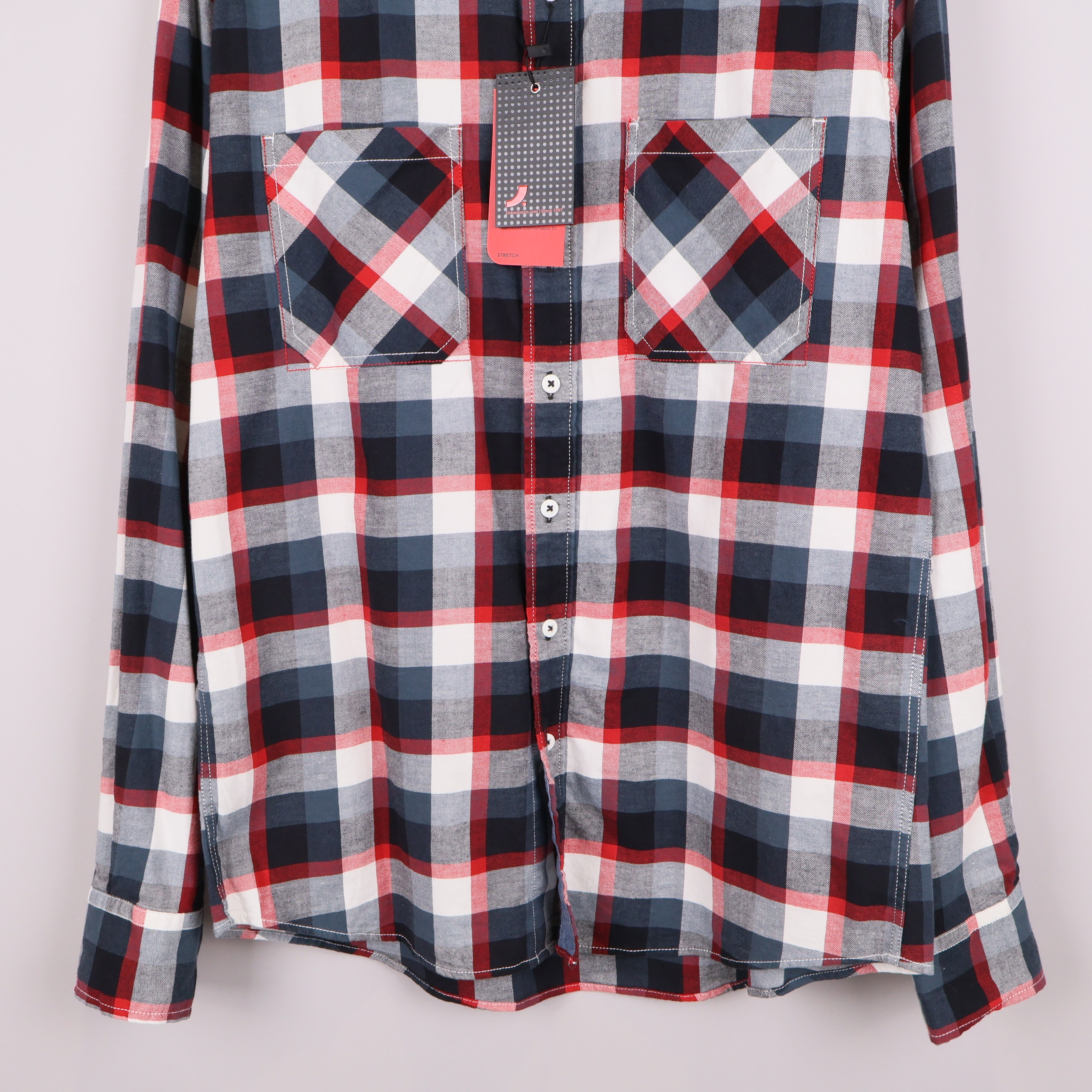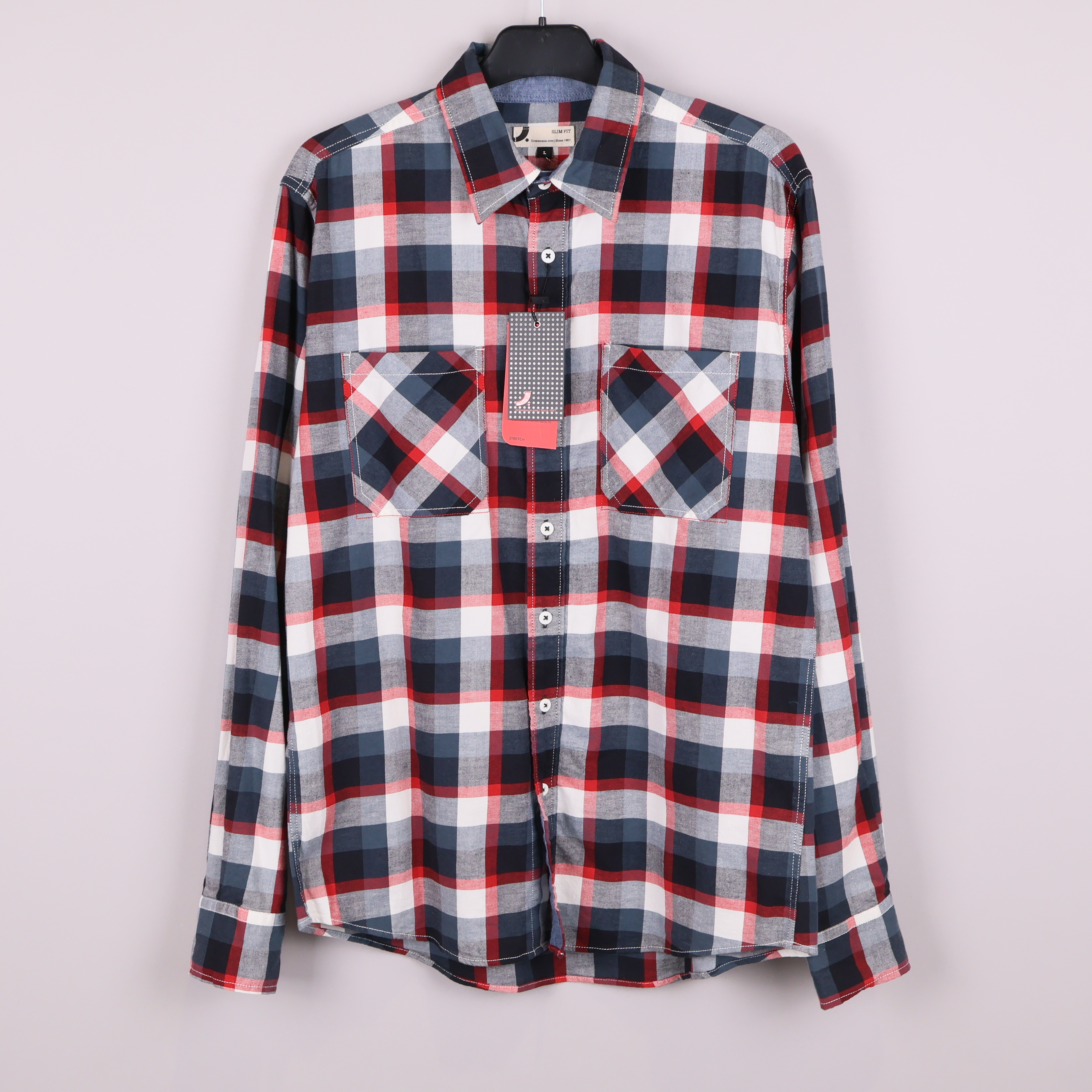 Stilren skjorta med klassiskt rutmönster i blått, rött, vitt och grått. Två bröstfickor framtill, raka ärmar med manschett och knappstängning hela vägen. Slim fit ger en modern och smidig siluett. Tyg i bomull och lite lycra för stretch och bekväm känsla.