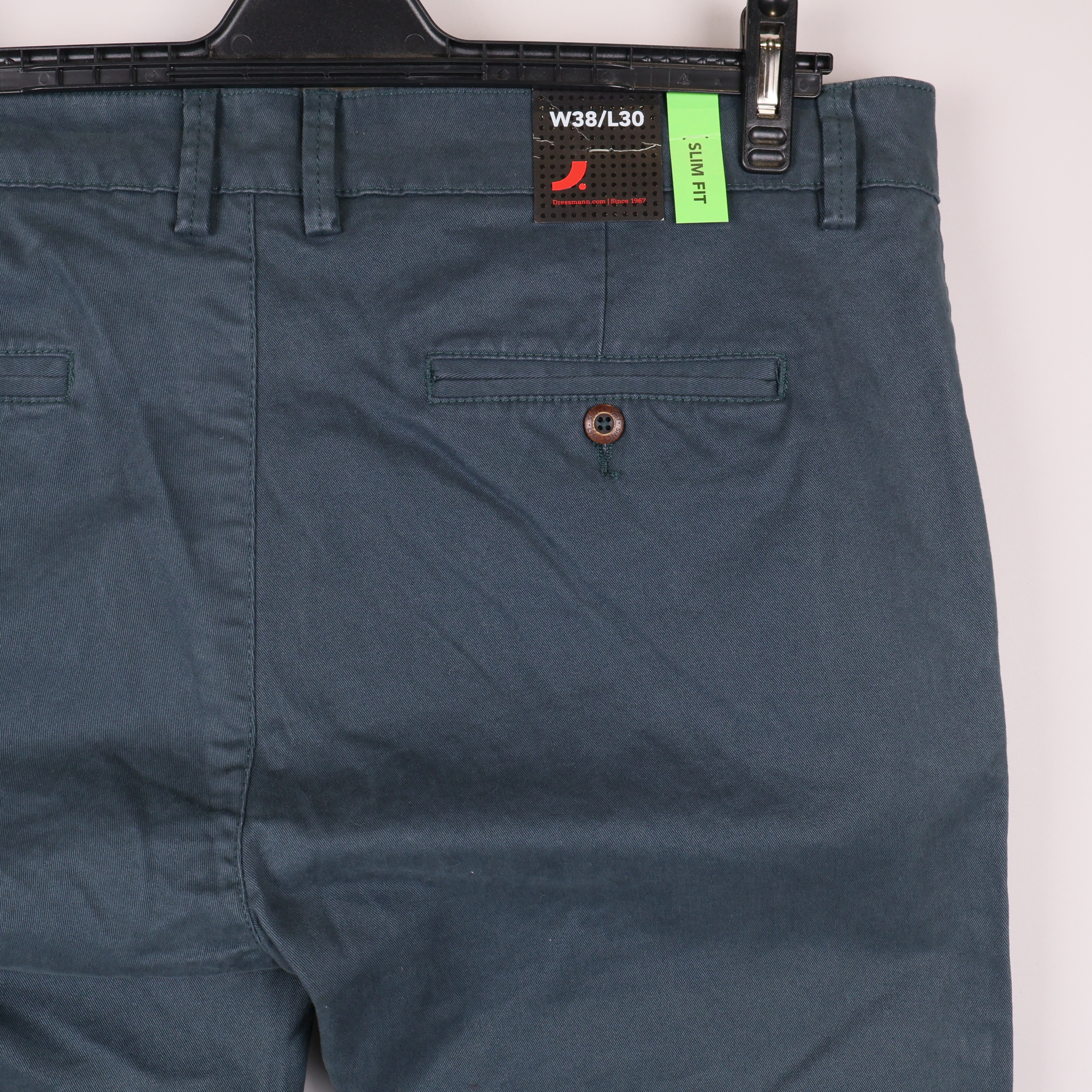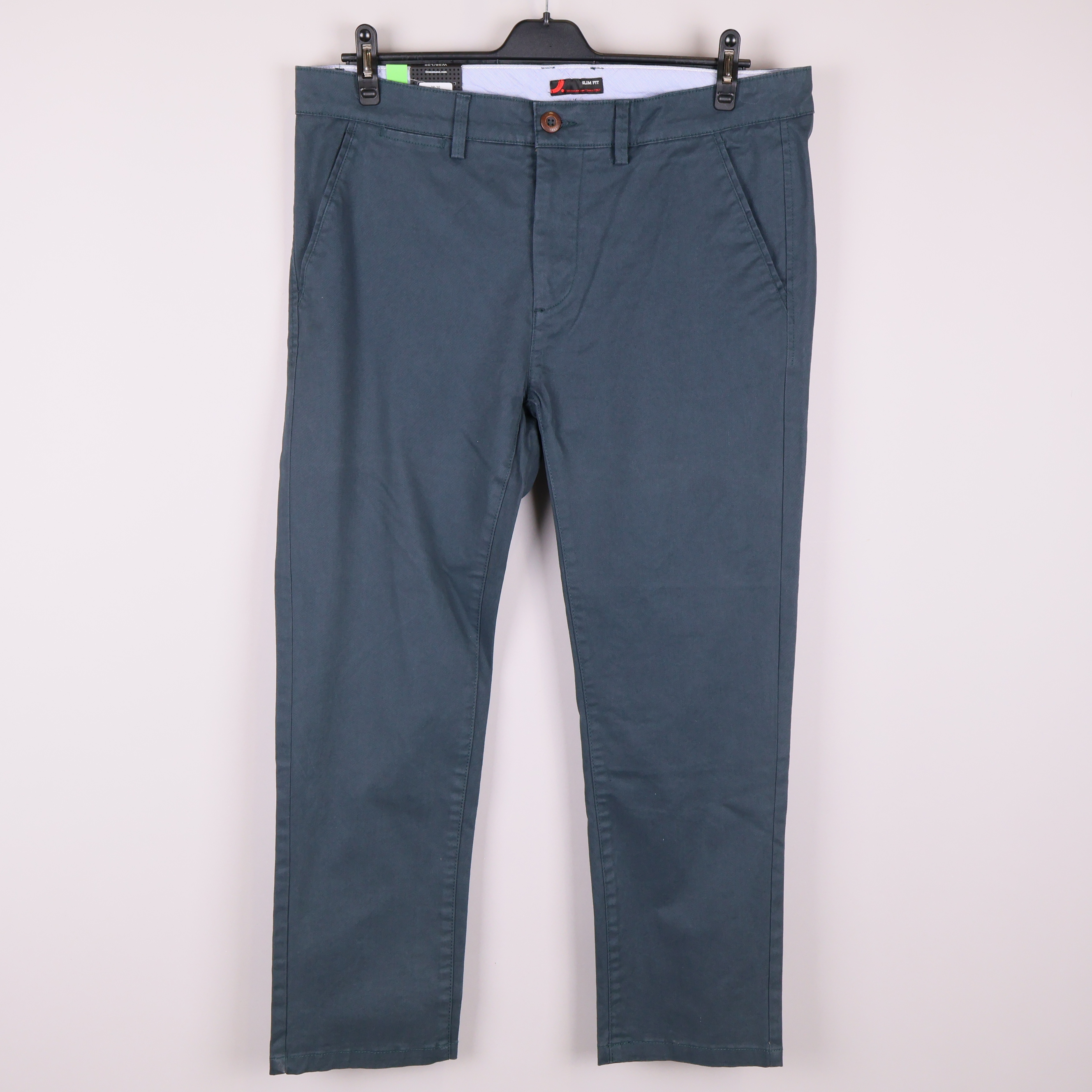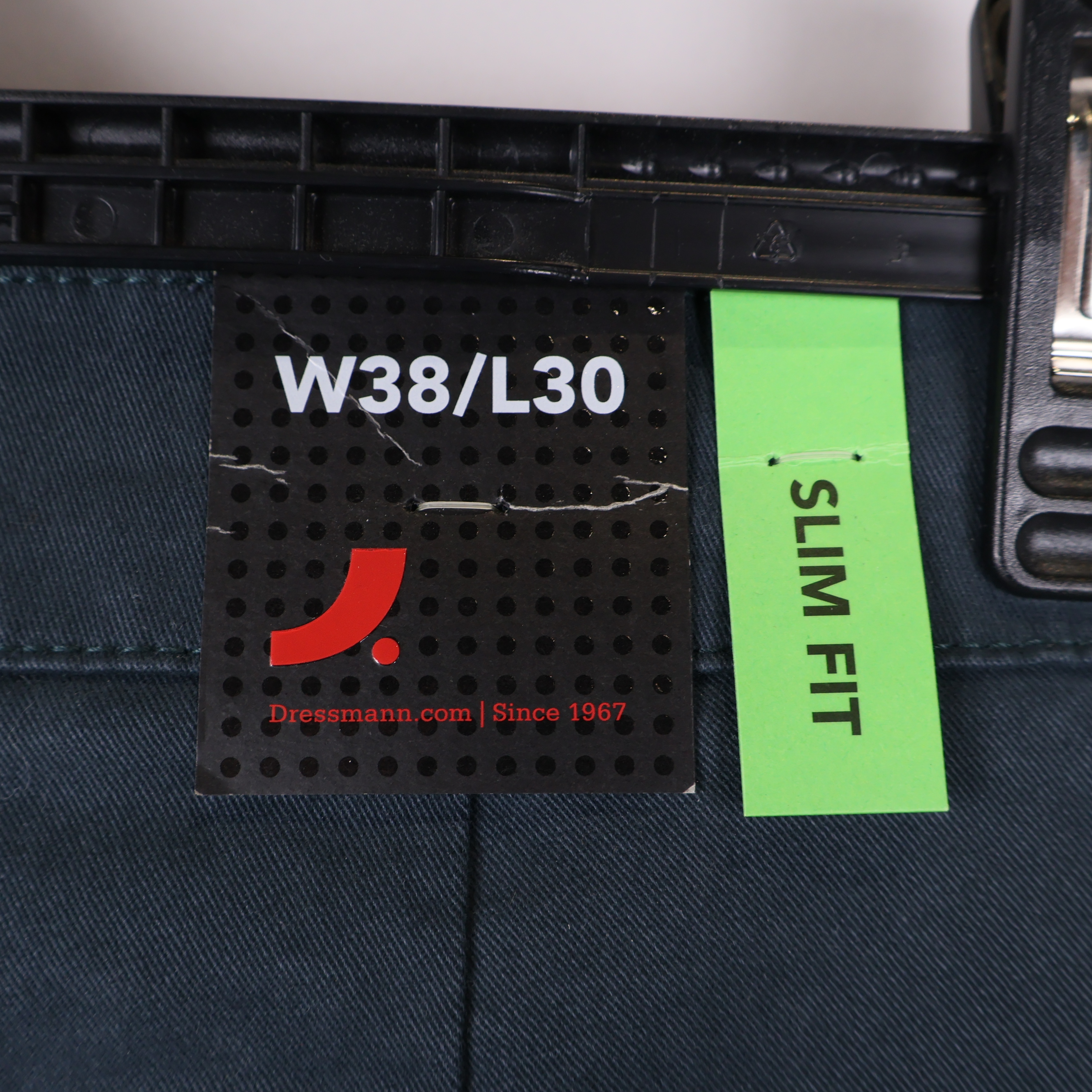 Stilren slim fit-byxa från Dressmann i en djup blå nyans. Modellen har klassiska fickor fram och bak, bälteshällor samt knäppning med knapp och dragkedja.