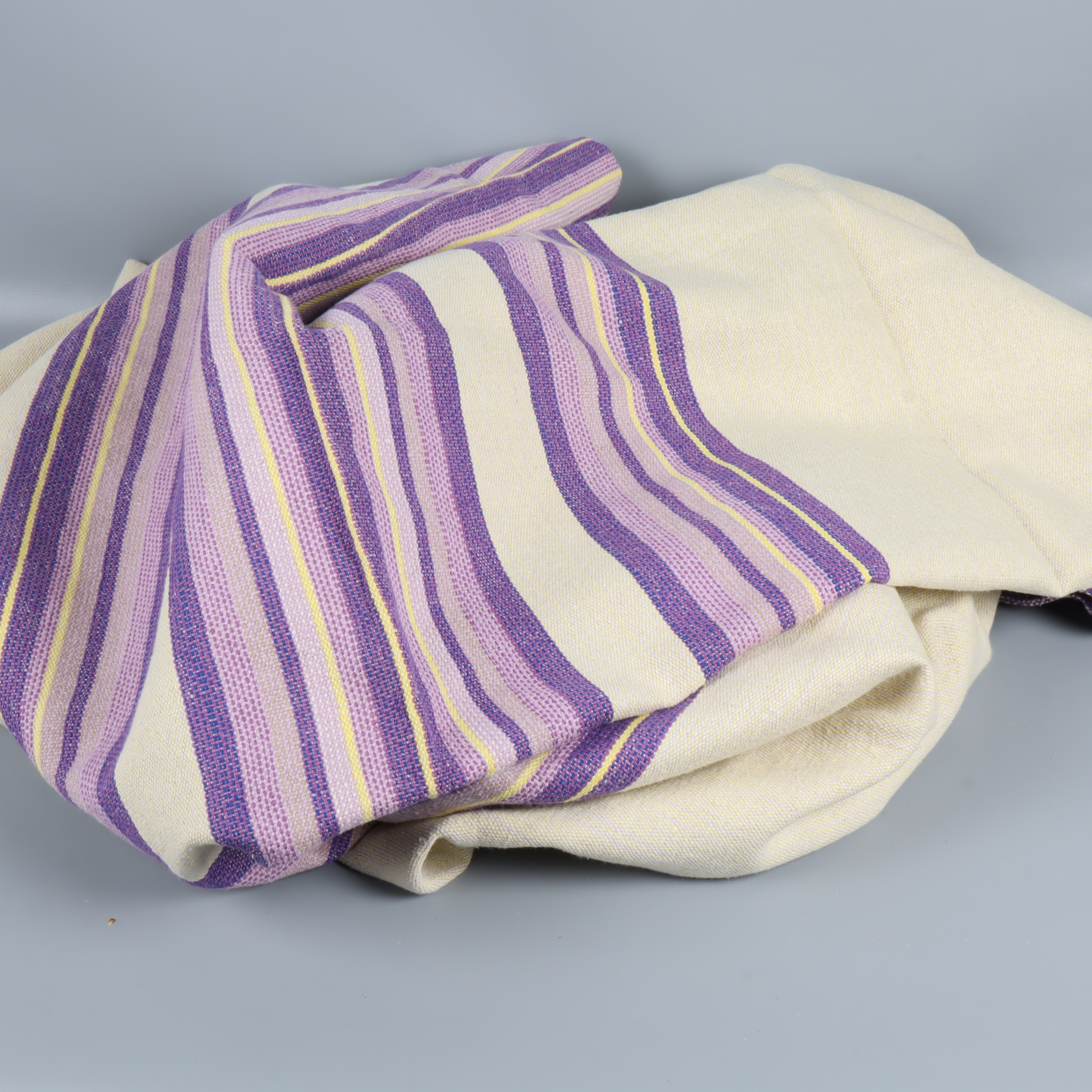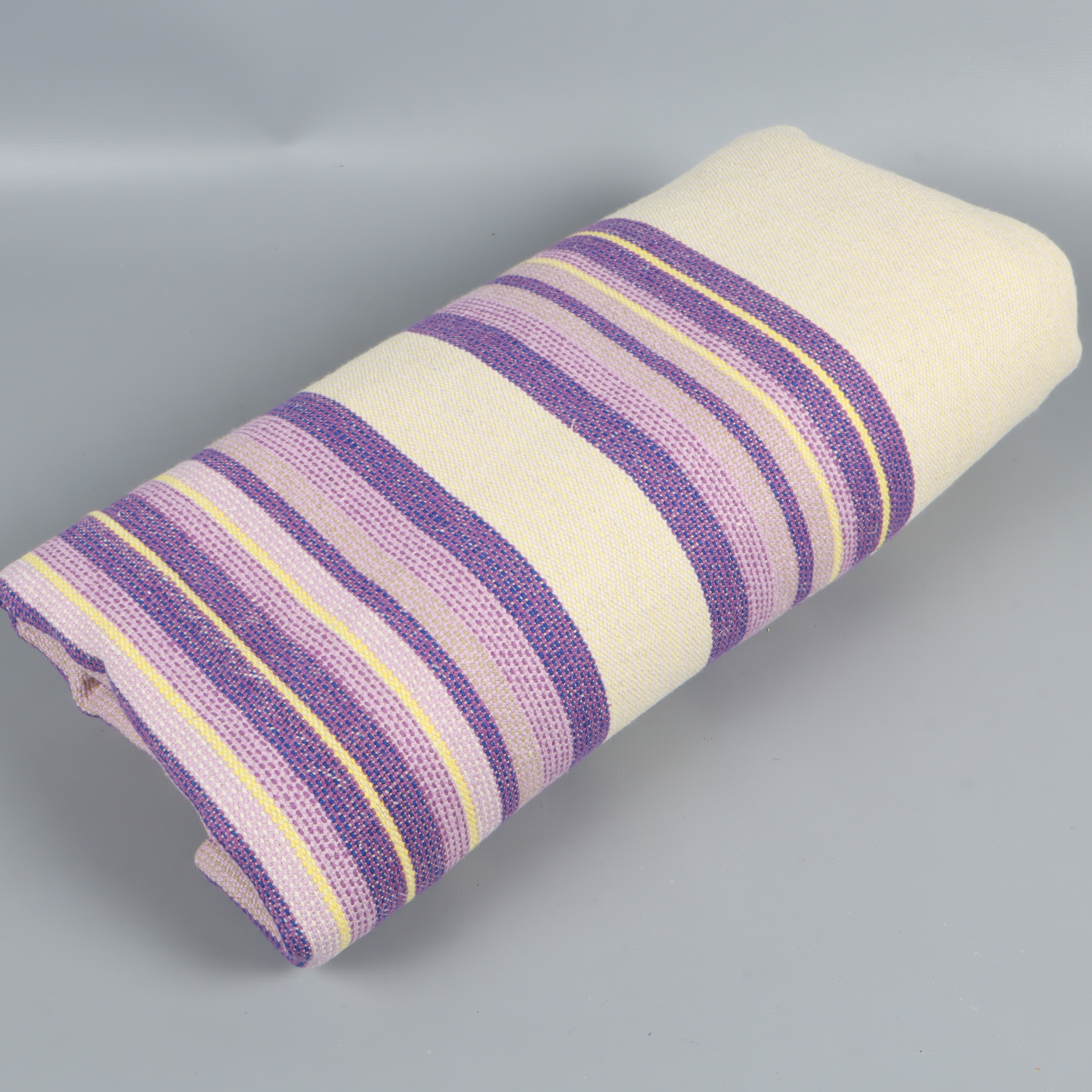 Vävd duk med klassiska lila och ljusa ränder för en mysig och ombonad känsla. Mjuk textil som känns modern men ändå tidlös, perfekt att kombinera med olika inredningsdetaljer och ger bordet en personlig touch.