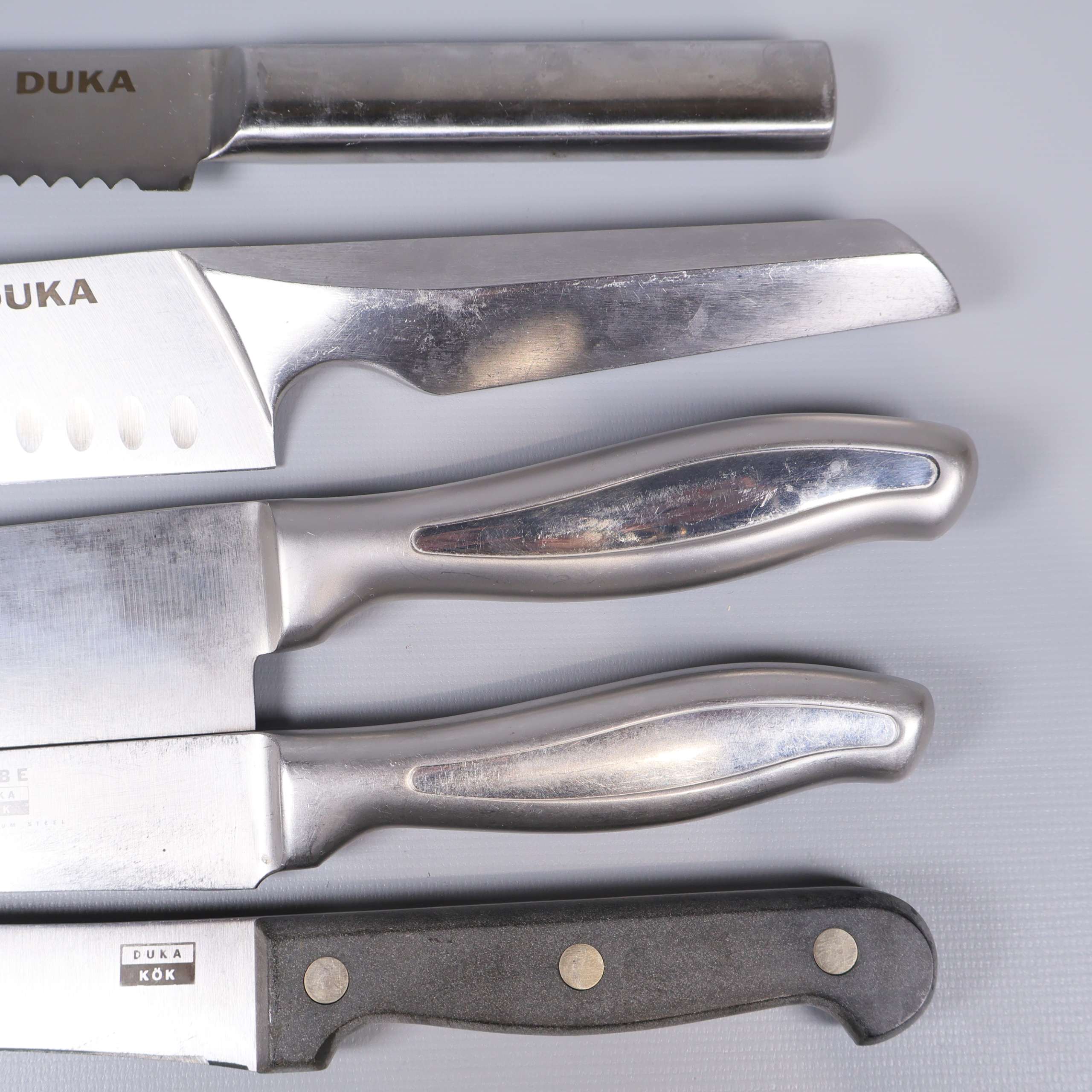 Duka Duka - Knivar olika modeller 5st 249 kr Product variation Antal st Beskrivning Setet består av fem olika köksknivar med stilrena och funktionella blad, perfekt för olika köksuppgifter. Visa all beskrivning Skick Gott skick Produkten har använts men är av fin kvalitet, det kan förekomma mindre förslitningar. Läs mer om hur vi bedömer Dimensions Bladlängd: 15-20 cm Varumärke Duka Produkten är unik och finns enbart som 1 st i lager. Fri frakt på alla köp över 990 kr. 14 dagars ångerrät.