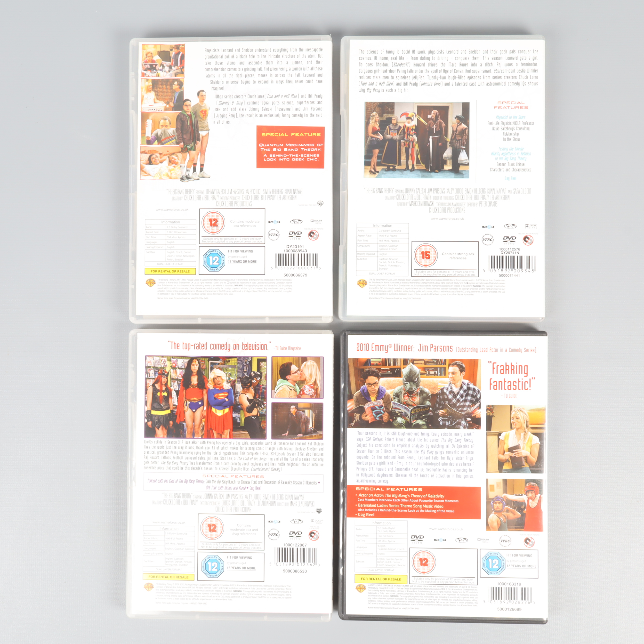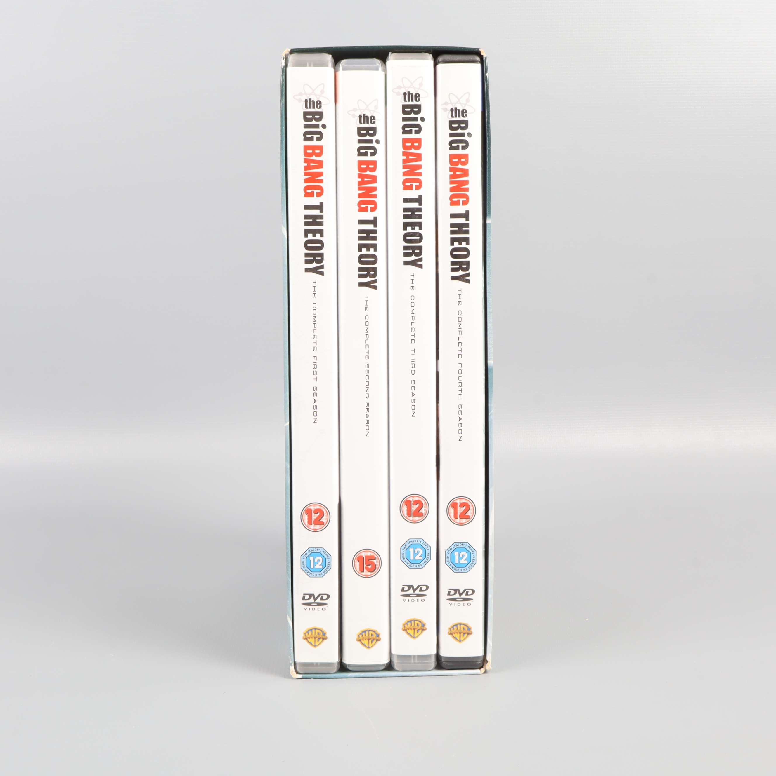 Upptäck hela första till fjärde säsongen av den kultförklarade komediserien The Big Bang Theory, samlade i denna praktiska och snygga DVD-box. Boxen innehåller fyra separata DVD-fodral med klassiska omslag från varje säsong och bjuder på massor av skratt tillsammans med de älskade karaktärerna Leonard, Sheldon, Penny, Howard och Raj. Serien handlar om vännernas nördiga vardag, oväntade vänskap och charmiga missförstånd som bjuder på humor och värme. Detta set passar perfekt för seriemaraton, filmkvällar eller som en present till fans av smart och underhållande sitcom. DVD-boxen har tydliga åldersmärkningar och varje säsong är smidigt placerad i boxen, vilket gör det enkelt att förvara och använda. All text på omslaget och fodralen är tydlig, och boxen är i mycket gott skick. Ett suveränt val för dig som vill utöka din samling med fyra hela säsonger av en banbrytande och älskad tv-serie.