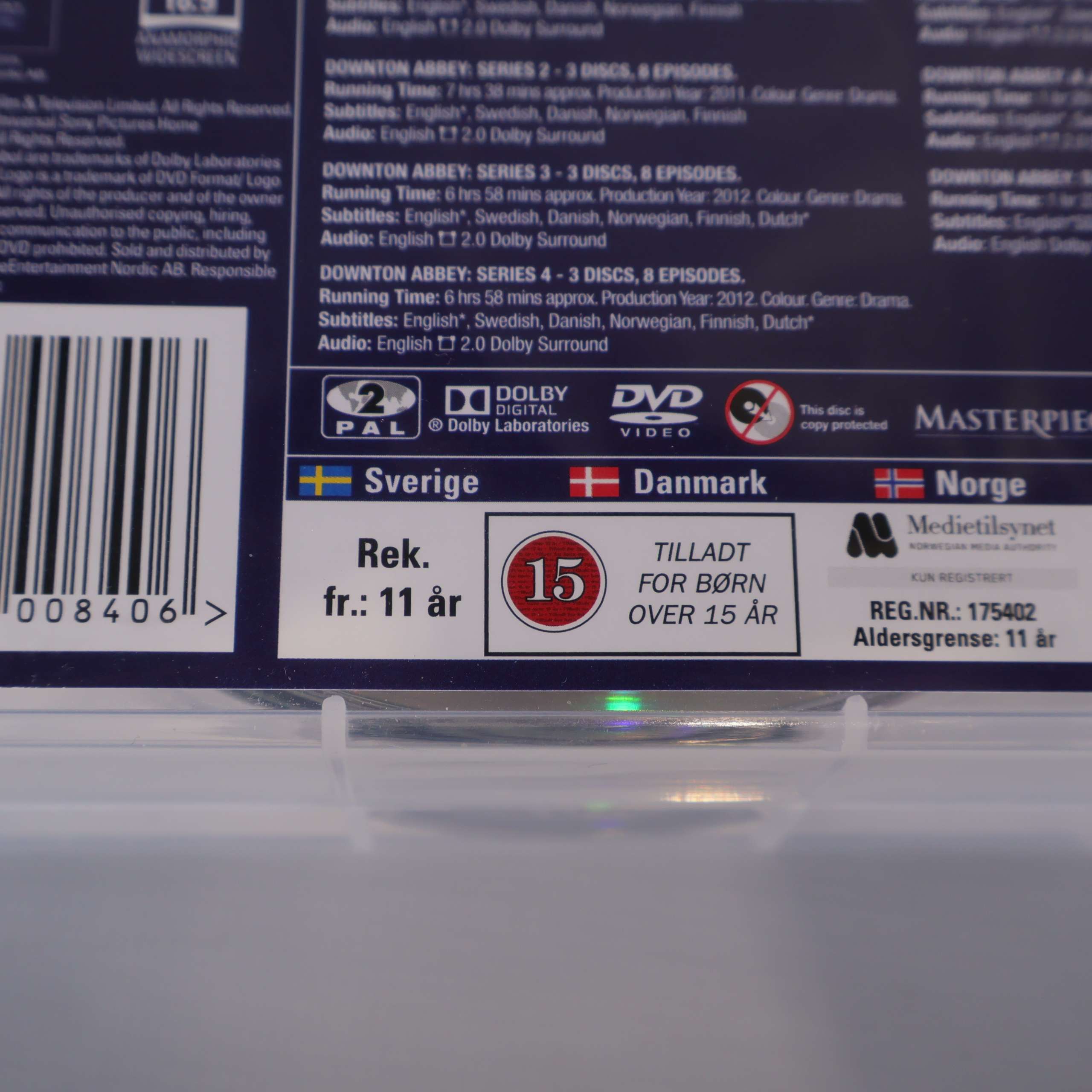 DVD-box - Downton Abbey - Säsong 1-4 samt 3 Julspecial 299 kr Product variation Antal st Beskrivning Nu kan du njuta av hela första till fjärde säsongen av Downton Abbey i en samlad DVD-box! Boxen innehåller även Winter at Downton Abbey, A journey to the highlands och The London season. Visa all beskrivning Skick Mycket gott skick Produkten är sparsamt använd, är av fin kvalitet och ska inte ha några skador eller förslitningar. Läs mer om hur vi bedömer Format DVD Genre DRAMA Publisher UNIVERSAL Language Engelska text på svenska Age limit 11 Utgivningsår 2013 Produkten är unik och finns enbart som 1 st i lager. Fri frakt på alla köp över 990 kr. 14 dagars ångerrät.