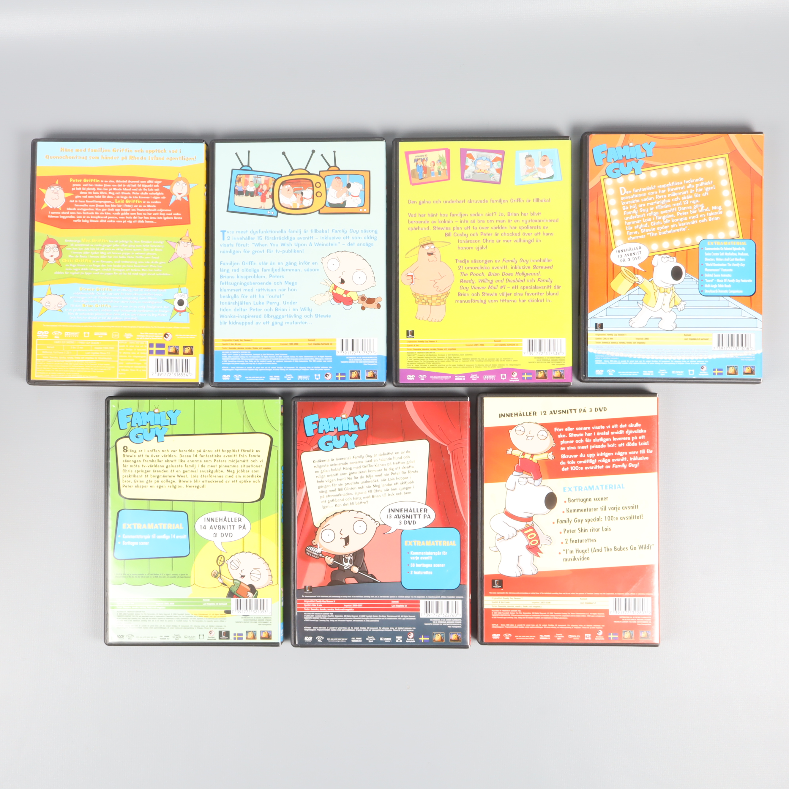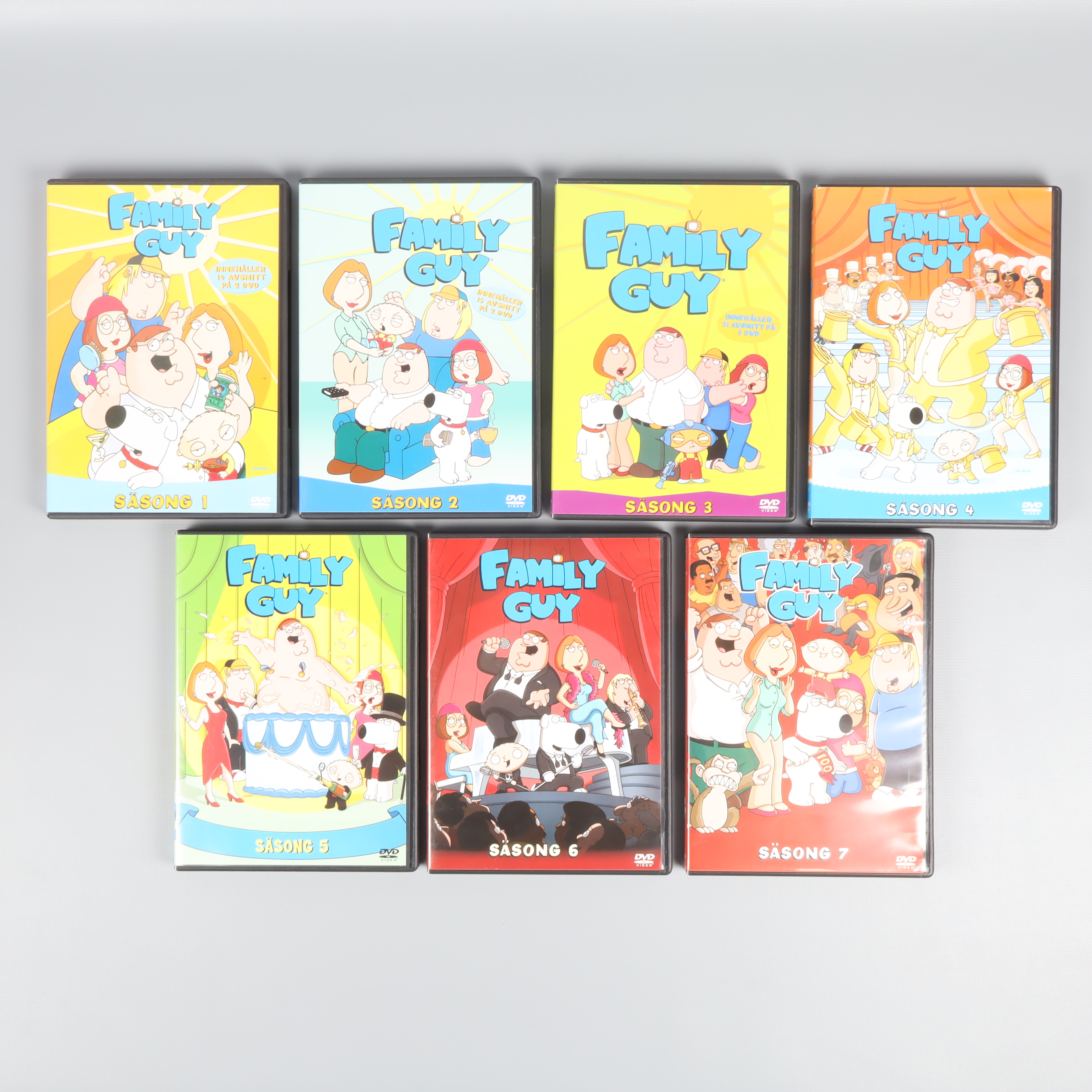 Upptäck Family Guy – Complete Seasons 1-7 i denna färgglada och inbjudande DVD-box med hela sju säsonger av den ikoniska animerade tv-serien. Boxen innehåller separata fodral för varje säsong, alla med roliga och igenkännbara omslag som speglar seriens lekfullhet och karaktärer. Perfekt för både fans och nya tittare som vill ha timmar av underhållning och skratt. DVD-formatet gör det enkelt att samla och titta på avsnitten när du vill, och den robusta ytterförpackningen håller dina DVD-fodral skyddade. Med tydlig märkning av varje säsong på ryggarna är det smidigt att hitta just den säsong du vill se. Denna samlingsbox är ett utmärkt komplement till hemmabion eller att ge bort till någon som älskar animerad humor med satir och massor av karaktär. Boxen är på engelska och riktar sig till dig som uppskattar skarp och modern tv-underhållning i ett komplett, lättöverskådligt paket.