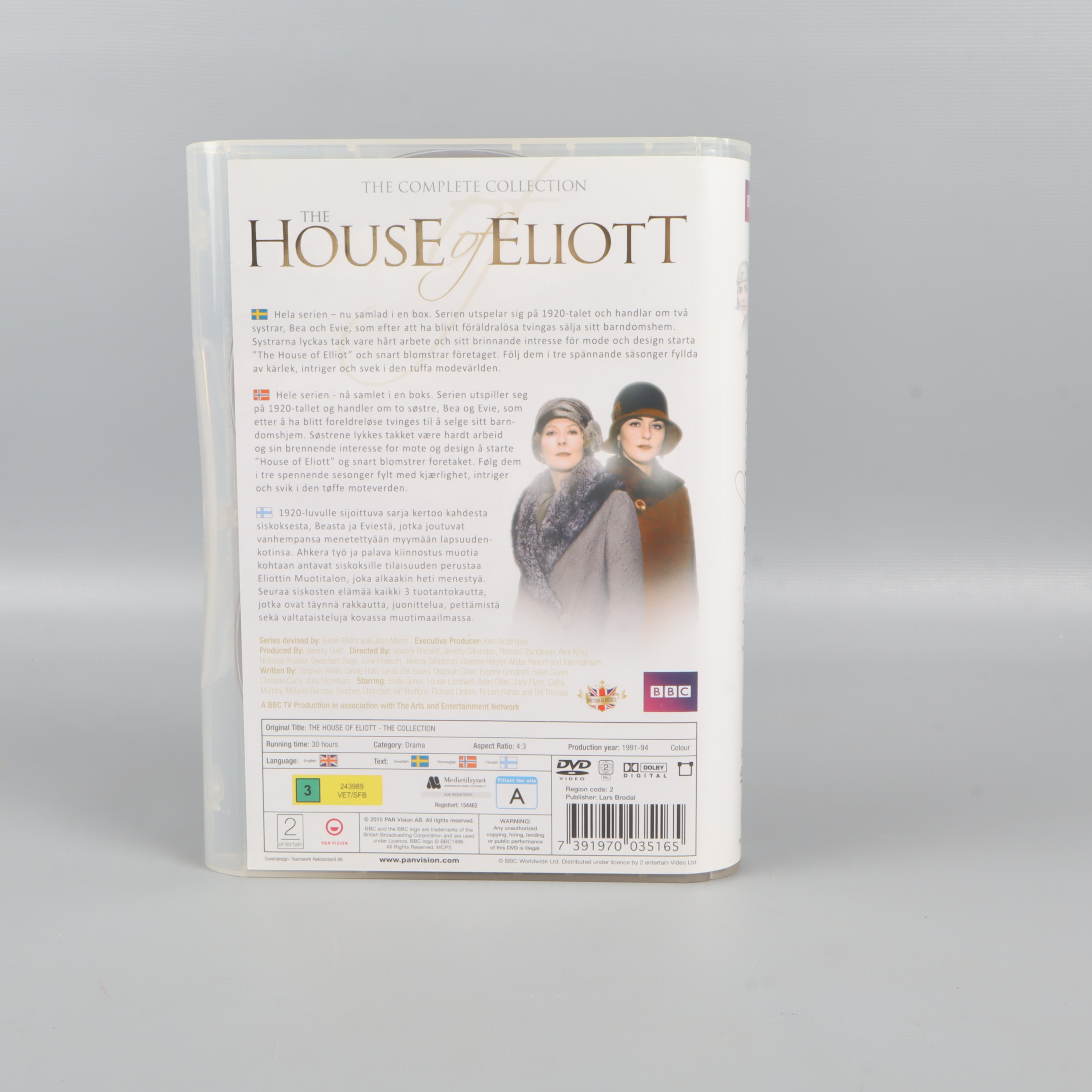 Upptäck hela den brittiska succédramaserien The House of Eliott i denna kompletta DVD-box som samlar säsong 1 till 3 i ett enda paket. Boxen innehåller totalt nio DVD-skivor i ett praktiskt fodral som är lätt att förvara och bläddra i. Serien bjuder på gripande berättelser och tidsenlig estetik, perfekt för den som älskar brittiska kostymdraman och starka karaktärsskildringar.