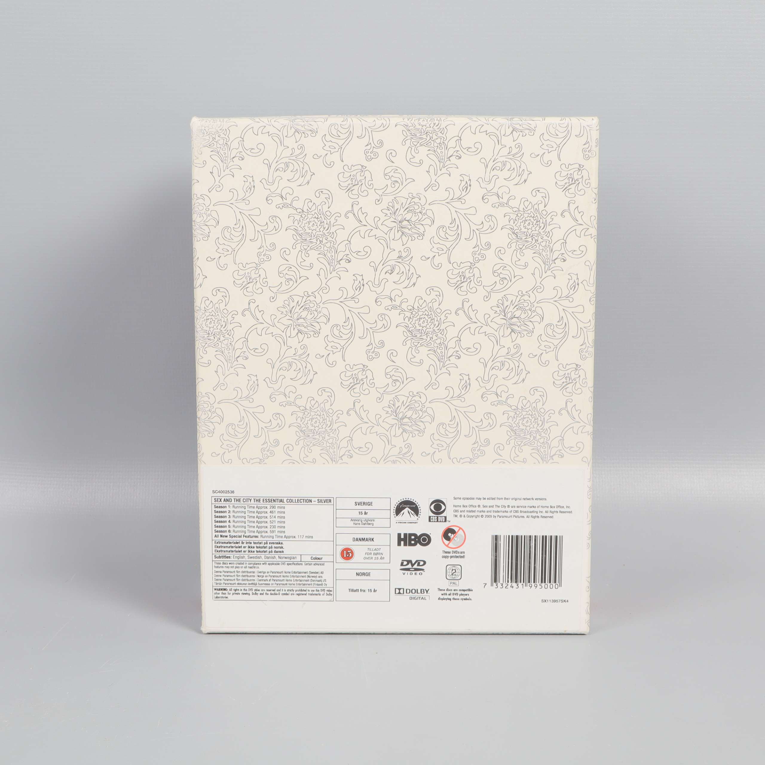 HBO DVD-box - Sex and the City- The Essential Collection 1-6 179 kr Product variation Antal st Beskrivning Sex and the City: The Essential Collection är en komplett box med hela serien samlad på sjutton DVD-skivor. Visa all beskrivning Skick Gott skick Produkten har använts men är av fin kvalitet, det kan förekomma mindre förslitningar. Läs mer om hur vi bedömer Genre Komedi, Romantik Language Engelska text på svenska Age limit 15 Utgivningsår 2008 Varumärke HBO Produkten är unik och finns enbart som 1 st i lager. Fri frakt på alla köp över 990 kr. 14 dagars ångerrät.