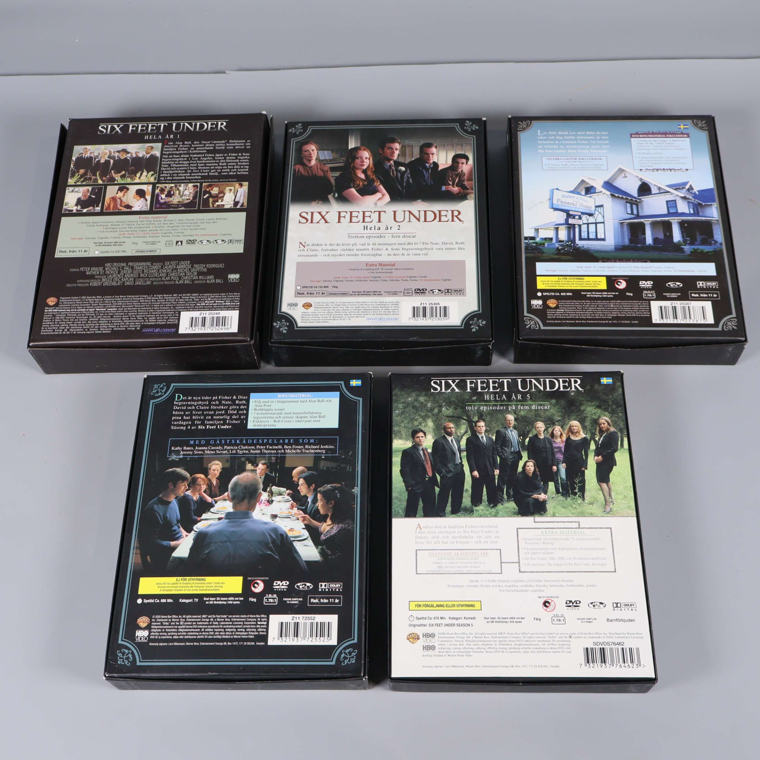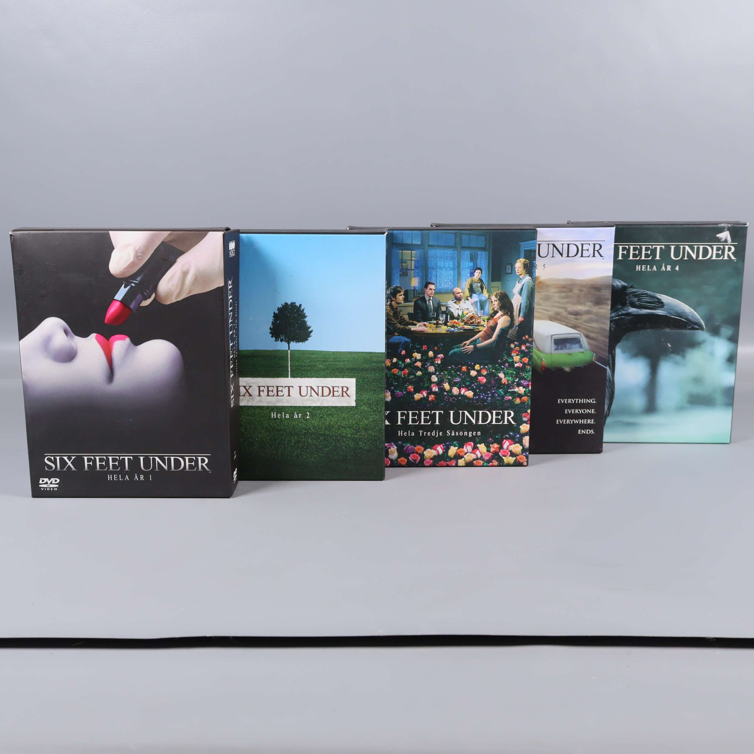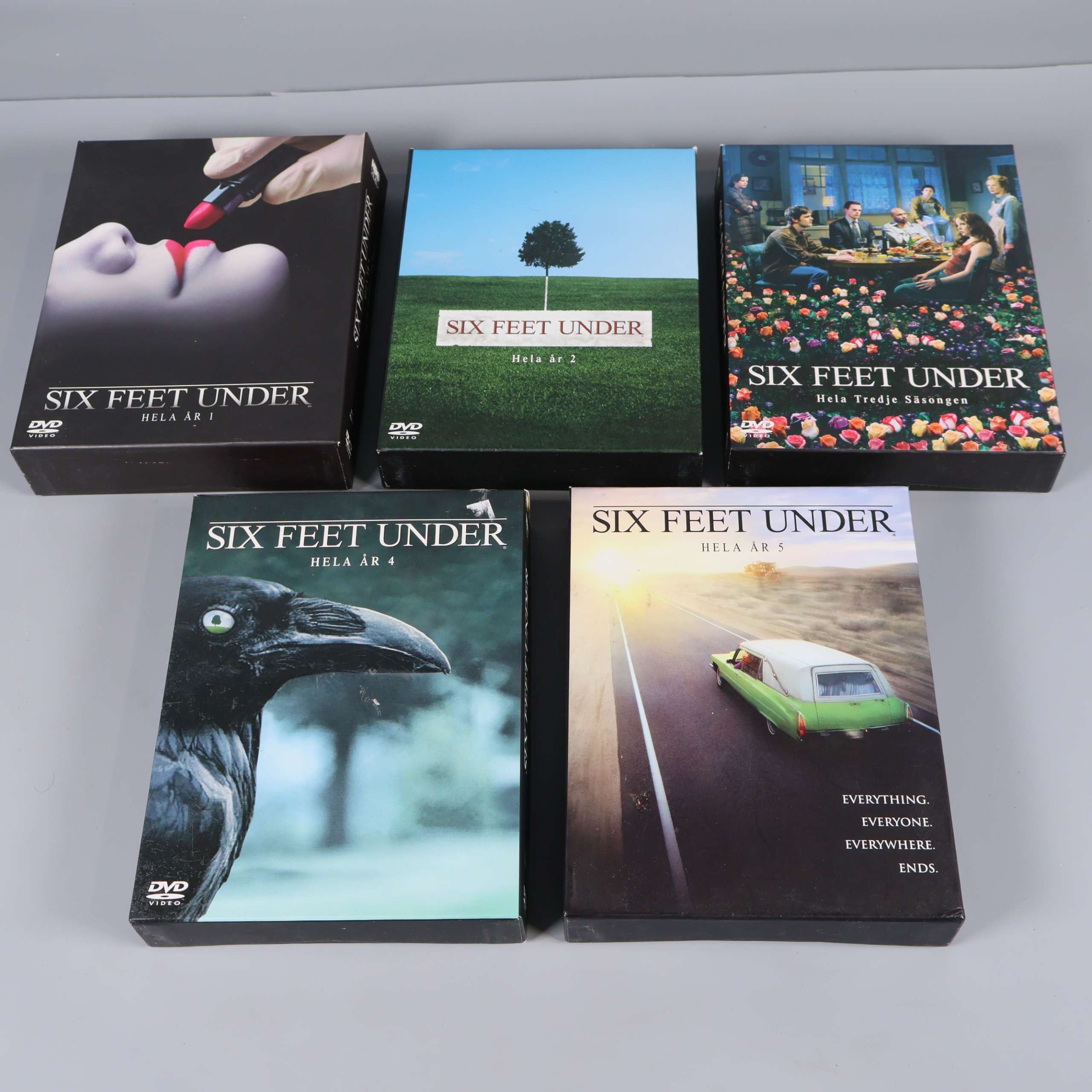 Den här kompletta DVD-boxen innehåller samtliga fem säsonger av den hyllade TV-serien Six Feet Under. Boxen består av separata fodral för varje säsong.