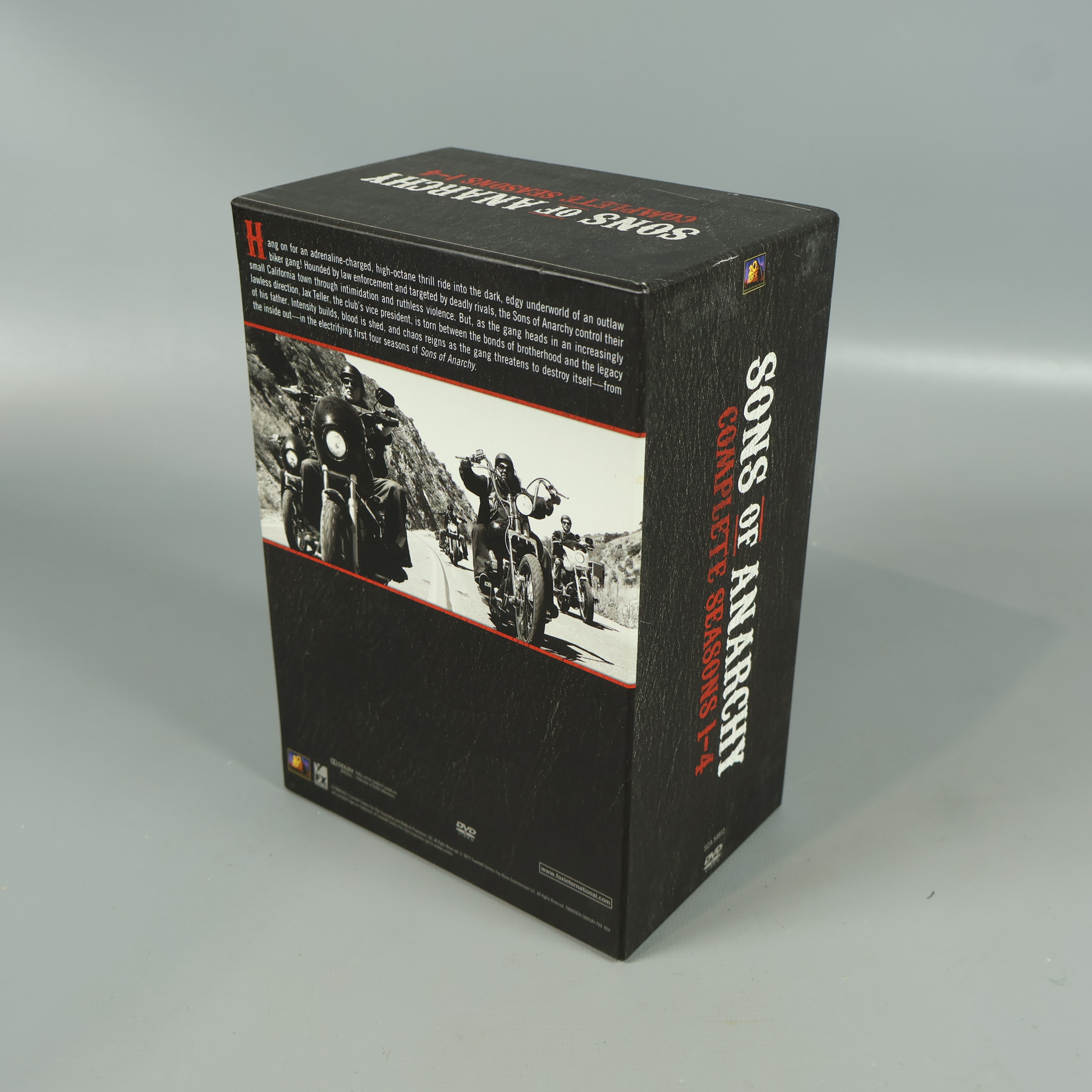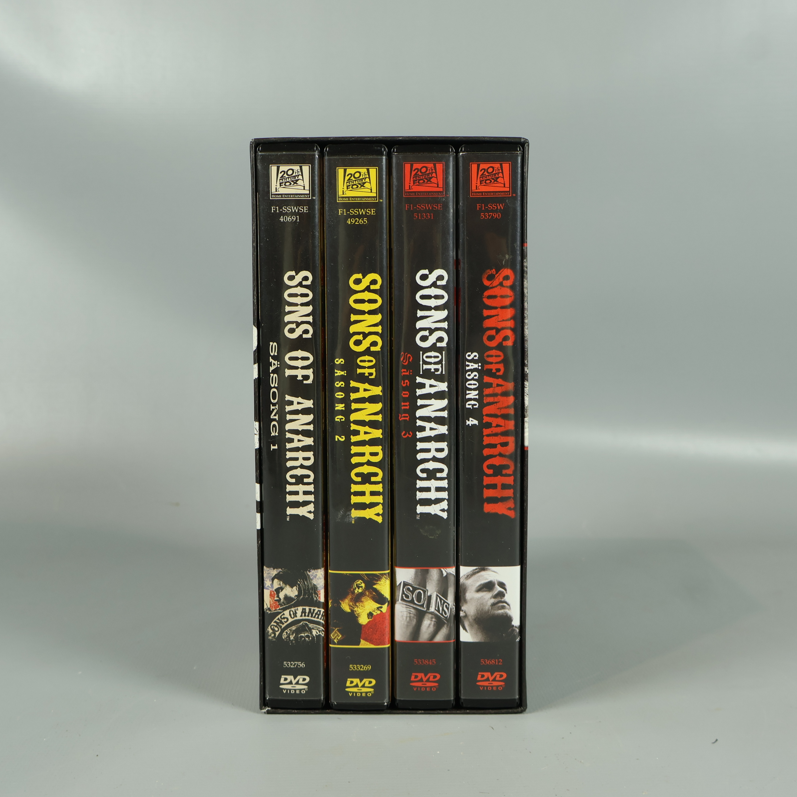 DVD-box - Sons of Anarchy - Säsong 1-4 149 kr Product variation Antal st Beskrivning Få det bästa av spänning och dramatik med denna DVD-box med Sons of Anarchy säsong 1–4. Visa all beskrivning Skick Mycket gott skick Produkten är sparsamt använd, är av fin kvalitet och ska inte ha några skador eller förslitningar. Läs mer om hur vi bedömer Format DVD Genre Action Drama Publisher 20th FOX Language Engelska text på svenska Produkten är unik och finns enbart som 1 st i lager. Fri frakt på alla köp över 990 kr. 14 dagars ångerrät.