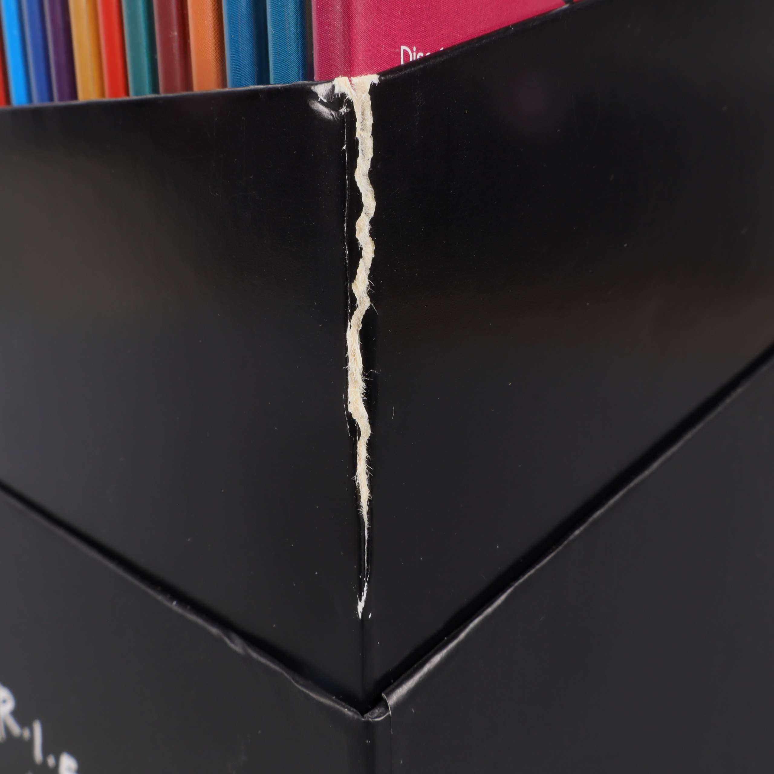 Få hela upplevelsen av Friends med denna kompletta dvd-box med alla tio säsonger. Boxen innehåller 40 skivor med samtliga avsnitt, elegant förpackade i separata fodral för varje säsong och allt samlat i en robust svart box med vit Friends-logotyp. Perfekt för maratonkvällar med vänner eller nostalgiska återblickar, den här utgåvan samlar hela den ikoniska sitcom-serien på ett snyggt och funktionellt sätt. Boxen har ett tydligt estetiskt uttryck med moderna färgkombinationer på varje säsongsfodral, vilket skapar en livlig och lekfull känsla i din filmsamling. Notera att boxen har ett synligt slitage på ena kanten, men innehållet är i mycket gott skick så att du kan njuta av varje avsnitt ostört. Språket på dvd-skivorna är engelska, och boxen rymmer både ordning och enkel överblick av hela serien. Ett måste för fans och samlare som vill ha hela Friends-världen hemma i hyllan.